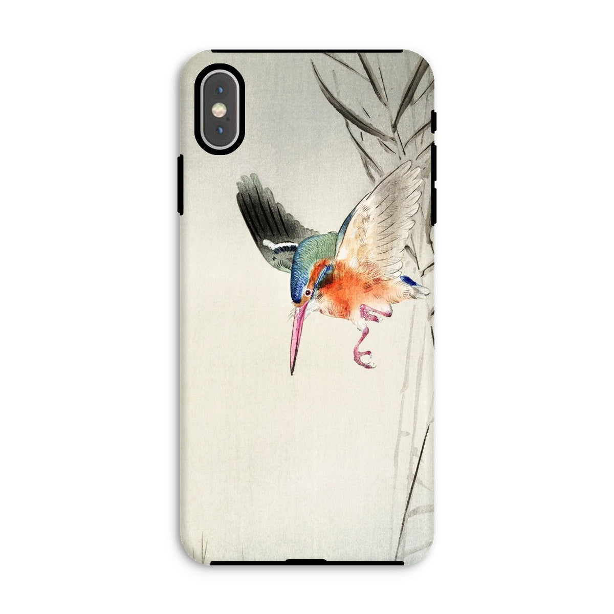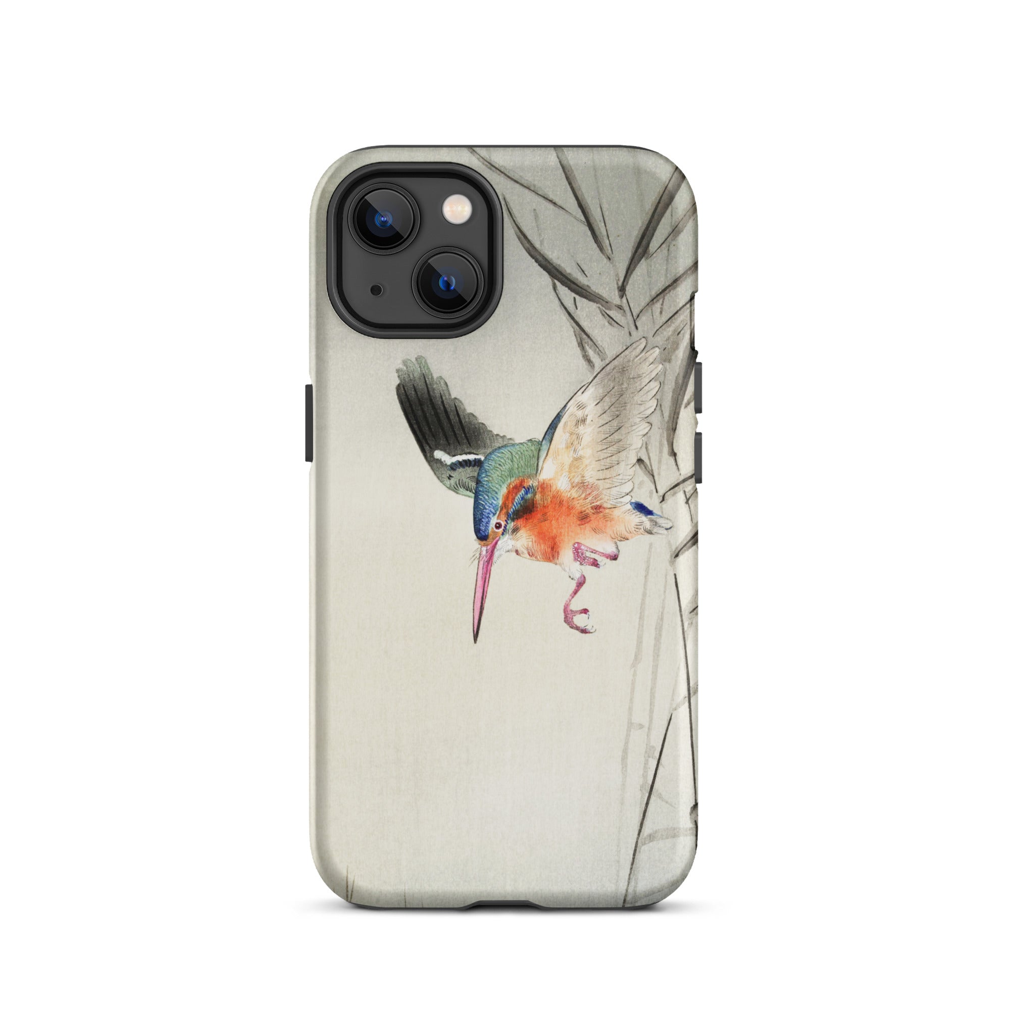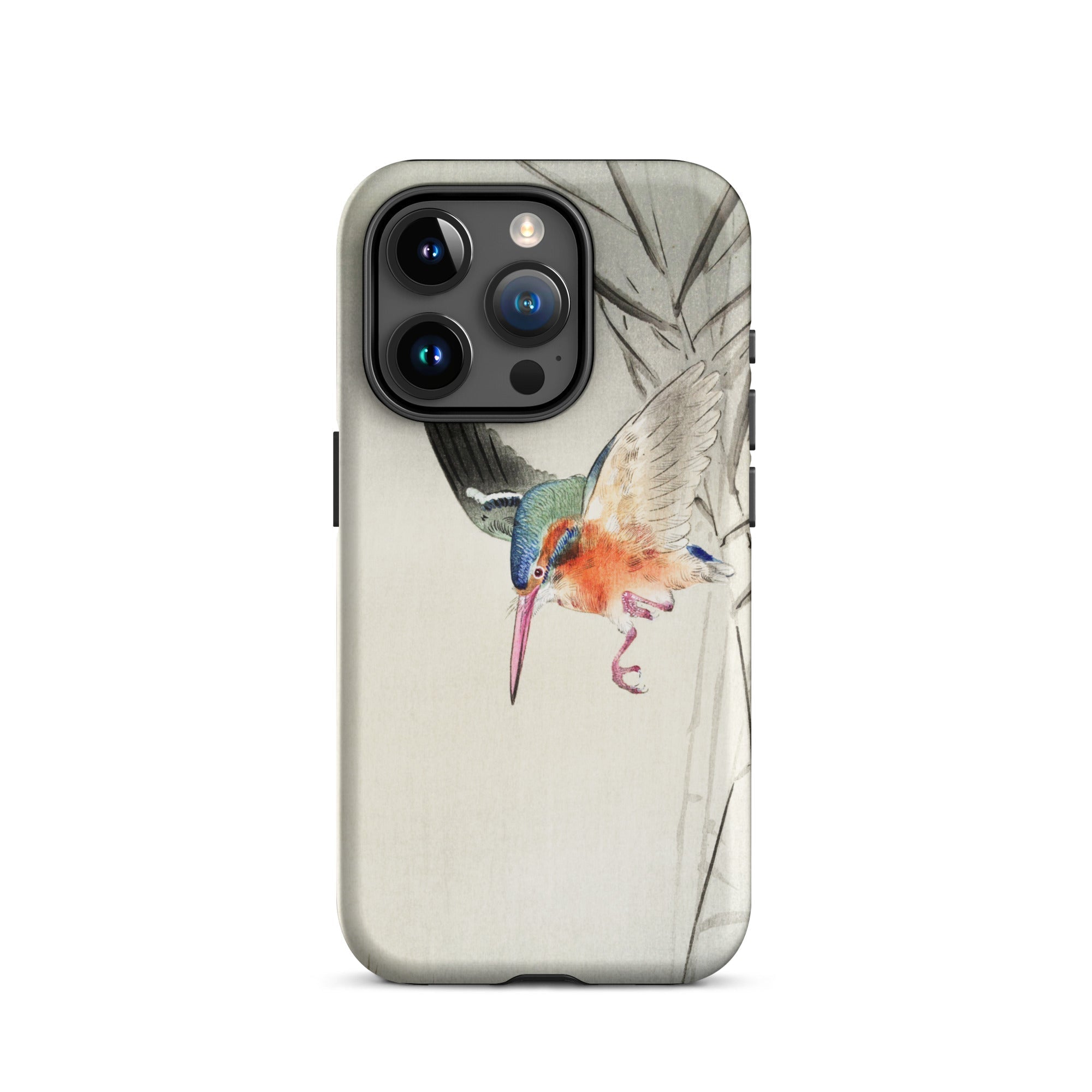 Duik in de wereld van aviaire elegantie met deze iPhone hoes met Ohara Koson's prachtige kachō-e vogelkunst. Een levendige ijsvogel, klaar om te jagen, trekt je aandacht tegen een minimalistische achtergrond. Koson's meesterlijke houtsnede vangt het iriserende verenkleed van de vogel - een symfonie van blauw, groen en vurige oranje.