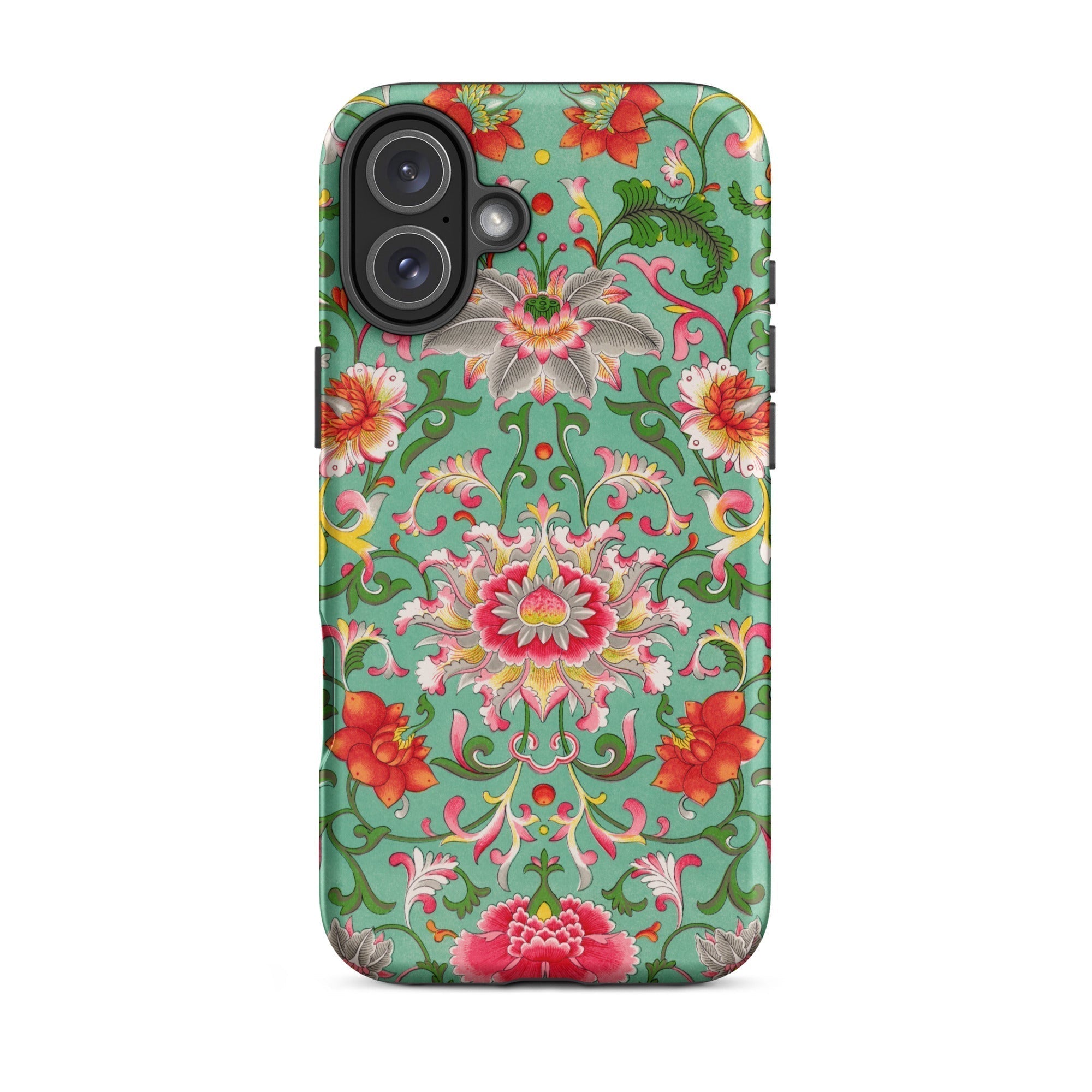 Levendige bloemen barsten open over je iPhone. Een Chinees bloemen vuurwerk dat de zintuigen ontstak. Owen Jones'S Chinoiserie Fever Dream morst voort in weelderige jade, koraal en goud. Je wordt getransporteerd naar een oosters Tuin, waar onmogelijk sierlijke bloemblaadjes zich tegen wervelende wijnstokken ontvouwen. Dit is niet het behang van je oma - het is een psychedelische reis door Victoriaanse ontwerpopstand.