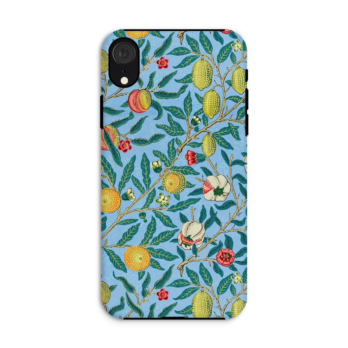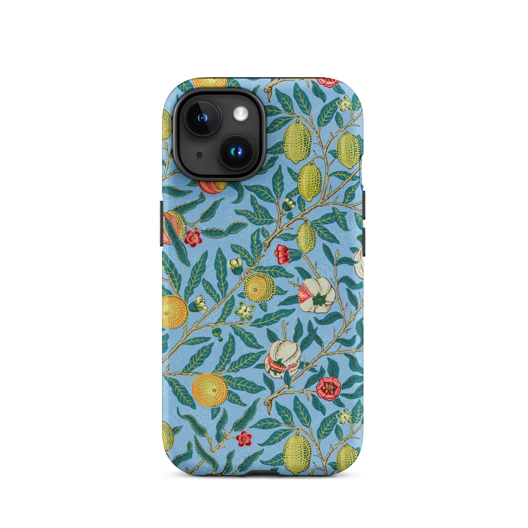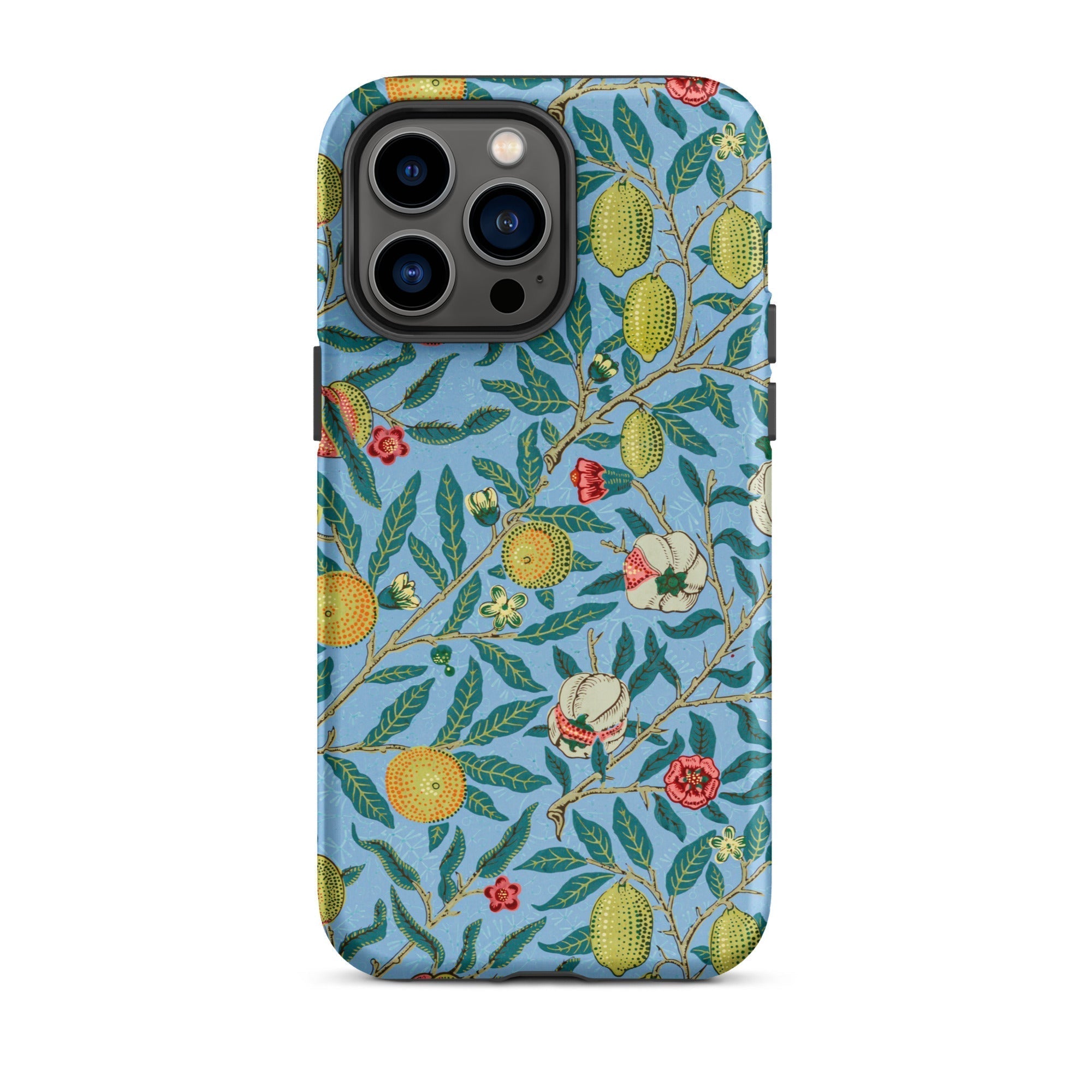 Transformeer je iPhone in een botanisch wonder uit het Victoriaanse tijdperk met deze "vier vruchten" -zaak van William Morris. Tegen een cerulean achtergrond ontvouwt het genie van Morris zich in een tapijt van de bounty van de natuur.