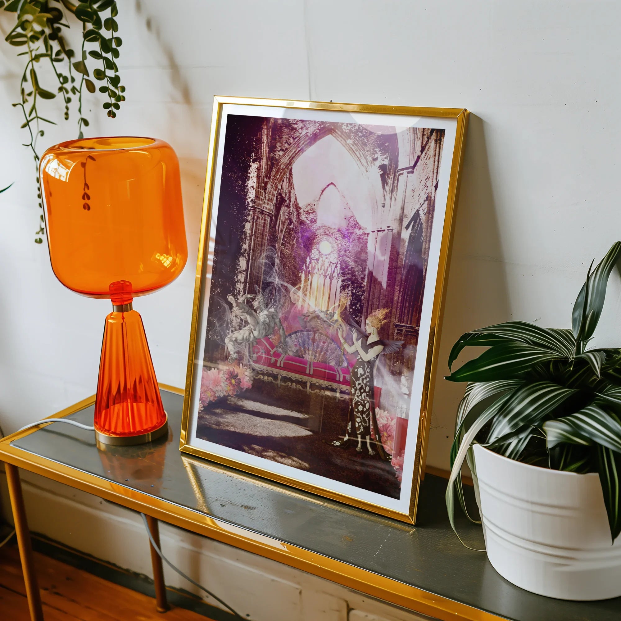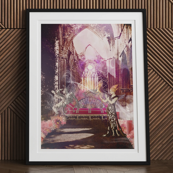 Levendige bloemen tapijt de grond, hun parfum mengt zich met wierook en oude steen. Schachten van buitenaardse licht doorboren glas in lood, baden het tafereel in surrealistisch tinten. Dit is waar de Griekse mythologie botst van Dark Fantasy, waar de Phoenix voortkomt uit koortsige dromen.