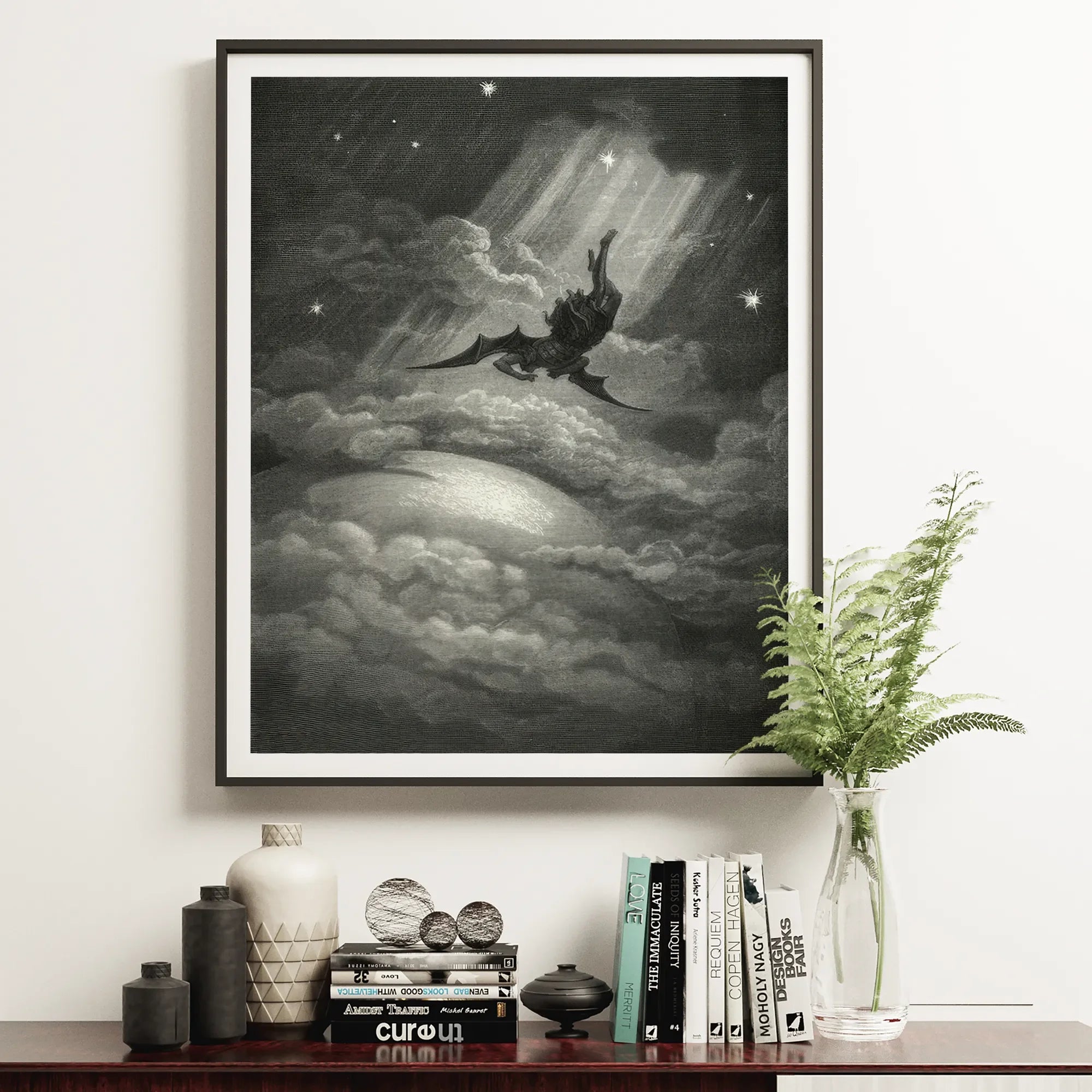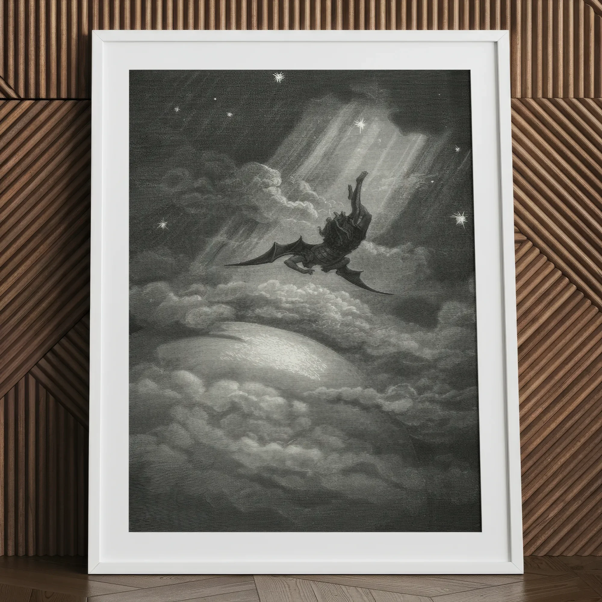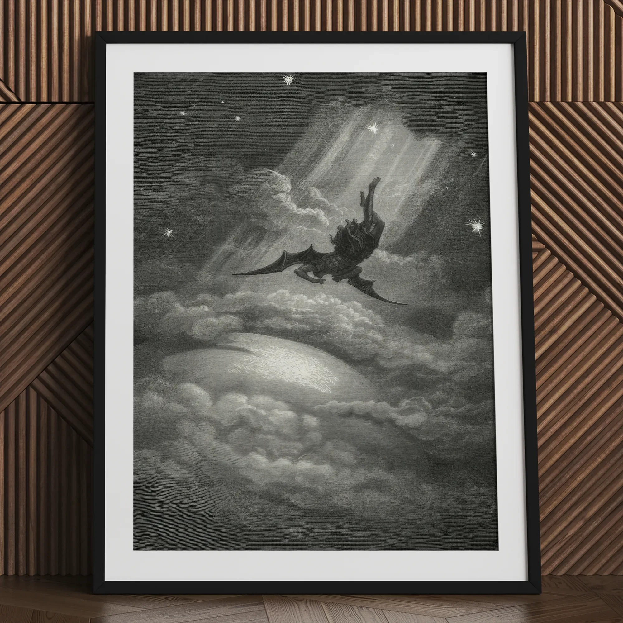 Lucifer Daalt Neer op Aarde - Gustave Dore Kunstdruk