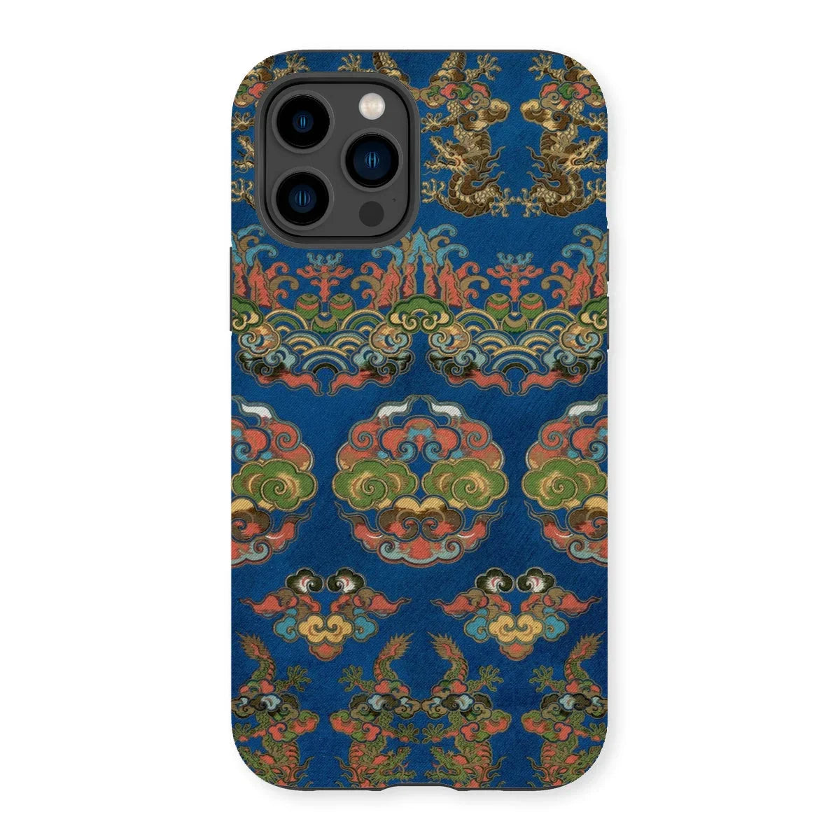 Onder een baldakijn van kobalt ontvouwt G.A. Audsley's blauwe waaierpatroon zich als een kosmisch raadsel. Een poort naar een mythische hemel waar draken niet alleen schatten bewaken, maar symfonieën van chaos en balans componeren. Hun vergulde lichamen kronkelen door stromen van golvende wolkenbanden, die oprijzen als de adem van oude bergen en een landschap vormen dat zo vluchtig is als dromen, maar zo weloverwogen als de Schrift. Deze draken brullen niet; hun stilte zoemt met een alchemie van creatie, hun gouden schubben glinsteren als gefragmenteerde zonnen.