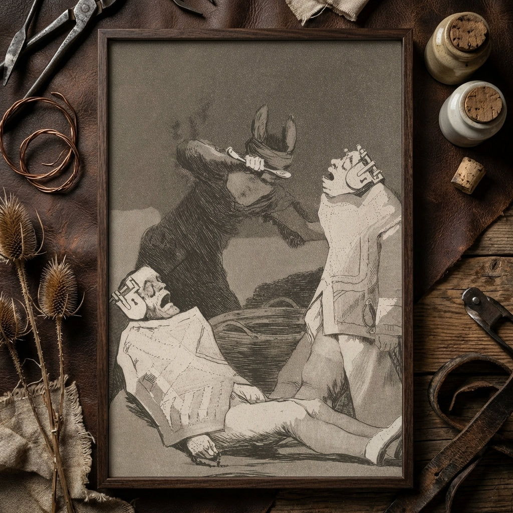 Deze kunstdruk knettert van Verlichtingsvenijn: een les tegen onderwerping vermomd als loyaliteit. Goya's zuur bijt door de eeuwen heen en onthult de mechanismen van indoctrinatie en het fragiele theater van respectabiliteit dat tirannie in stand hield. “De Chinchilla's” blijft een meesterklas in hoe domheid beleid wordt.