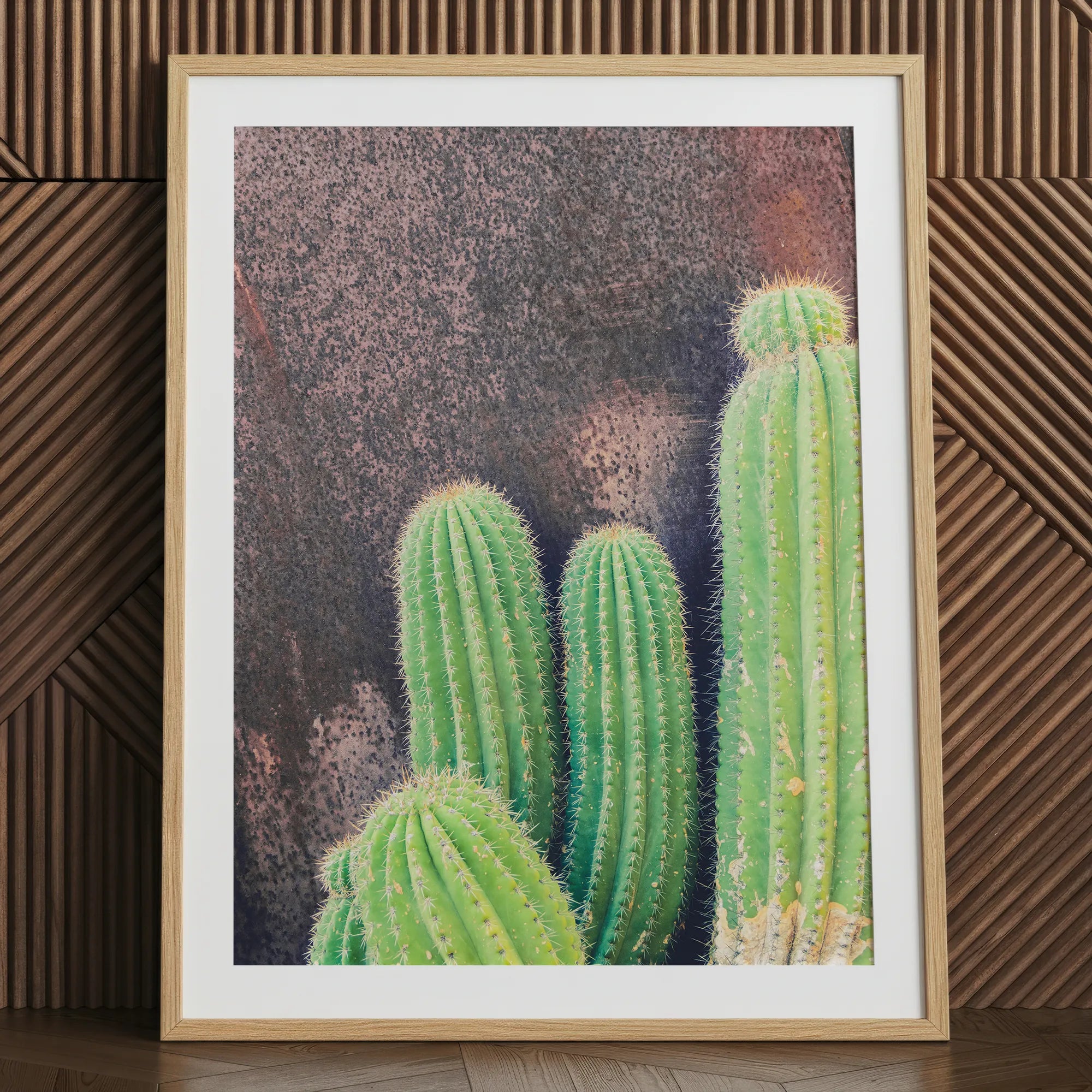 Begin aan een stekelig avontuur met dit woestijndrama. Levendige zuilvormige cactussen barsten voort, hun smaragdgronden tarten een grimmige, gestructureerde achtergrond zoals de graffitikunstenaars van de natuur. Deze print legt de ruwe essentie van overleving vast en transformeert uw ruimte in een stedelijke oase.