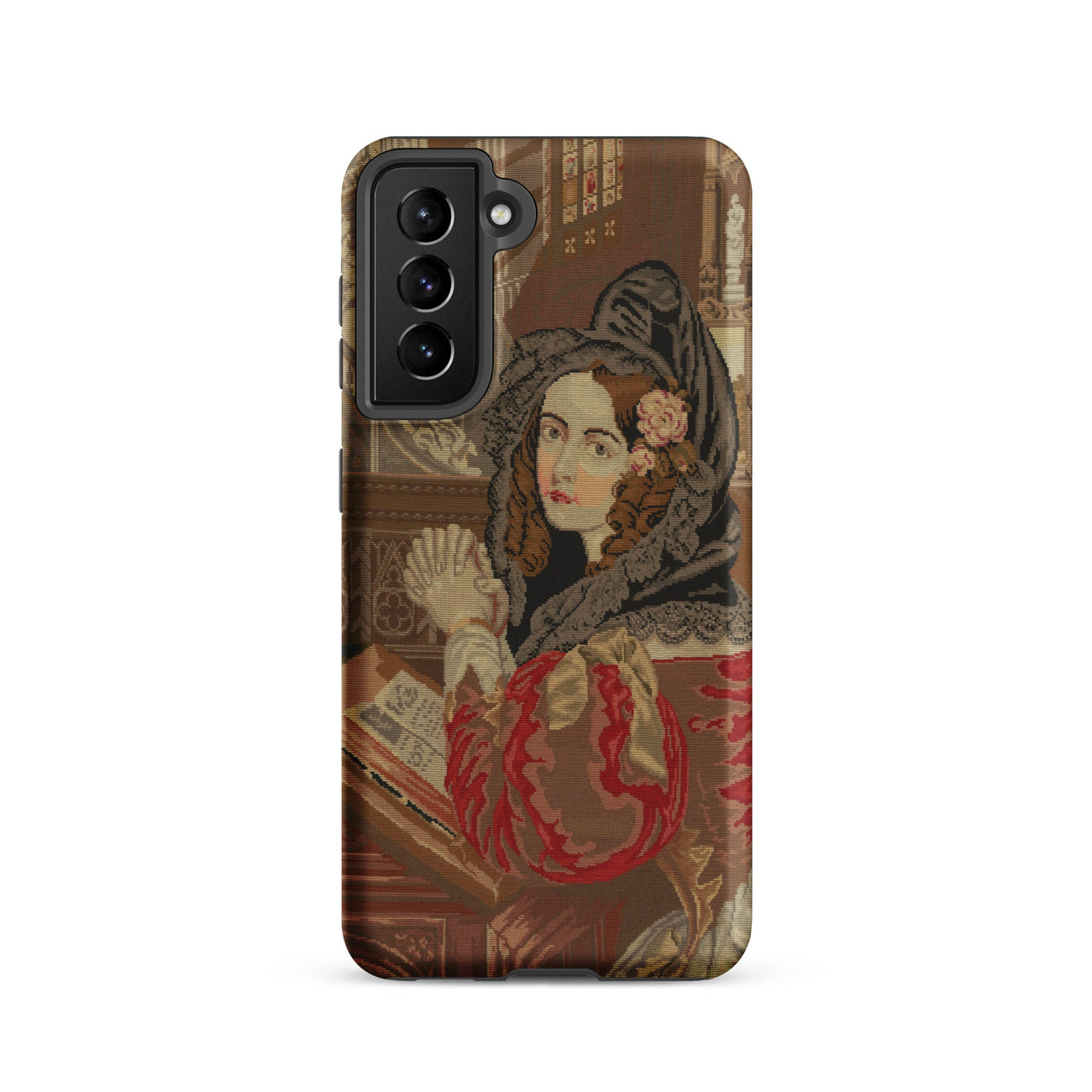 Deze Samsung-hoes verandert het devotionele tafereel in een draagbaar artefact, waarbij negentiende-eeuws borduurwerk, middeleeuwse architectuur en historische portretten worden samengevoegd tot een beschermende schaal voor moderne technologie, die de warmte van ambacht combineert met architectonische zwaartekracht.