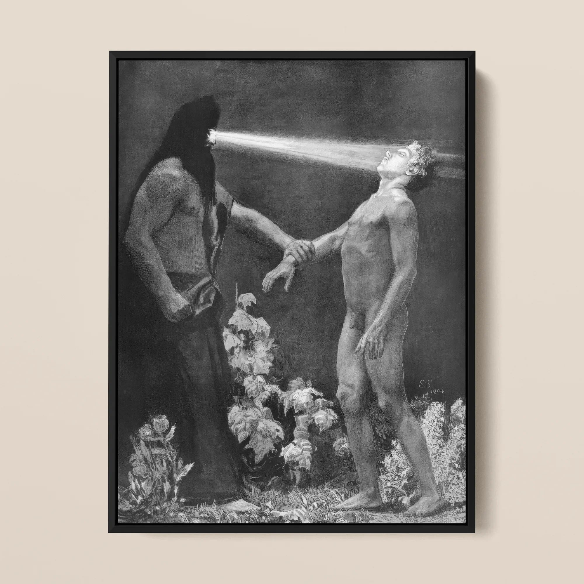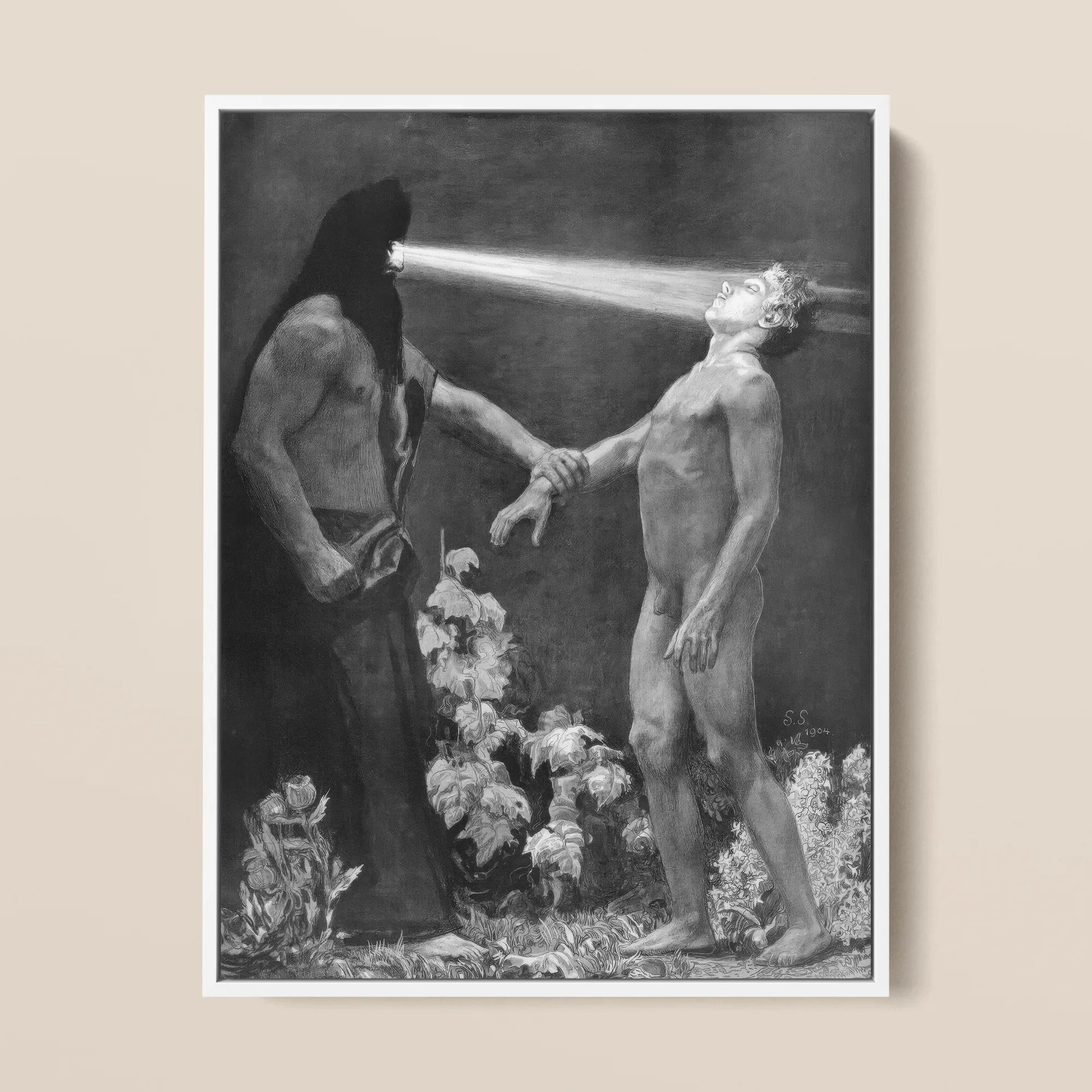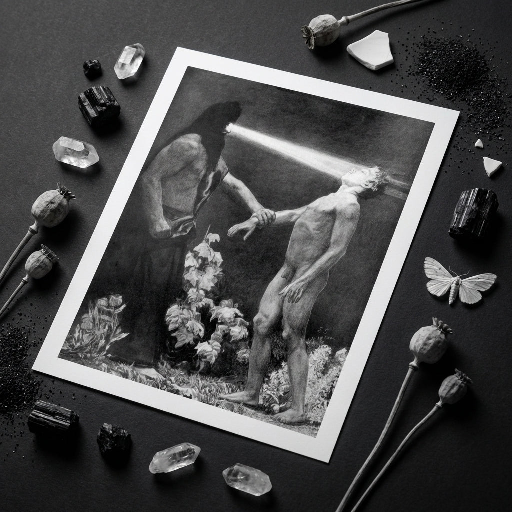 Schneider, meester van morele erotiek, transformeert optische stralen in metafysische instrumenten, waarbij hij de overdracht van wil zelf visualiseert. Het palet van bleke okers en stormachtige ombers pulseert met psychologische spanning, echoënd met symbolistische obsessies met zuiverheid, verleiding en lichamelijke verlossing.