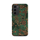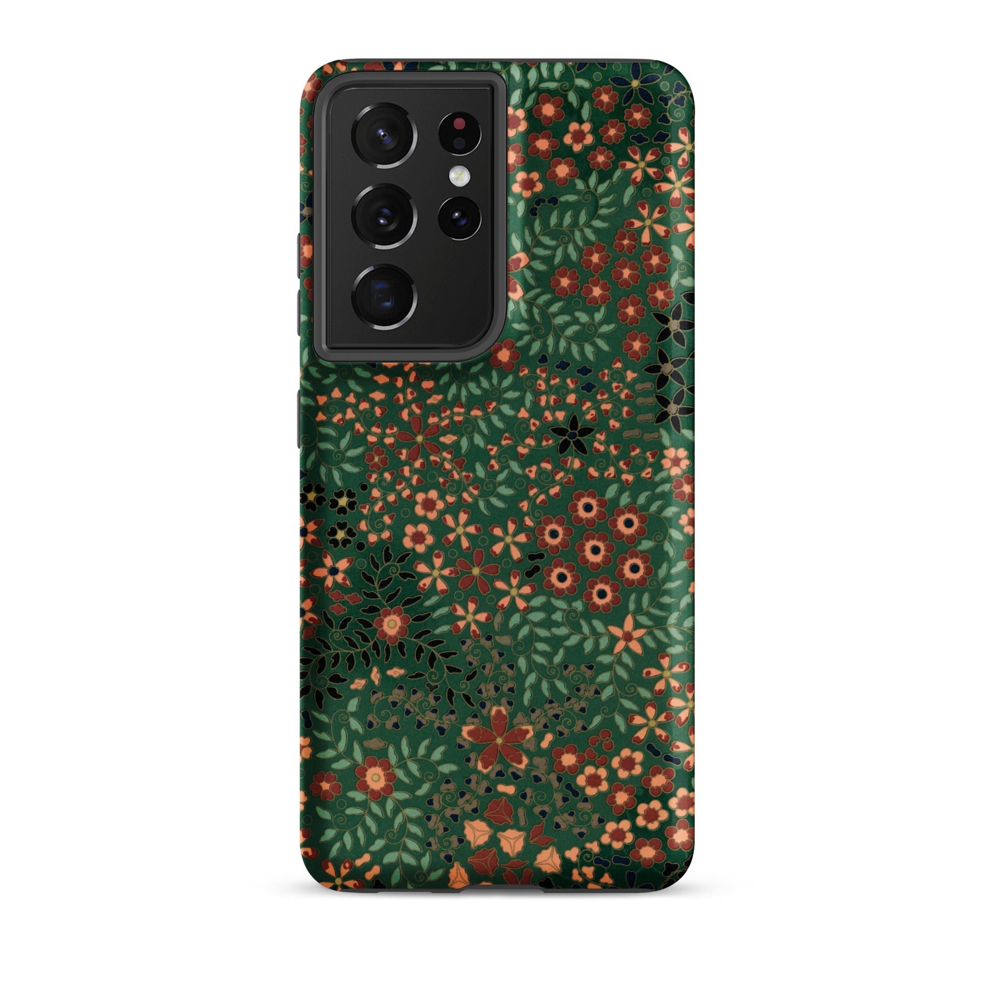 Deze Samsung-hoes transformeert een eenvoudig object in een draagbaar scherm van seizoensgebonden overvloed, waar het gloeiende palet van de herfst zich vermengt met de vernieuwing die door elke ontluikende knop wordt beloofd. Een fusie van vakmanschap en natuurlijke schoonheid, weergegeven in Audsley's nauwgezette, ornamentale stijl.