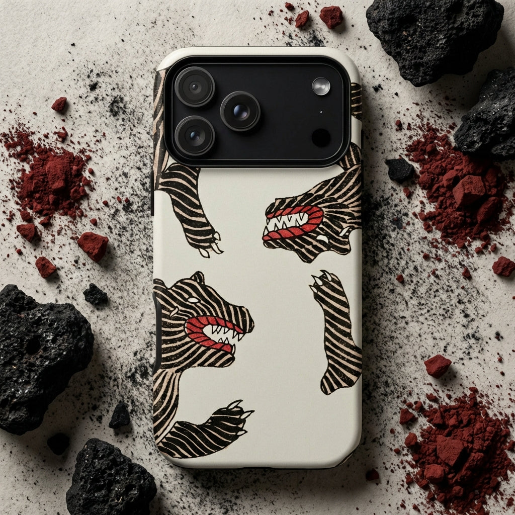 Snuffelen door stedelijke jungles, jouw iPhone draagt nu de strepen van een fel roofdier. Deze case wikkelt uw apparaat in Taguchi Tomoki's betoverende Japanse houtblokken tijger Kunst, het transformeren van alledaagse technologie in een canvas van ongetemde schoonheid.
