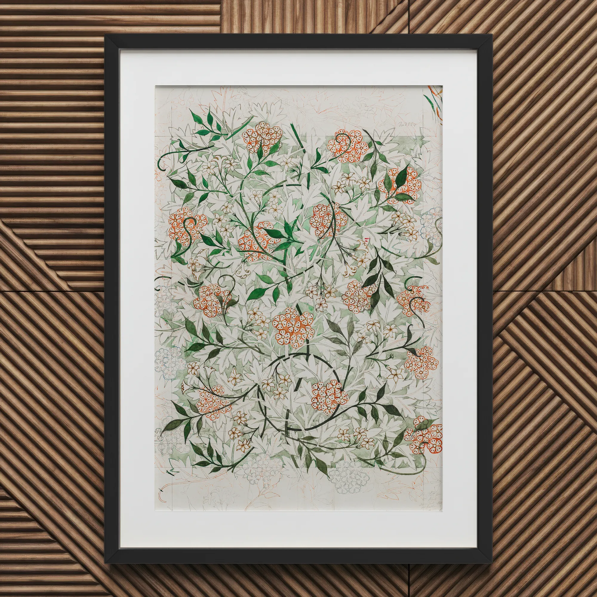 De botanische betovering van William Morris's "Jasmine" opgeborgen in deze verleidelijke kunstafdruk.
