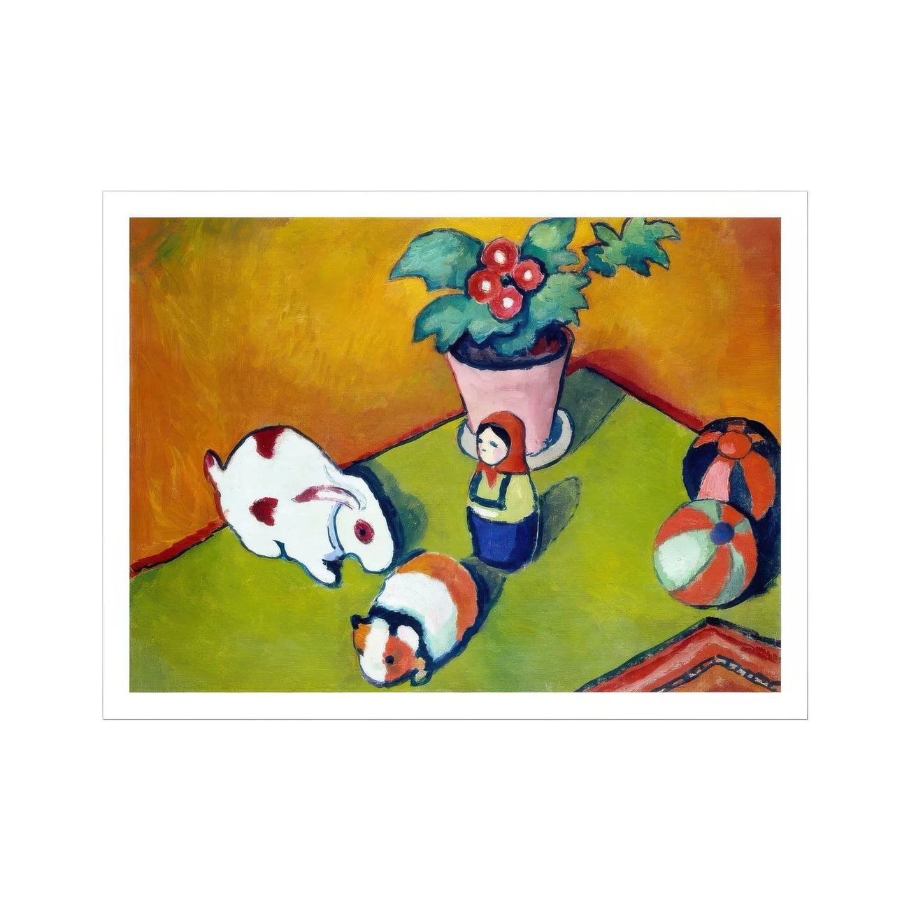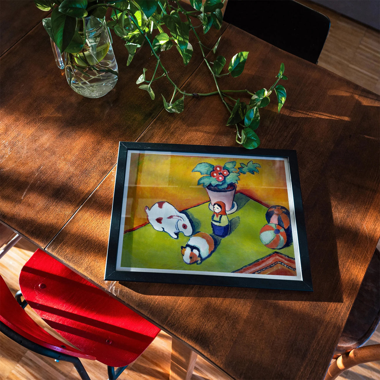 U koopt niet alleen een afdruk; Je verwerft een dagelijkse dosis expressionistische euforie. Laat Macke's genie voor het balanceren van uitbundige tinten met onderliggende pathos je ruimte transformeren in een heiligdom van artistieke rebellie. Deze print biedt u een technicolor-tonic voor de ziel, waarbij kinderlijk wonder wordt samengevoegd met volwassen contemplatie in één frame-waardige pakket.