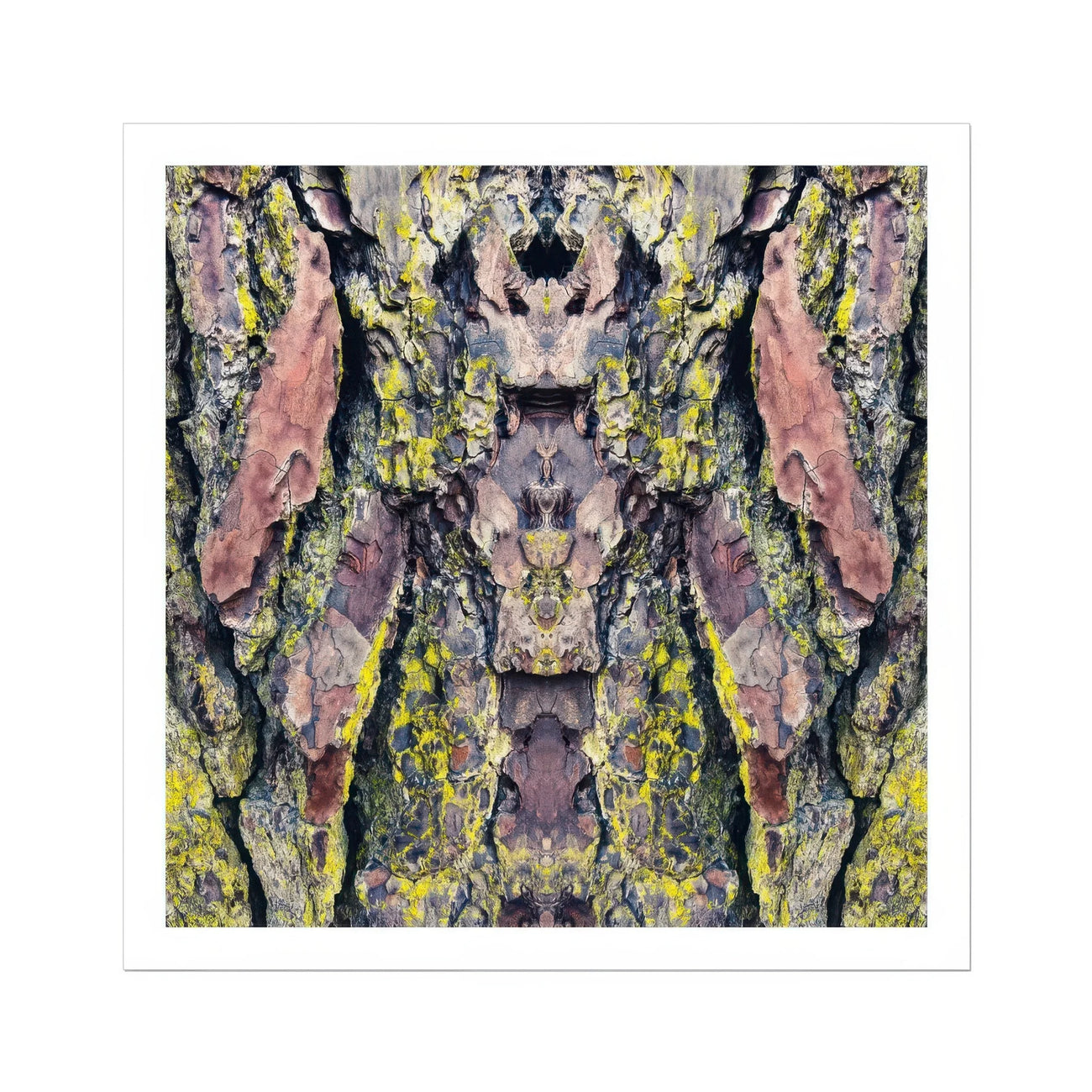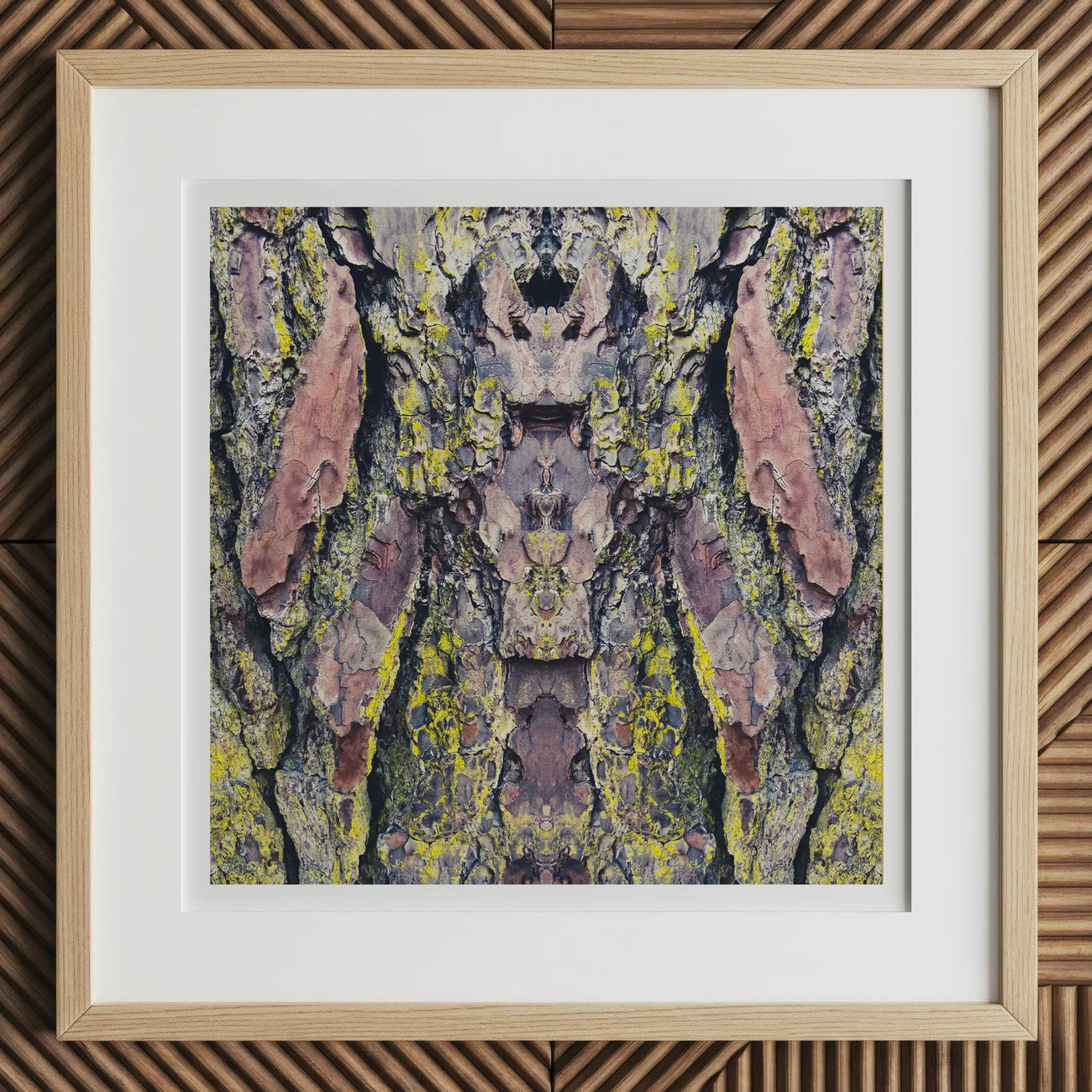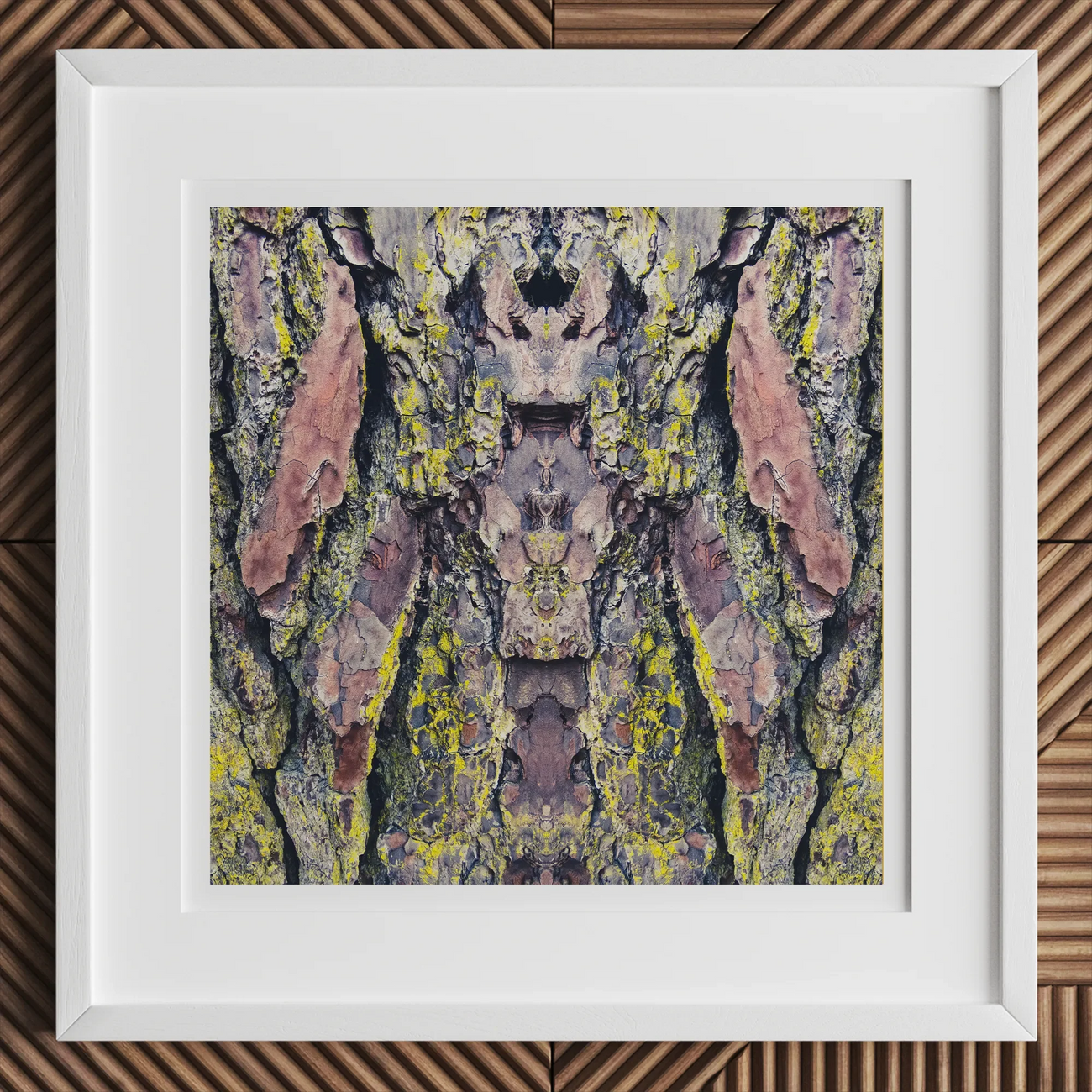 "Barking Mad" transporteert je naar een caleidoscopisch rijk waar de texturen van de natuur met surrealistische overgave dansen. Dit betoverende kunstwerken, geboren uit gespiegelde Australische boomtramafbeeldingen, onthult een Rorschach-achtige symfonie van organische vormen en aardse pigmenten.