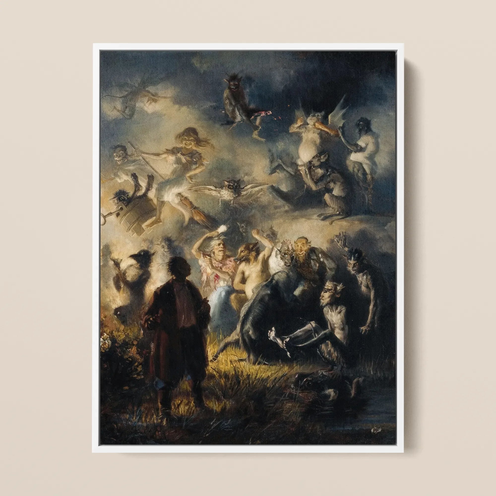 Afgedrukt op zuurvrij papier met museumkwaliteit inkten, behoudt het beeld zijn 19e-eeuwse gruis en zijn gevoel van apocalyps. Staand ervoor ben je een pelgrim voor de storm—ontzagwekkend, verontrustend, niet in staat om weg te kijken. Elke penseelstreek mompelt over Mussorgsky's partituur, Slavische mythe en de fascinatie van de schilder met morele ineenstorting verlicht door vuurlicht.
