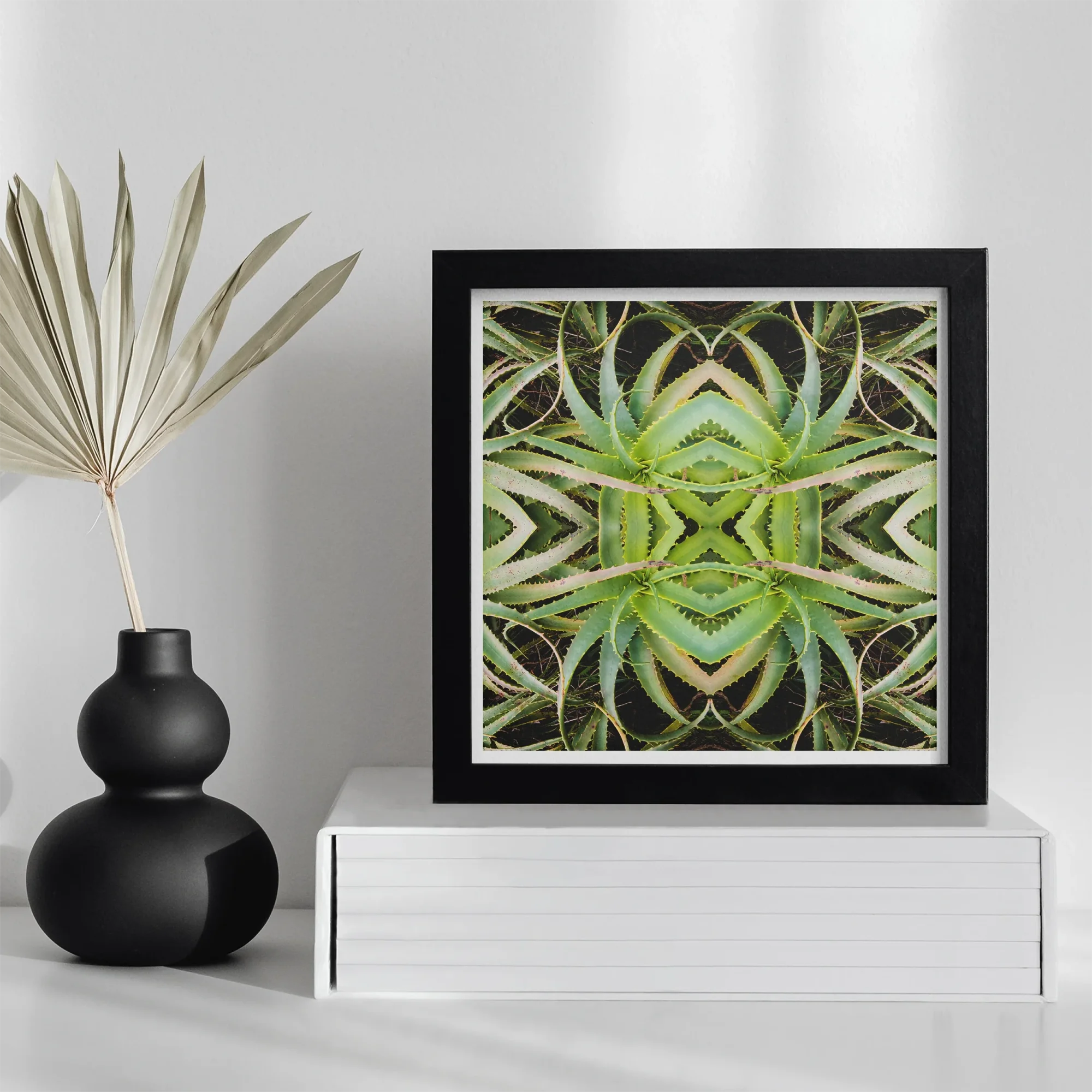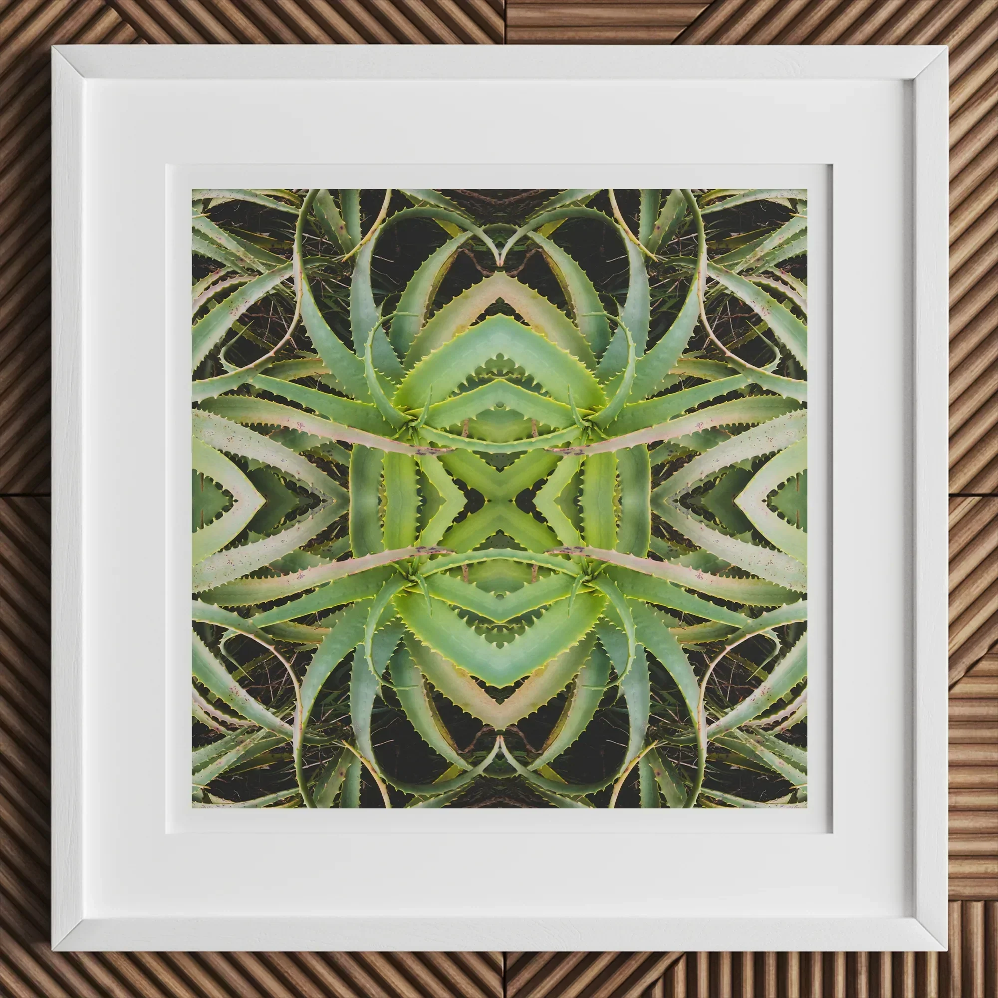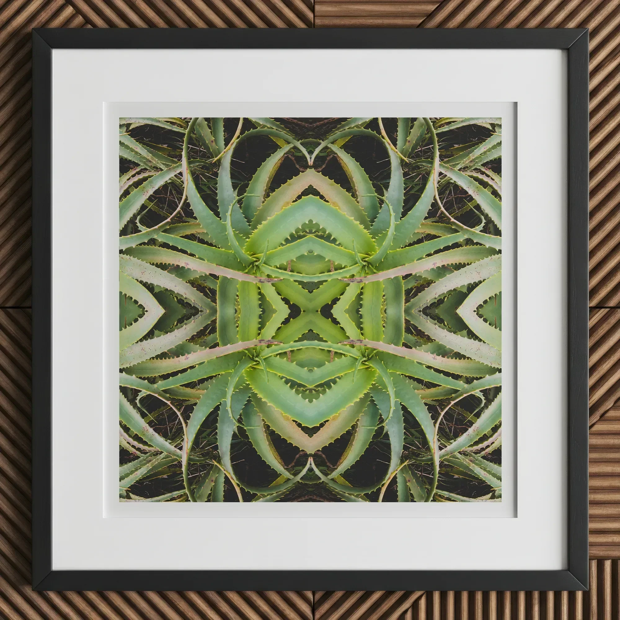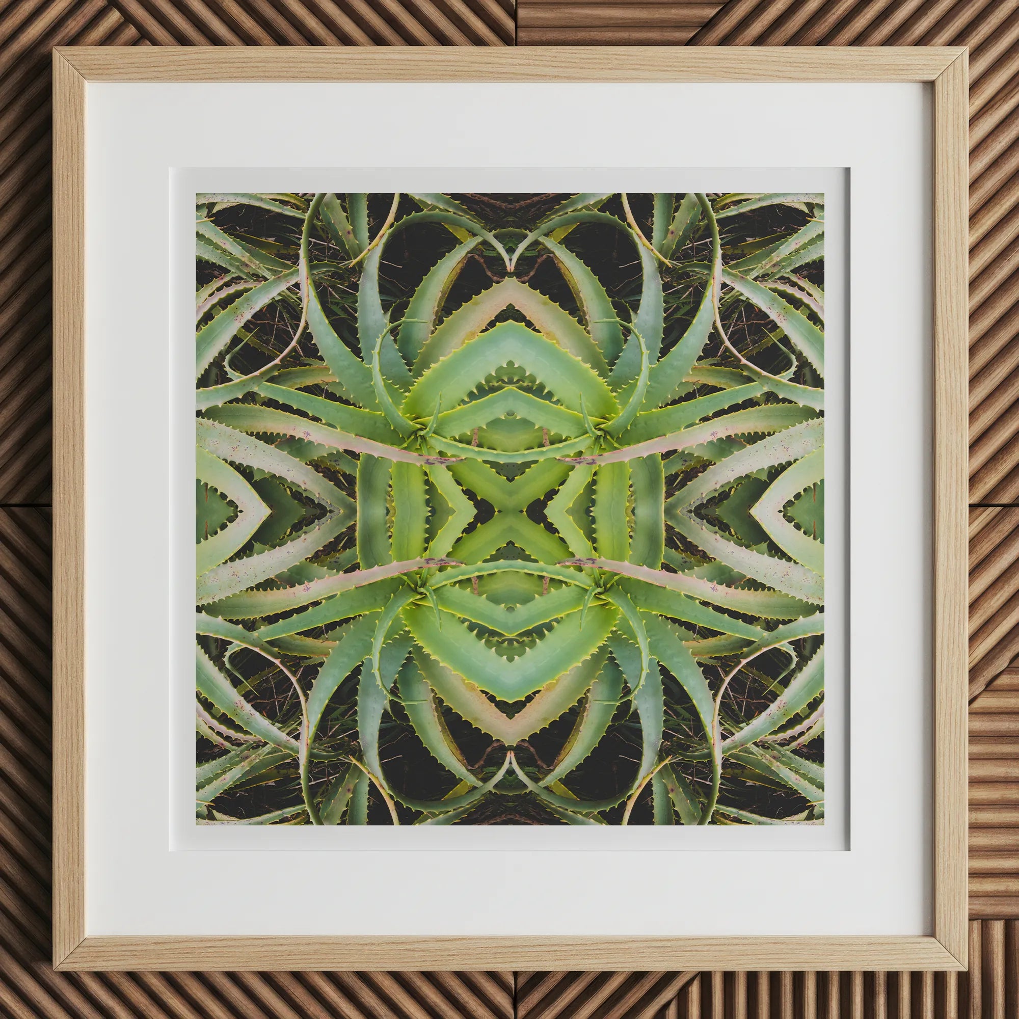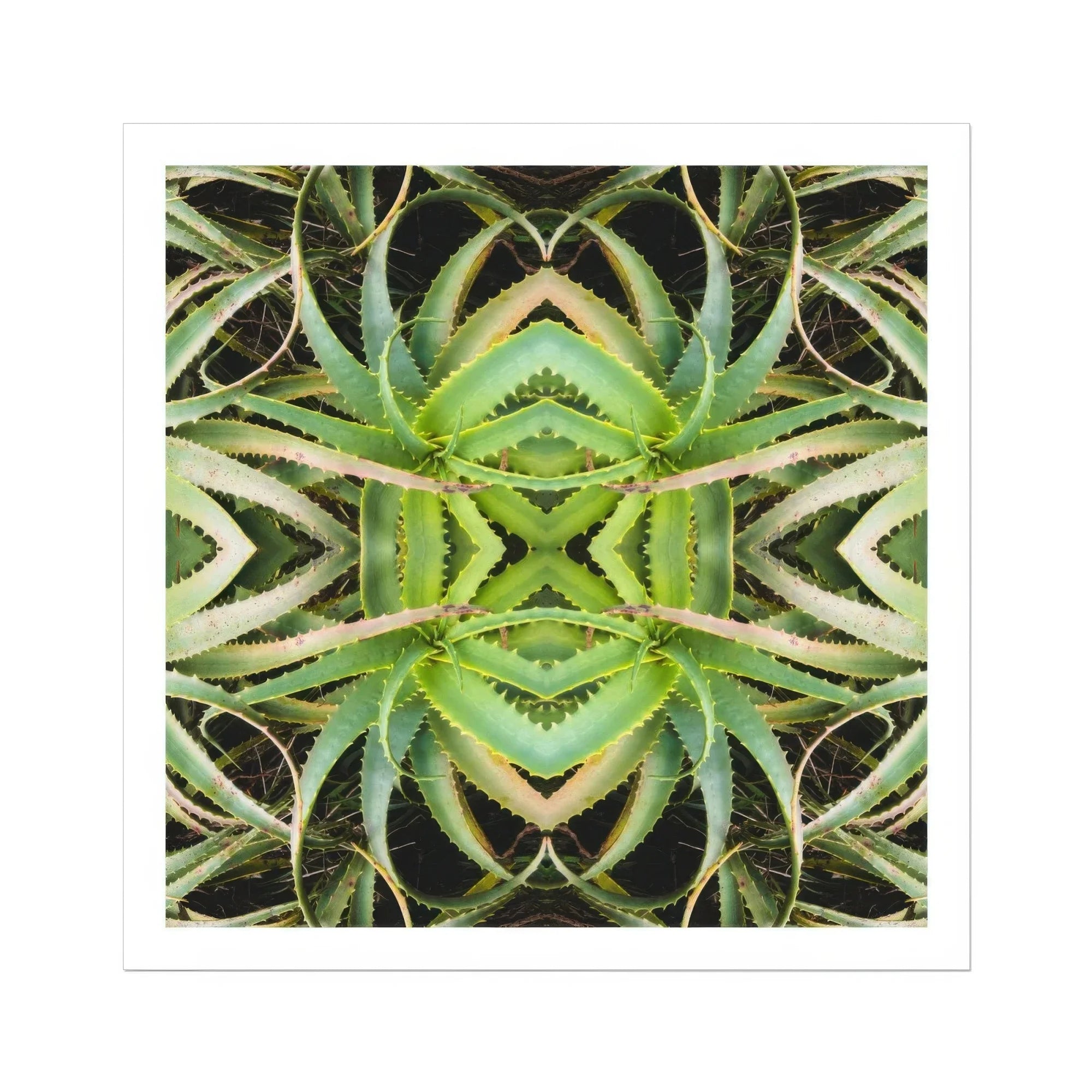 Je wordt hierdoor getransfixeerd kunstafdruk, een botanische hallucinatie die aloë vera verandert in een Verdant Rorschach -test. De sappig's Spiny Leaves Pirouette in perfecte symmetrie, waardoor een buitenaardse manier ontstaat vlinder Silhouet tegen een inktheilige leegte. Chartreuse Blades in elkaar grijpen in een duizelingwekkende dans, hun gekartelde randen vormen een organisch labyrint.
