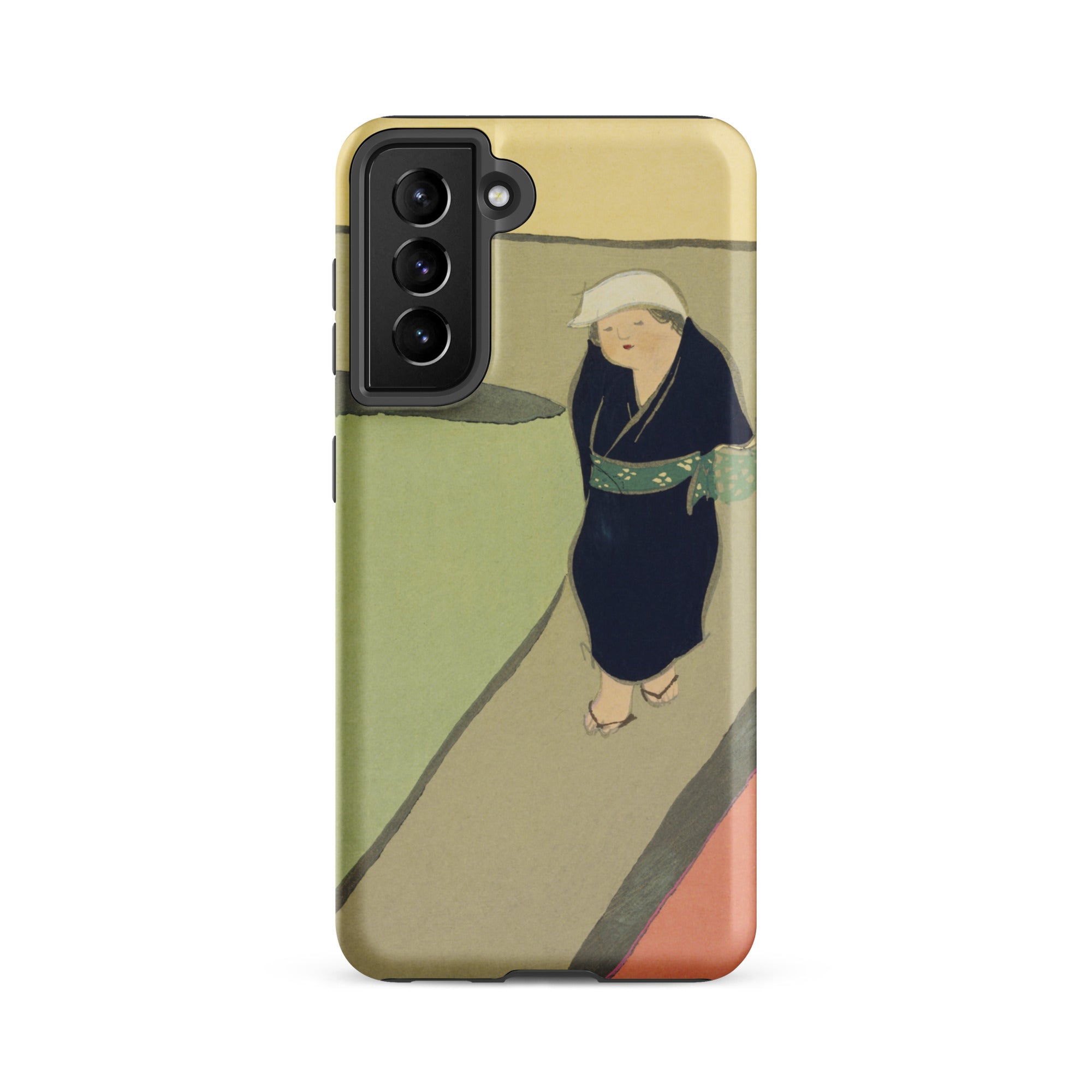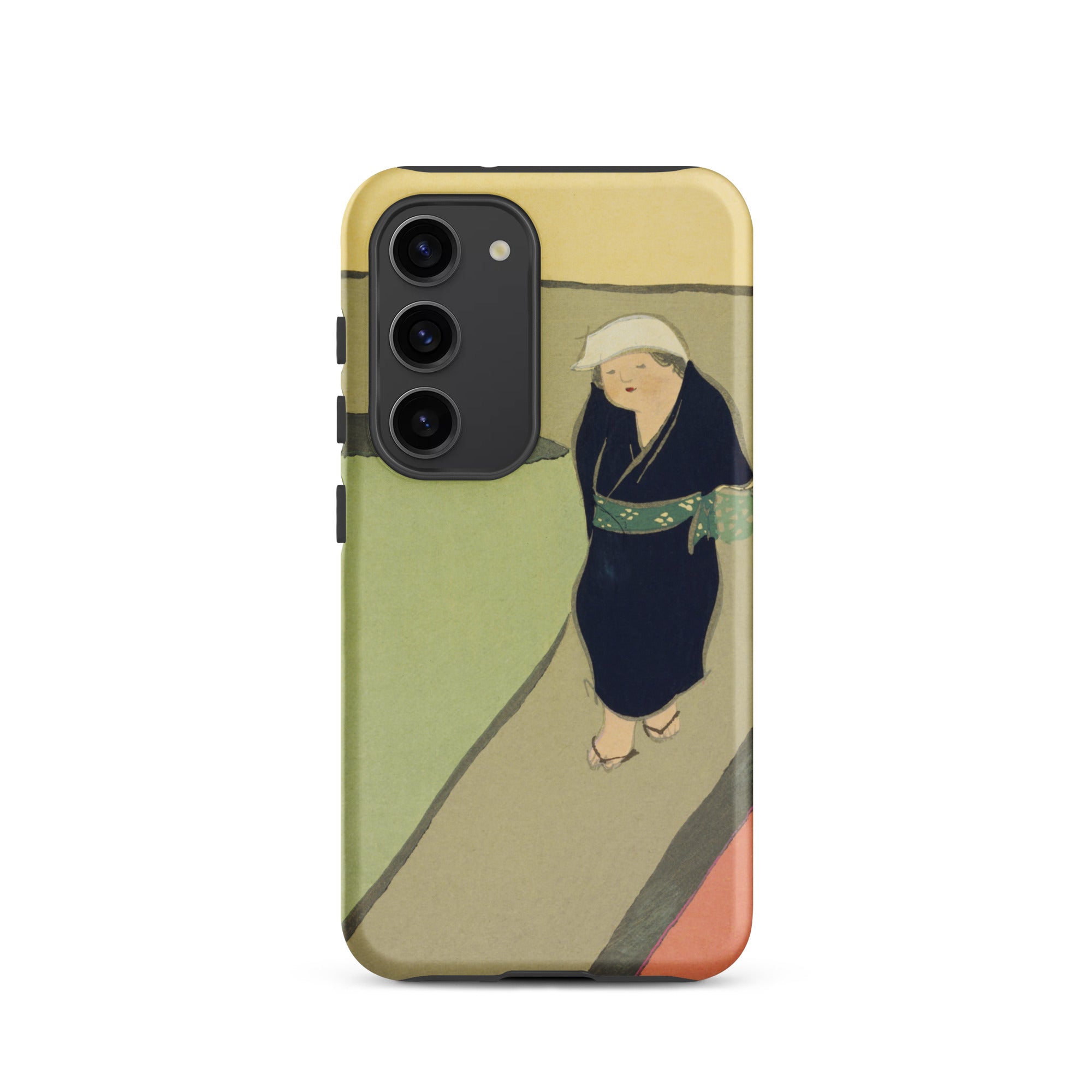 Op deze Samsung-hoes eert het ingetogen palet en de gebalanceerde asymmetrie het Japanse houtblok-erfgoed, de ontwerpafkomst van Kyoto, en het modernisme uit de Meiji-periode, en draagt een stukje tijdloze seizoenspoëzie waar je ook gaat.