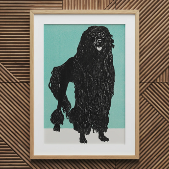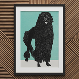 Je zult geboeid worden door deze explosie van hondse charme die op het punt staat je muur te verfraaien. Moriz Jung's "Poedel" uit 1912 is niet zomaar een vintage grafische hond kunstdruk - het is een modernistisch manifest met een kwispelende staart - en natuurlijk prachtig. Dit houtsnede wonder transformeert pluizig naar fel fabulous, met een gitzwart silhouet dat tegen een aqua achtergrond opvalt.