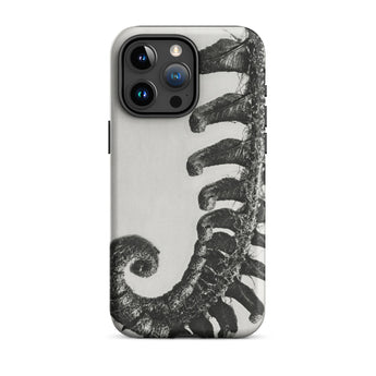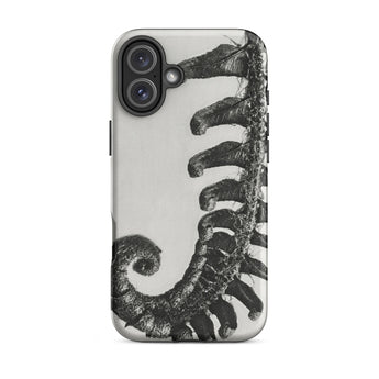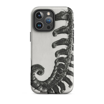 Ingesproken uw iPhone in de botanische revolutie van Blossfeldt. Dit slanke telefoonpantser toont de trotse spiraal van Polystichum Munitum, een monochromatische rebellie tegen het alledaagse.
