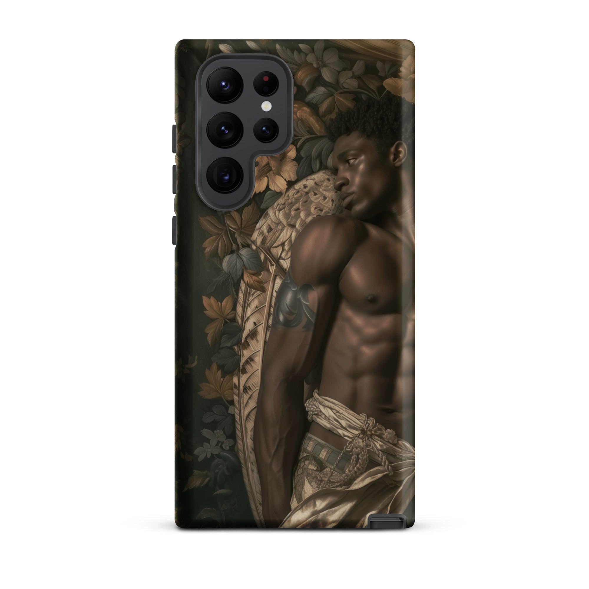 Deze Samsung-hoes verandert je apparaat in een heiligdom voor queer mythologie, waarbij Zwarte engelachtige kracht wordt vermengd met botanische weelde. Elk detail—bloemblad, ader, streng—verfraait de wisselwerking van zachtheid en staal, een beeld dat zowel intiem als monumentaal is, klaar om je telefoon te bewaken zoals hij de mysteries bewaakt die hij draagt.