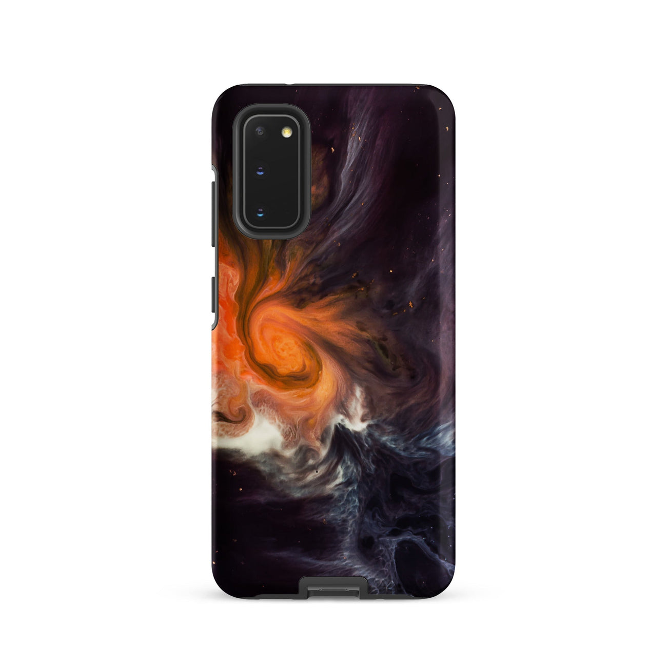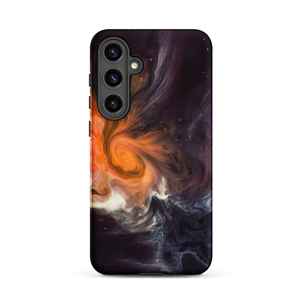 De gradatie van verzengende hitte naar schaduwrijke koelheid creëert een diepte die zowel oneindig als intiem aanvoelt, een interstellaire bloei die halverwege de creatie is opgehangen. Perfect afgedrukt om elke delicate rank van damp en lichtflits te behouden, beschermt deze Samsung-hoes je apparaat terwijl het de grandeur van galactische vorming in je hand draagt.