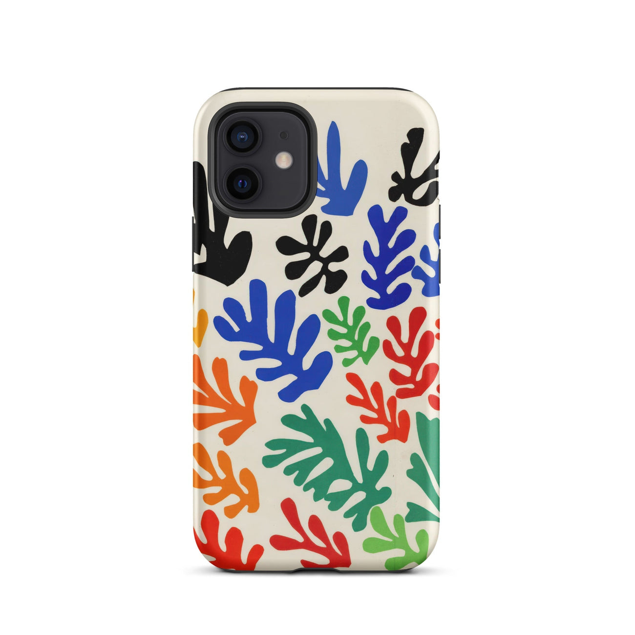 Deze Henri Matisse Sheaf iPhone hoes pulseert met de rauwe energie van de iconische knipsels van de kunstenaar. Een jubelende explosie van gedurfde, organische vormen die lijken te fladderen als onderwaterflora of door de wind bewogen bladeren. Zijn revolutionaire kniptechniek, een synthese van schilderkunst en beeldhouwkunst, transformeert pure kleur in beweging, met dynamische contrasten van kobaltblauw, karmozijnrood en inktzwart tegen een stralende ivoorkleurige achtergrond. Het ontwerp vangt de modernistische abstractie die Matisse's late carrière definieerde, waar eenvoud radicaal werd en vlakheid oneindig.