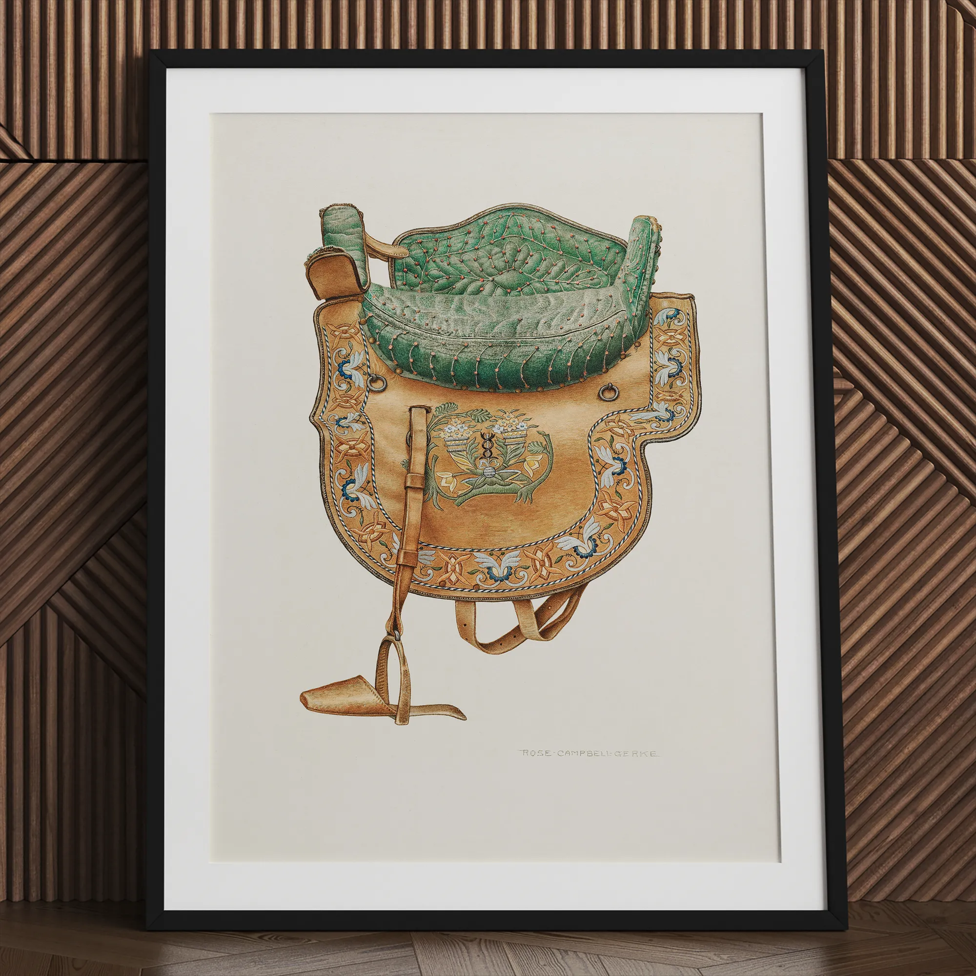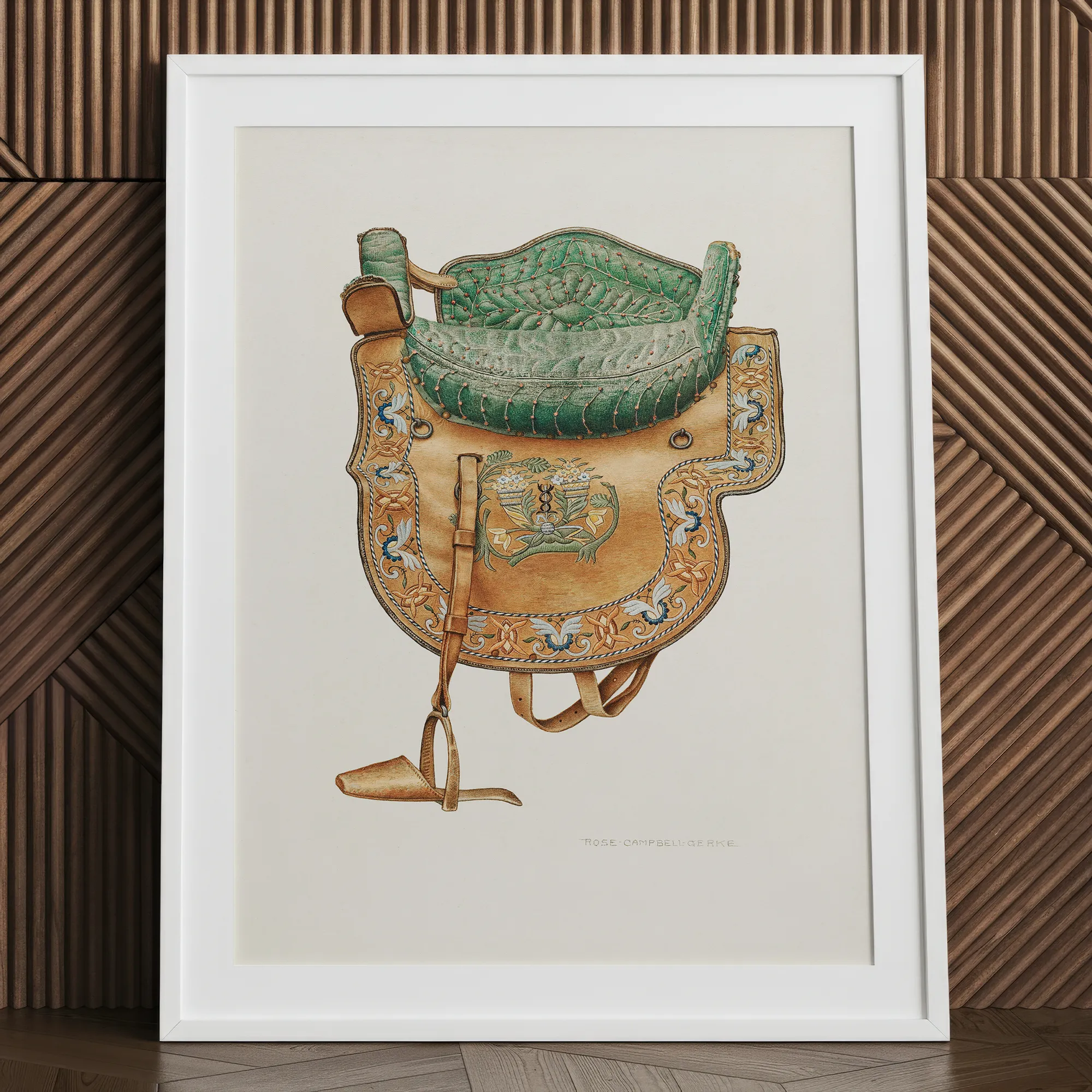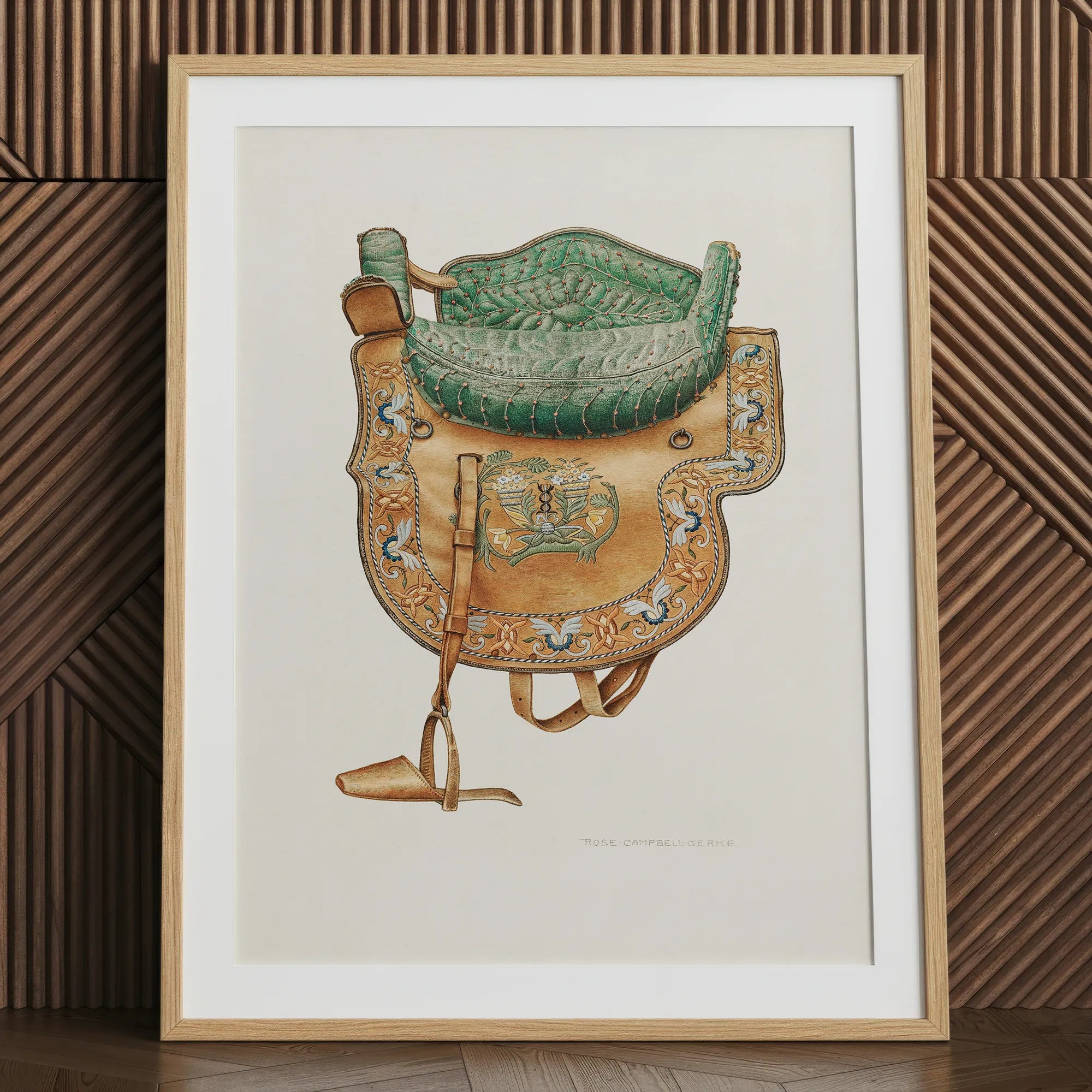 Giddyup, kunstliefhebbers. Je staat op het punt een stukje paardensport elegantie te vangen met deze prachtige zijzadelprint. Rose Campbell-Gerke's nauwgezette illustratie transporteert je naar het gouden tijdperk van verfijnd paardrijden.