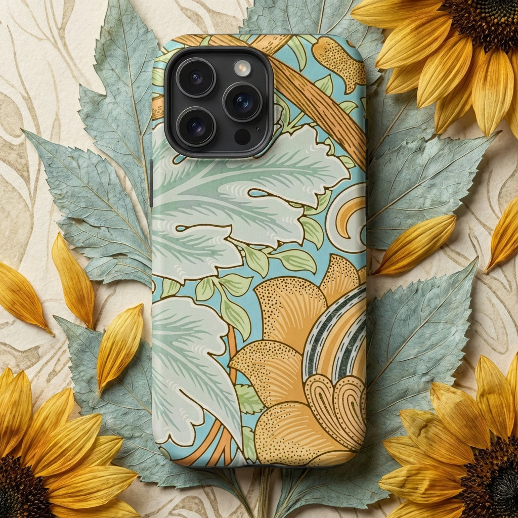 Dompel jezelf onder in de weelderige Art Nouveau Wereld van William Morris met dit St. James iPhone -hoesje. Je zult worden gefascineerd door de ingewikkelde dans van acanthusbladeren en gouden bloemen, een visuele symfonie die je apparaat transformeert in een meesterwerk ter grootte van een zak. Het etherische mint-groene gebladerte, subtiel geschetst in rijke oker, gefluister van geheime tuinen en Victoriaanse esthetiek.