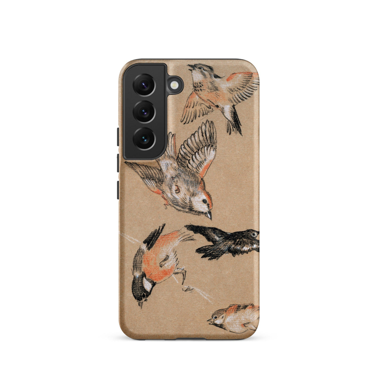 De Samsung-hoes verandert deze Victoriaanse studie in een draagbare galerie, de archieftekening weergegeven in scherpe, moderne print. Veren lijken te flikkeren als je het kantelt, de vogels zwevend in hun eeuwige boog.