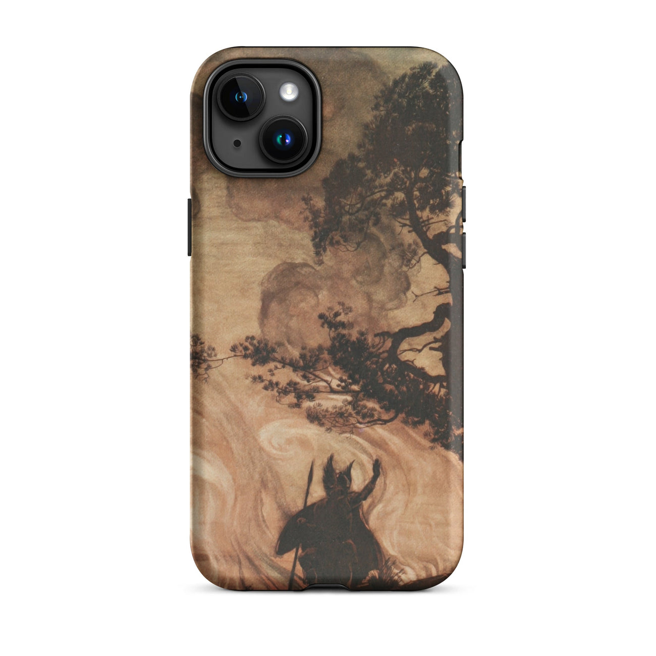 Wotan kijkt terug naar Brunnhilde - Arthur Rackham iPhone-hoesje