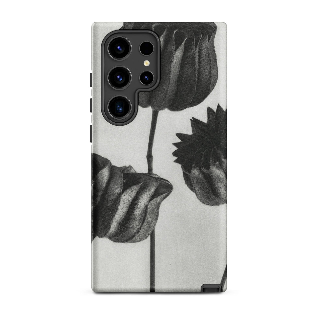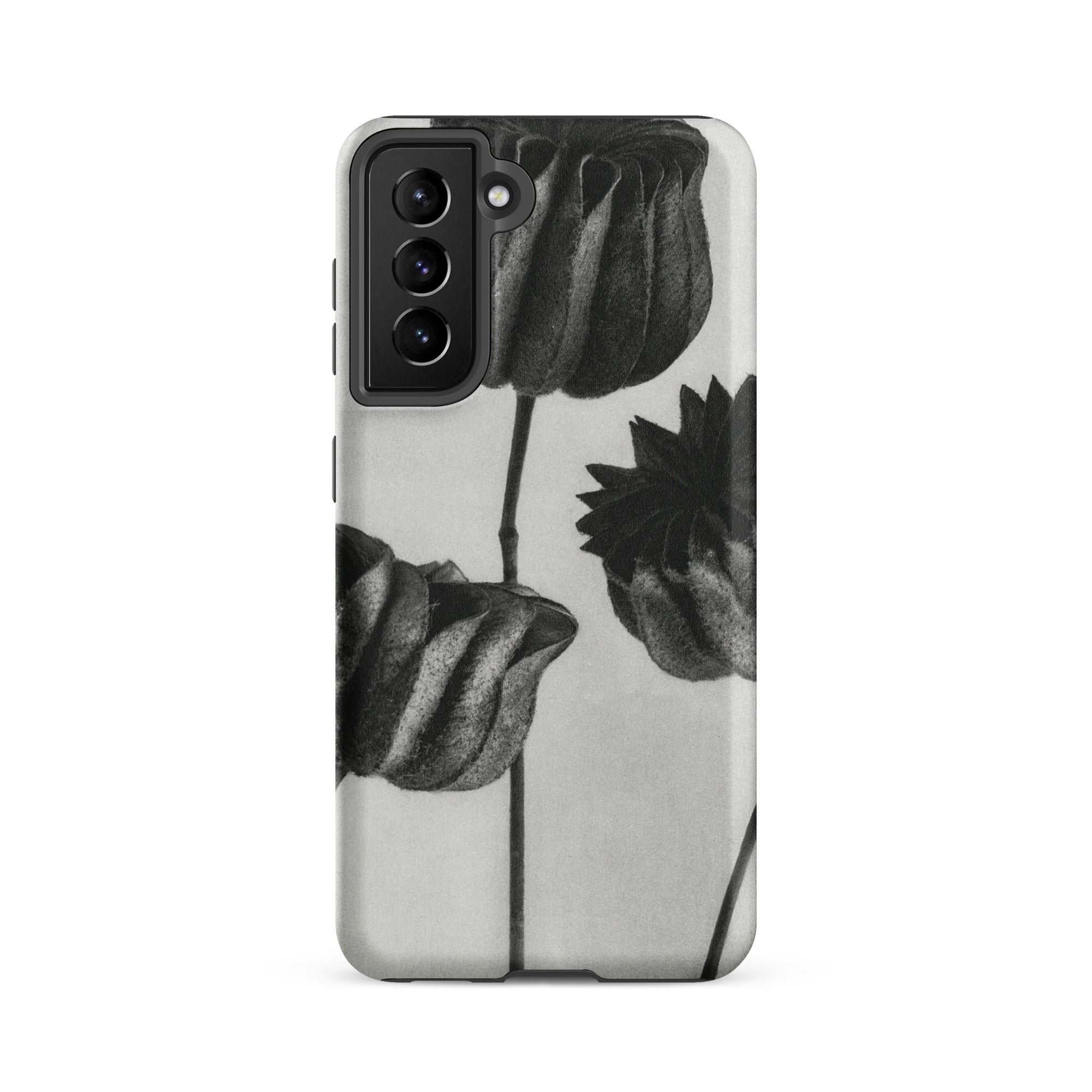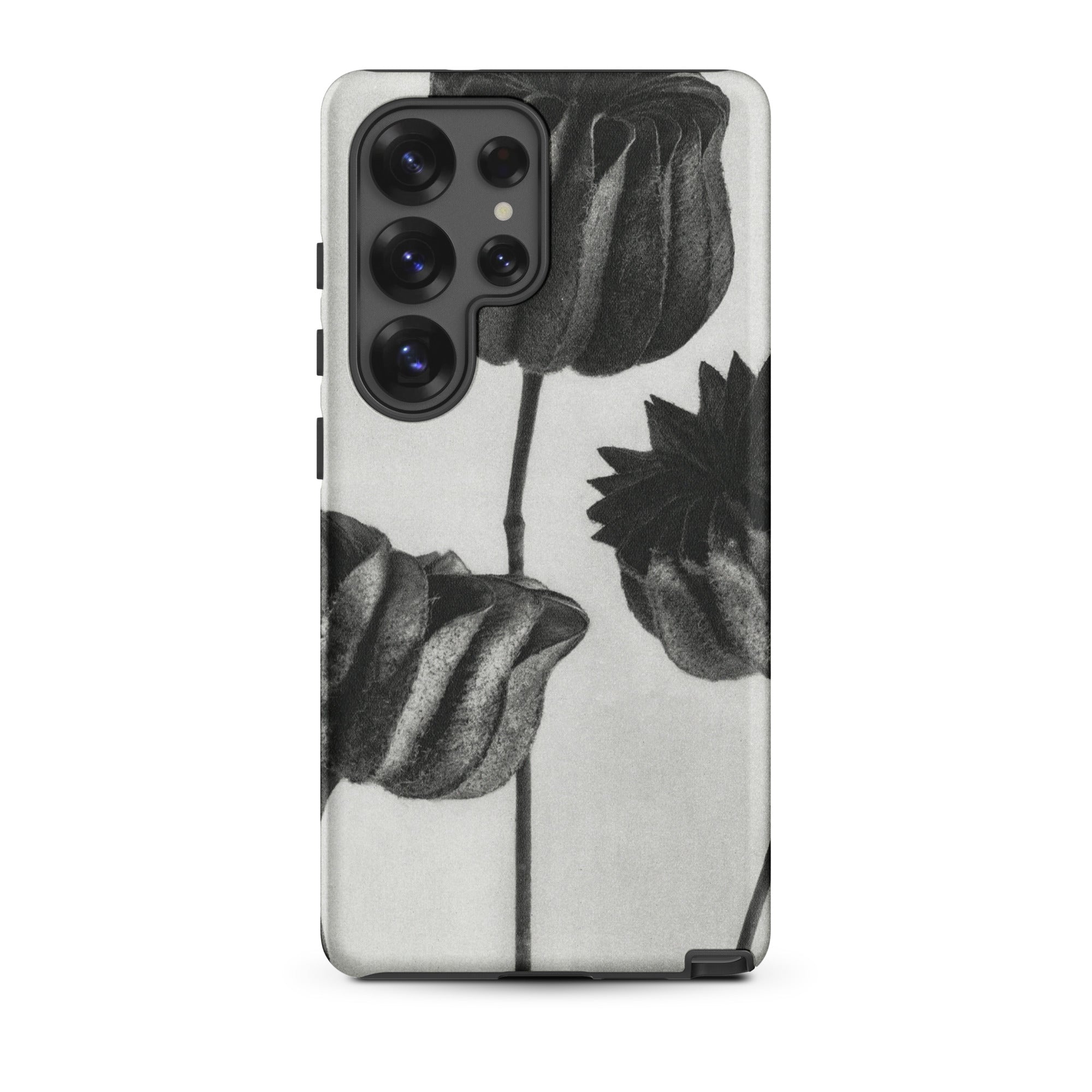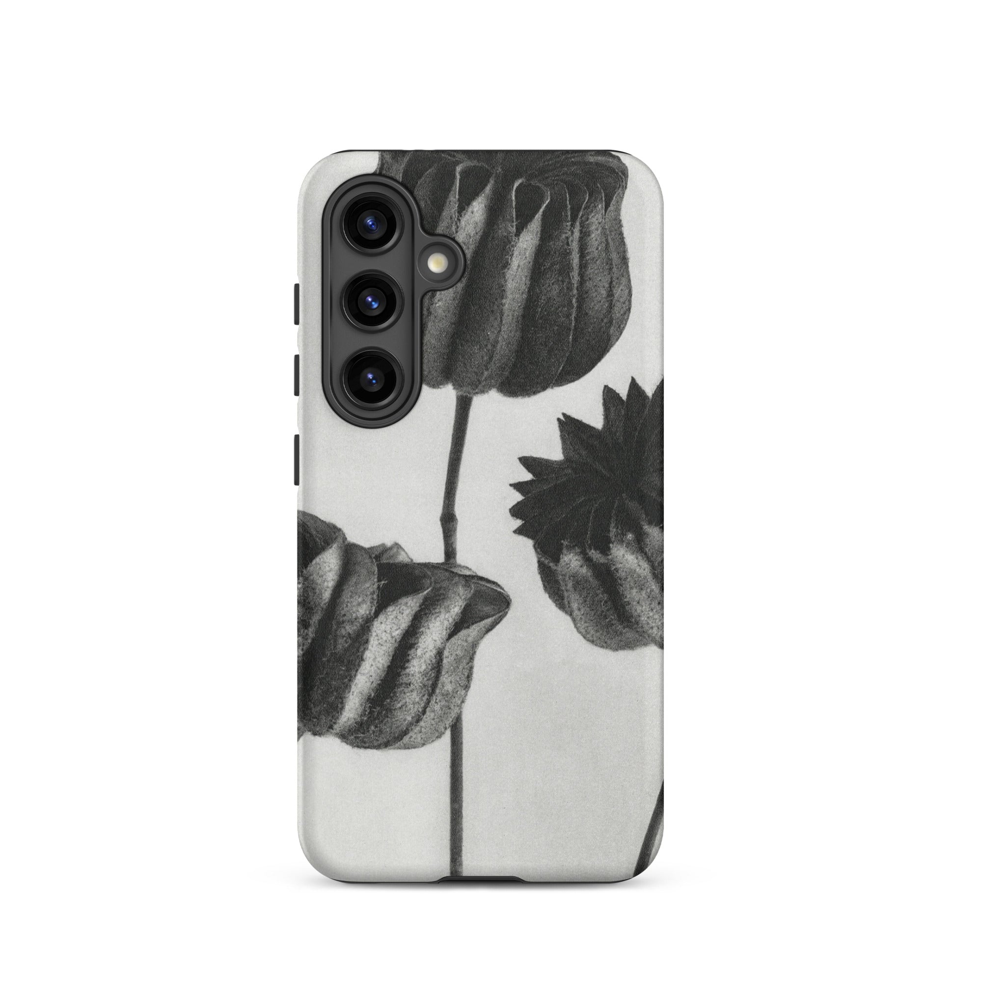 On this Samsung case, botanical study becomes a talisman of form: organic architecture meeting industrial design. The pods stand as patient silhouettes, unspooling their rhythms into the space around them, carrying the slow, deliberate geometry of growth into the everyday act of holding your phone.