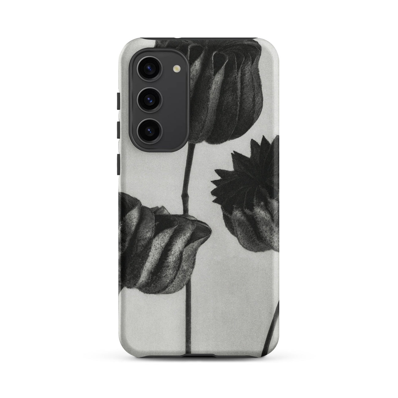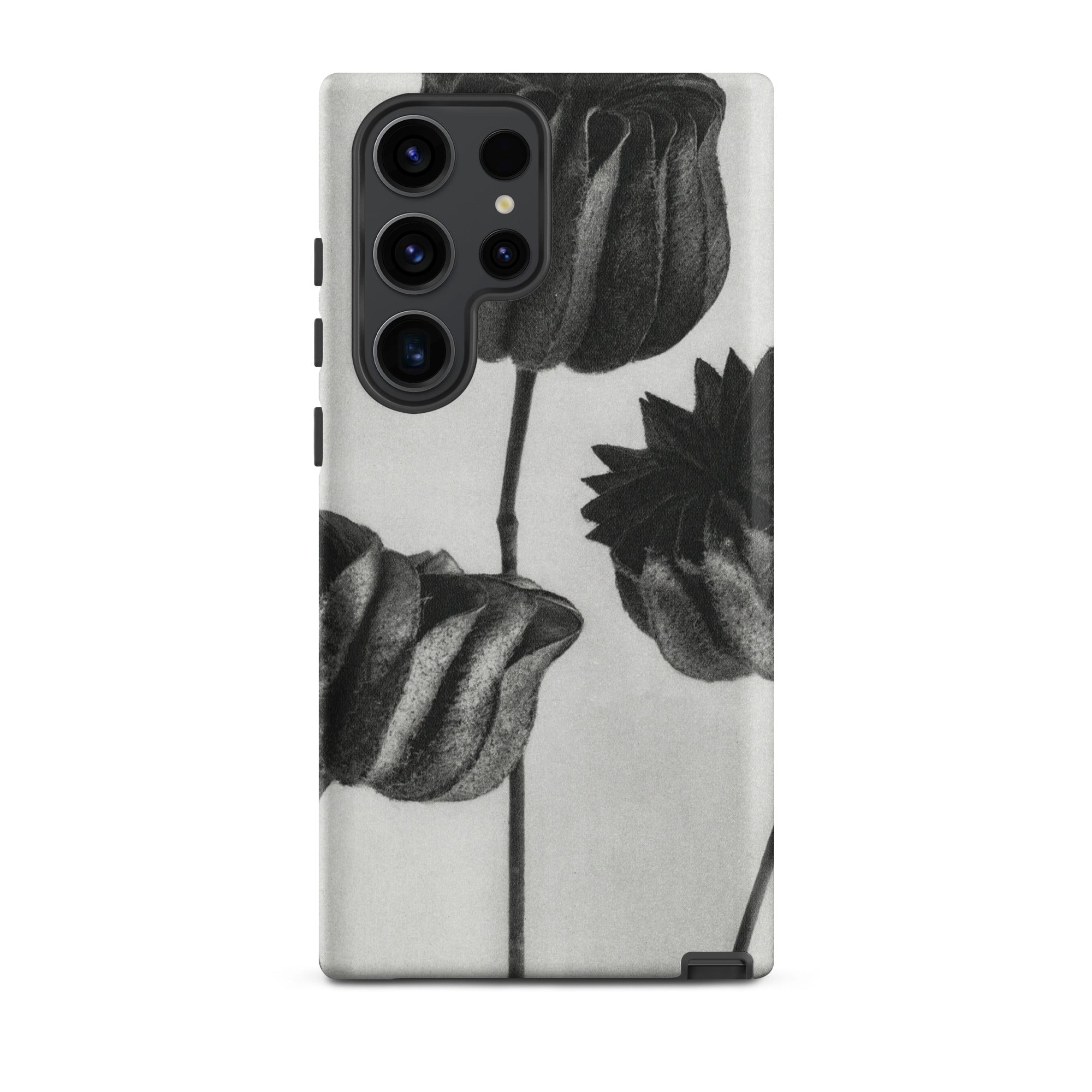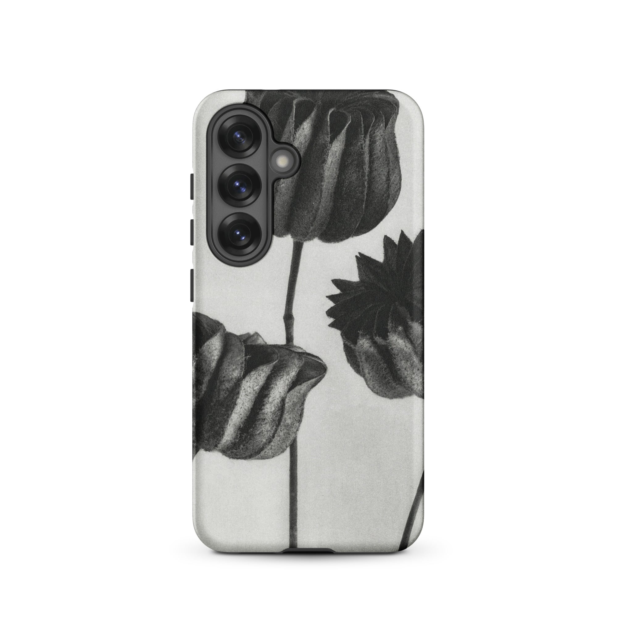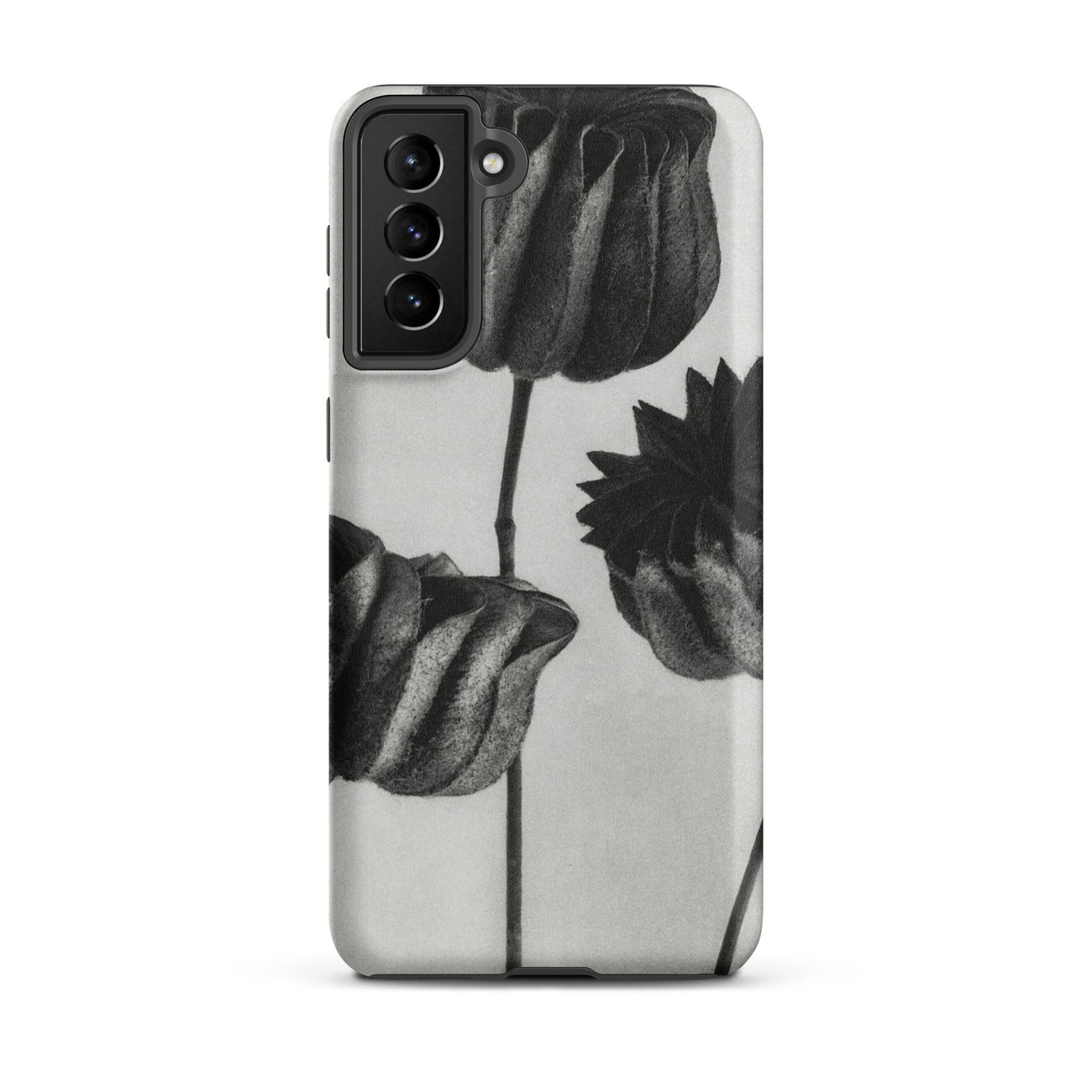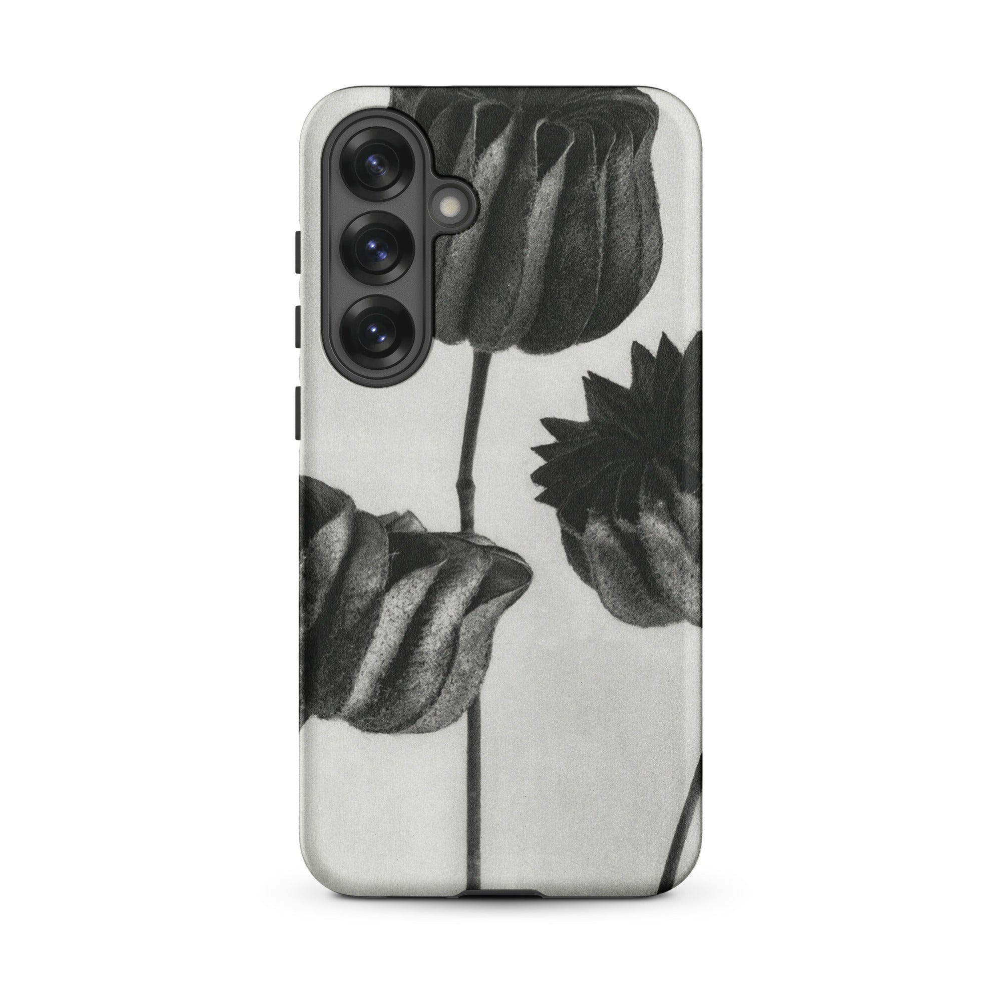 On this Samsung case, botanical study becomes a talisman of form: organic architecture meeting industrial design. The pods stand as patient silhouettes, unspooling their rhythms into the space around them, carrying the slow, deliberate geometry of growth into the everyday act of holding your phone.