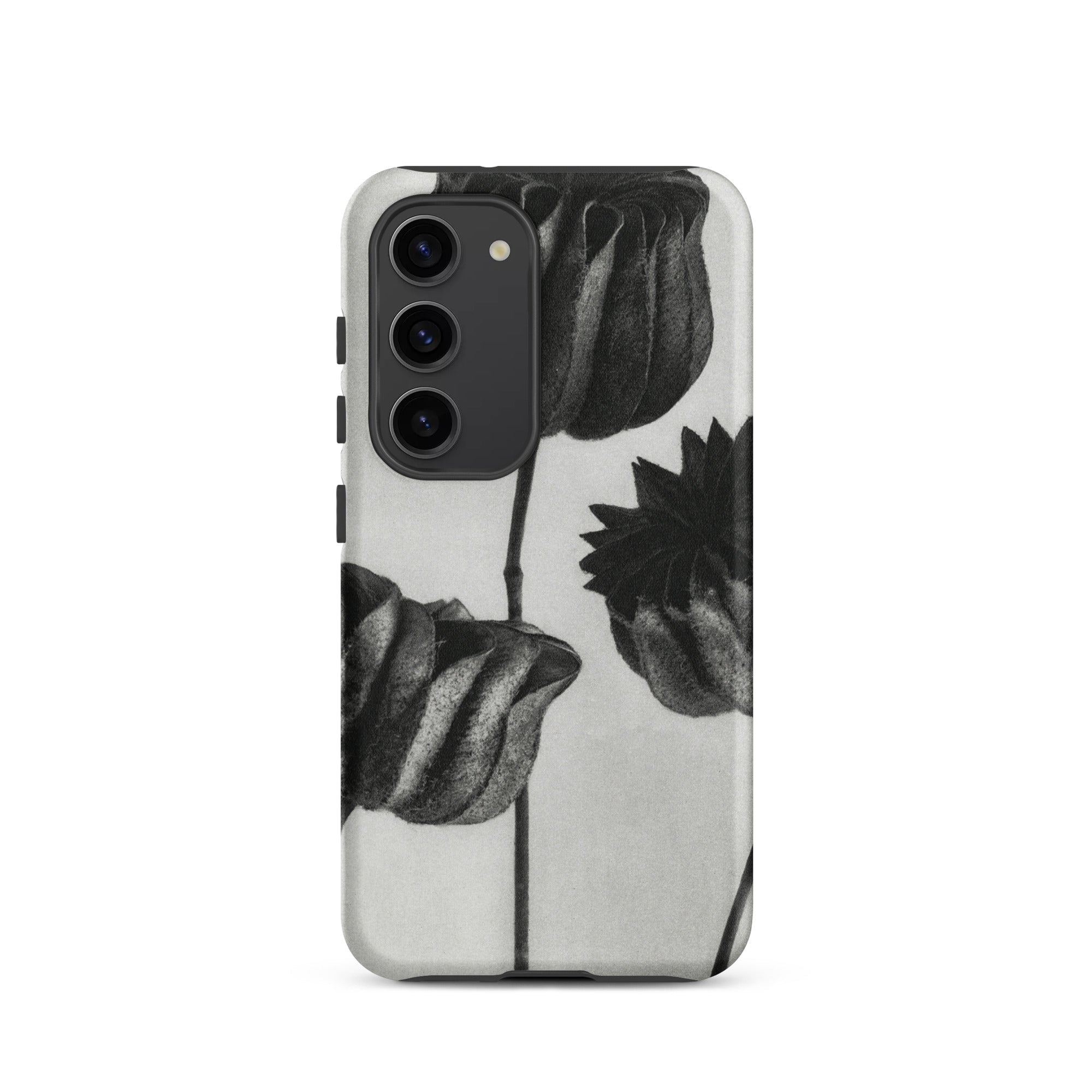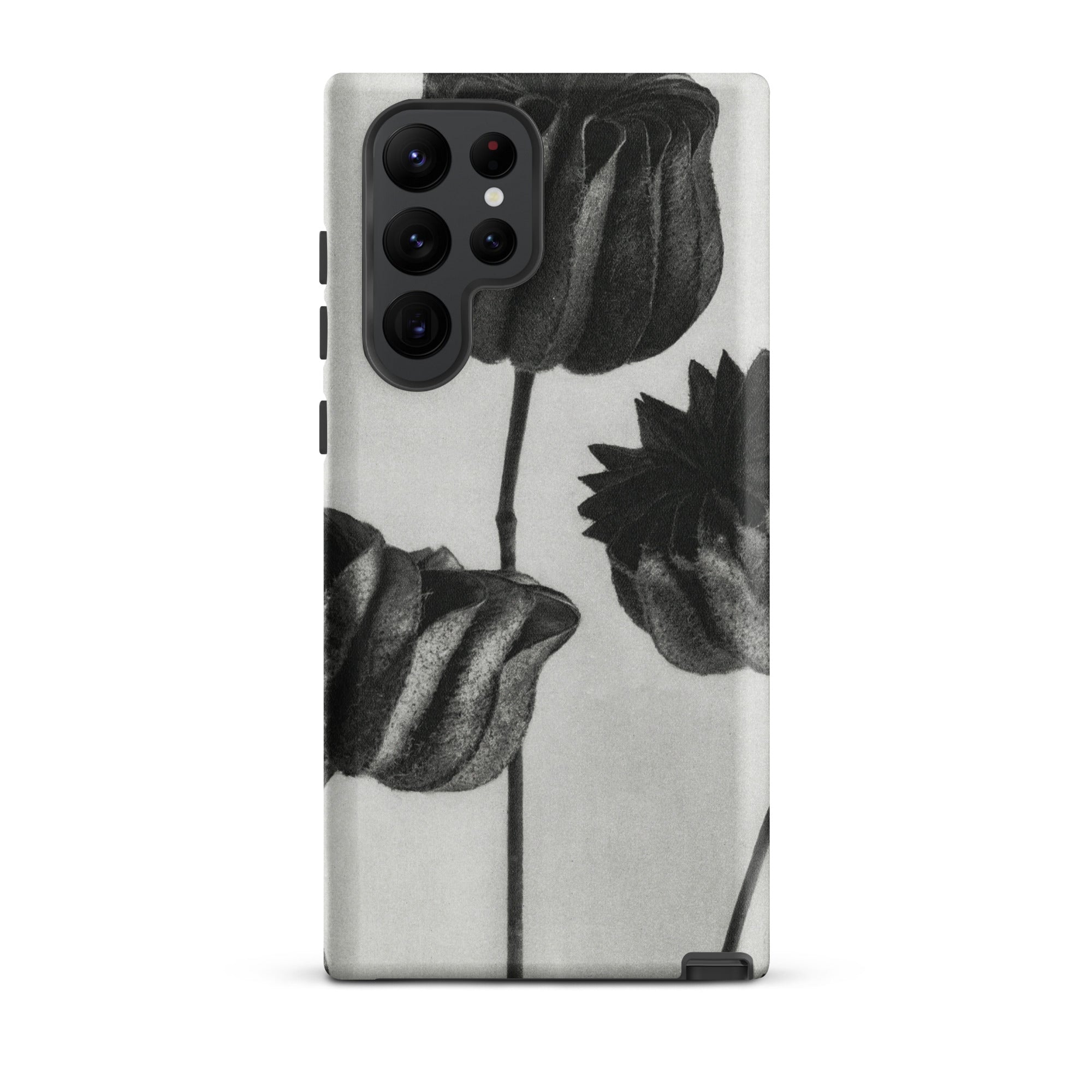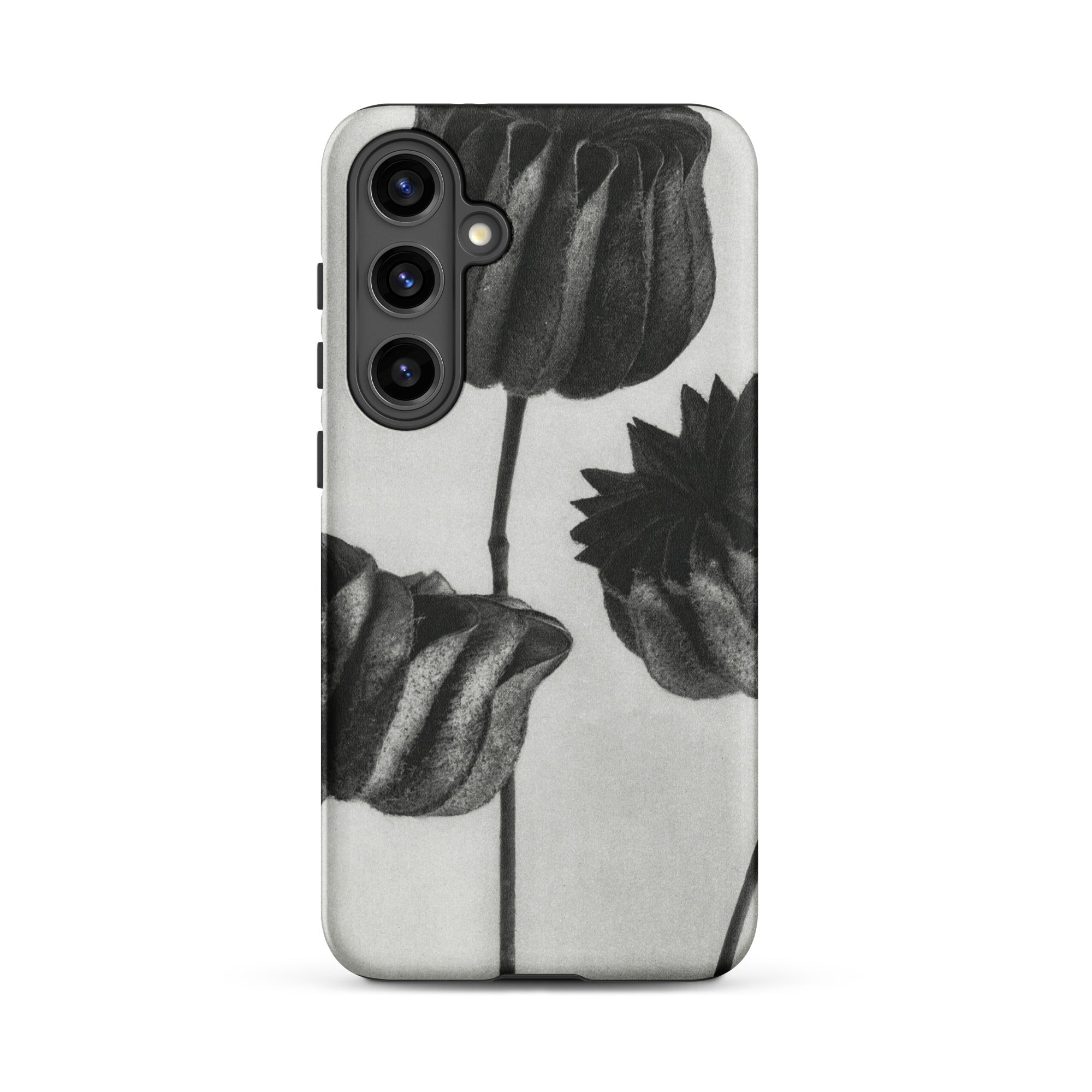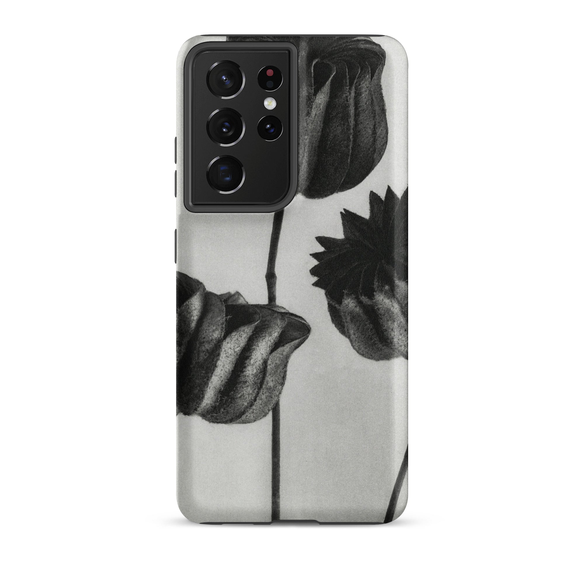 On this Samsung case, botanical study becomes a talisman of form: organic architecture meeting industrial design. The pods stand as patient silhouettes, unspooling their rhythms into the space around them, carrying the slow, deliberate geometry of growth into the everyday act of holding your phone.