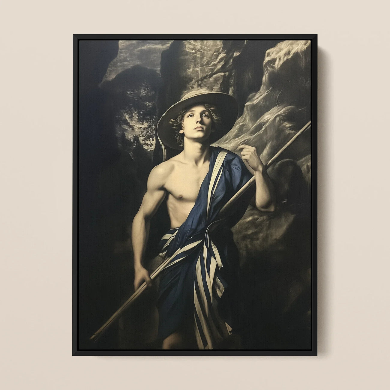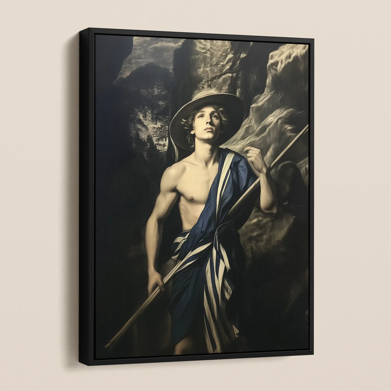 A neo-baroque revival, this piece bridges old-world mastery with contemporary queer aesthetics. More than wall art, it is an assertion, a whispered secret, a challenge. Hang it where hearts beat wild, where myths refuse to die. Let it spark conversations of identity, adventure, and the electric tension between past and future—a portal to a world where beauty is rebellion, and art is freedom.