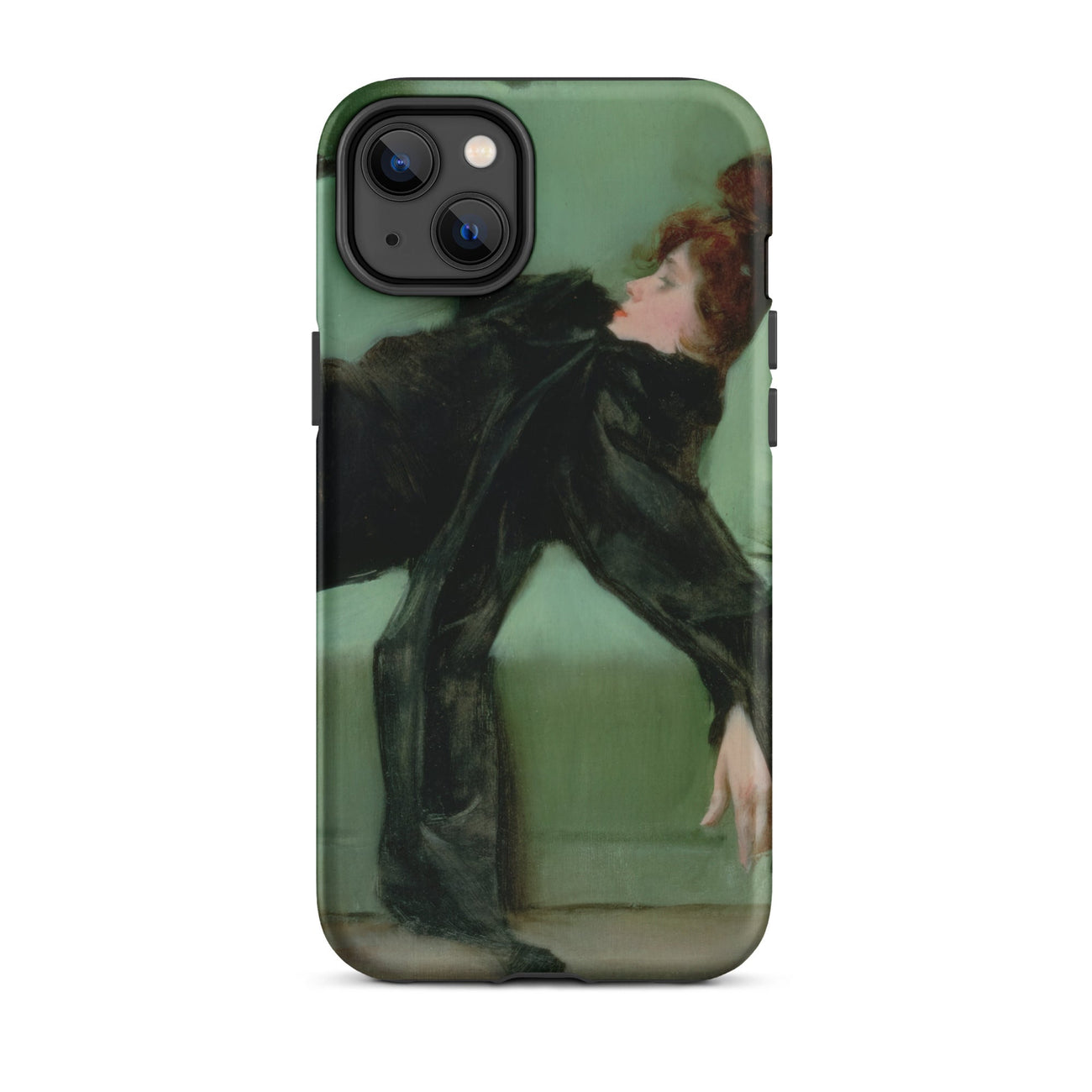 She drapes across the emerald void like a fevered sigh—her limbs exiled from intention, her gaze slack with velvet exhaustion. Ramon Casas’ After the Ball doesn’t depict aftermath; it suspends it. This Ramon Casas iPhone case renders Modernisme’s divine fatigue in tactile form, a whisper of Barcelona’s twilight salons, where opium thoughts coiled beneath silks and anarchists argued under gaslight.