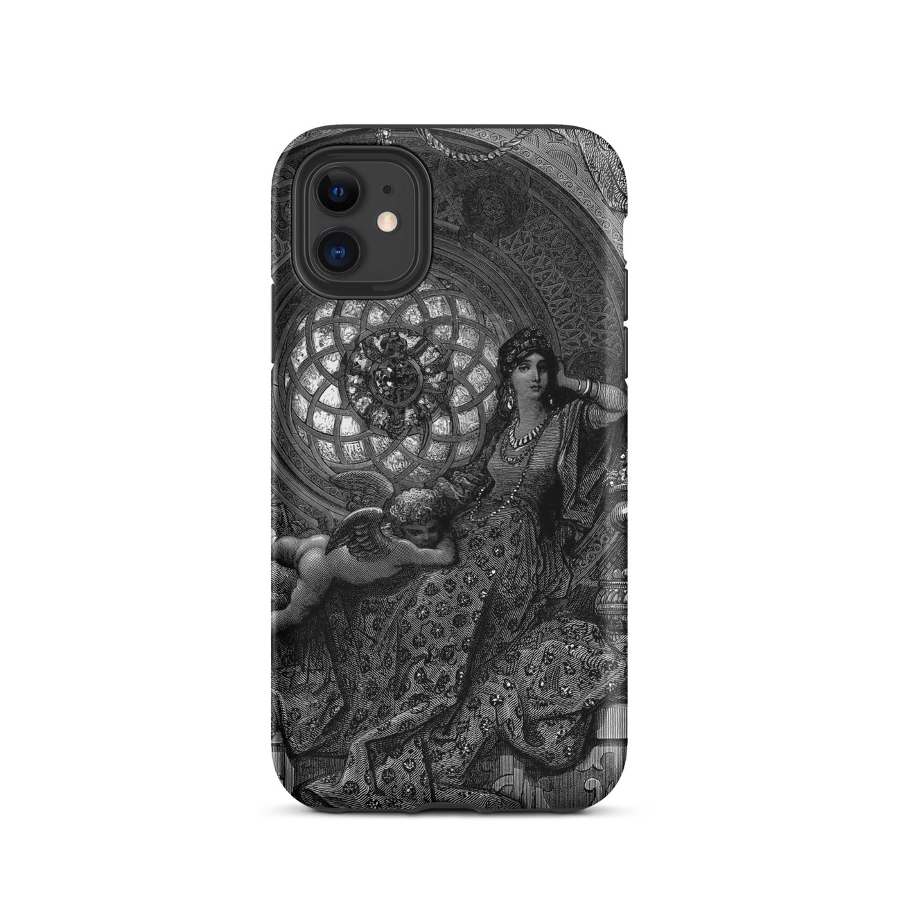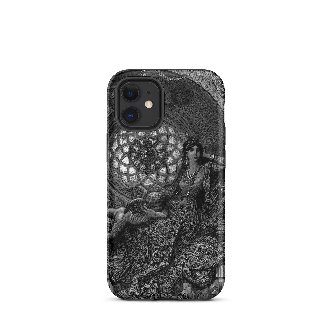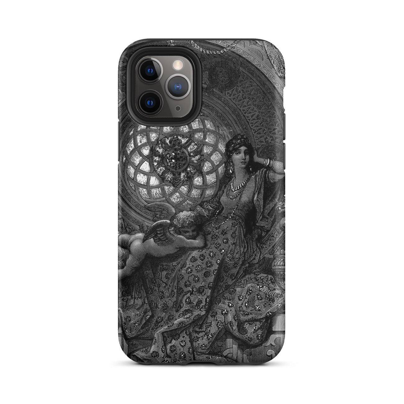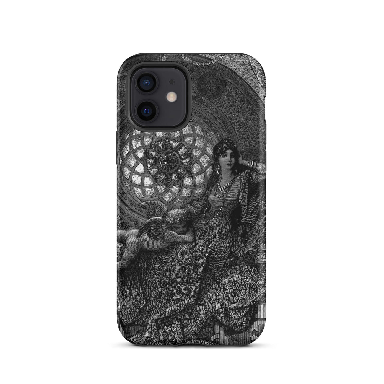 Gustave Doré’s Alcina’s Beauty Overcomes All of Ruggiero’s Misgivings swirls across this iPhone case with hypnotic density. The sorceress reclines beneath an ornate dome, her robe thick with patterned weight, while a winged cherub clings to her side.