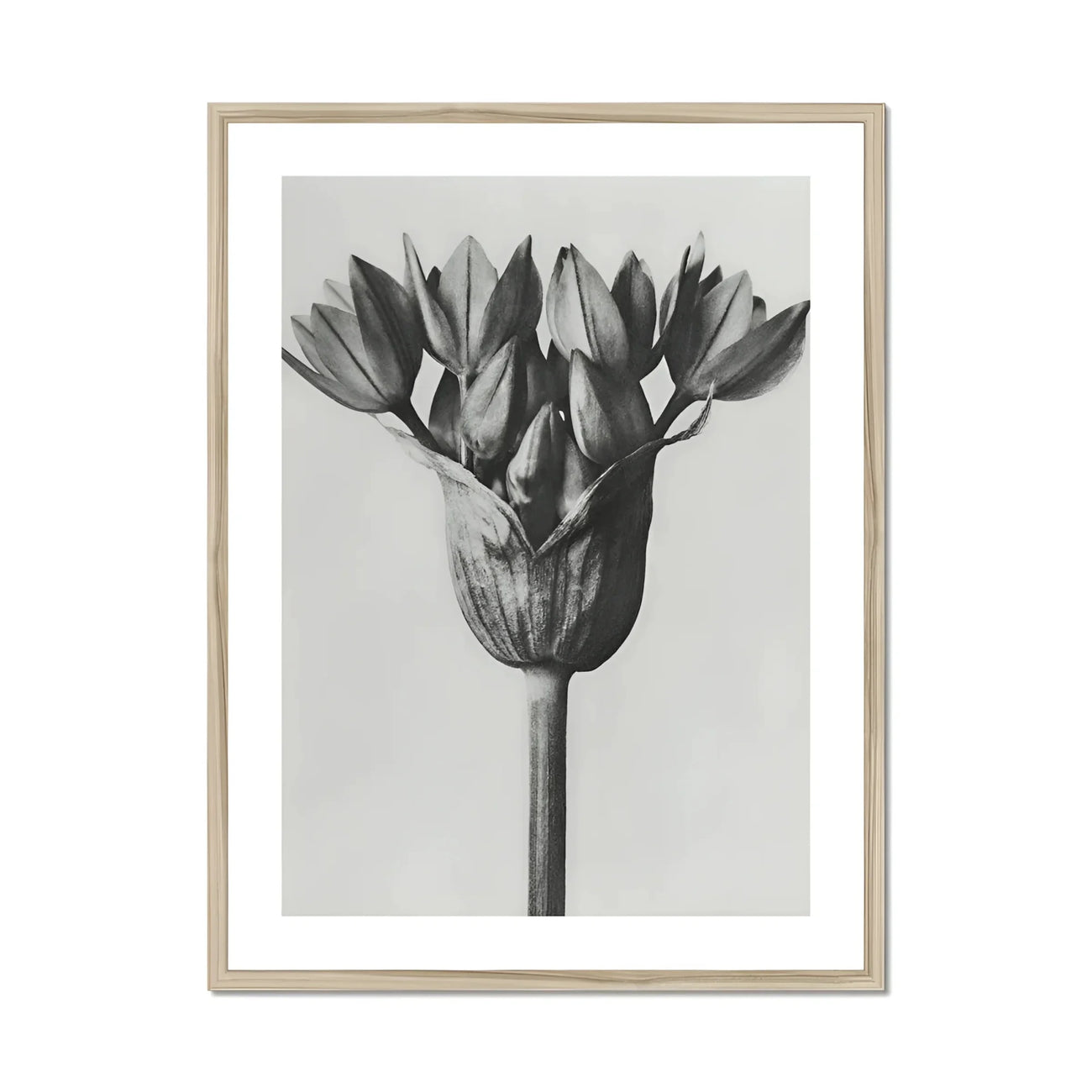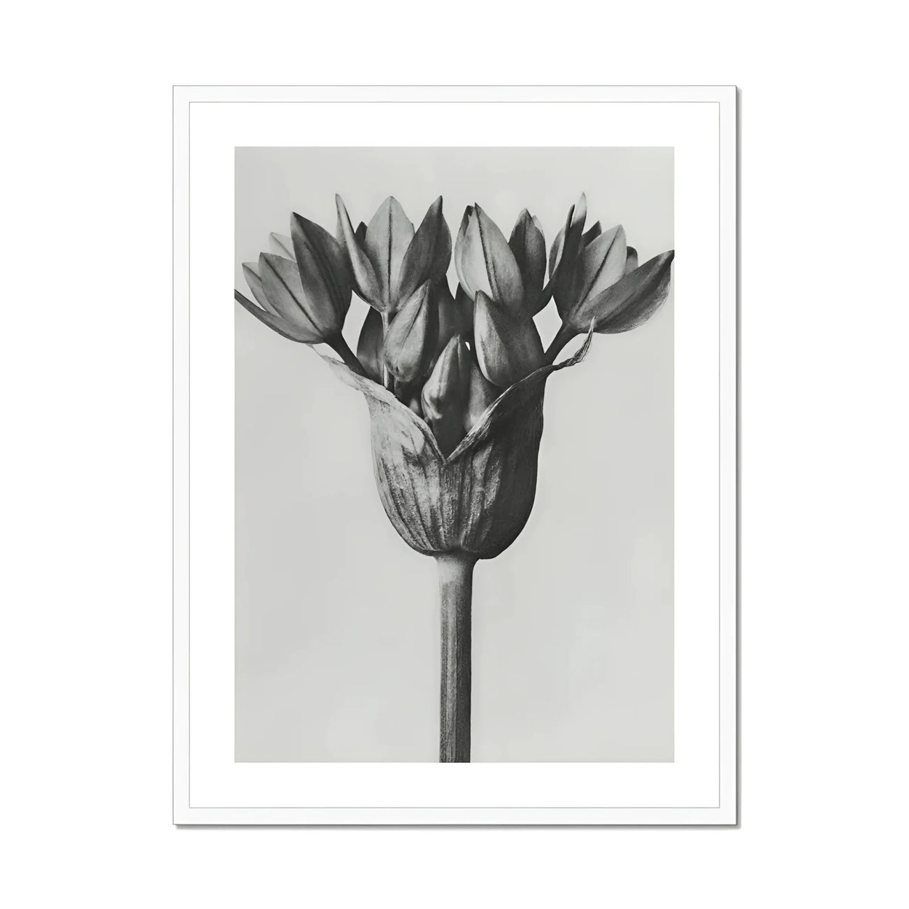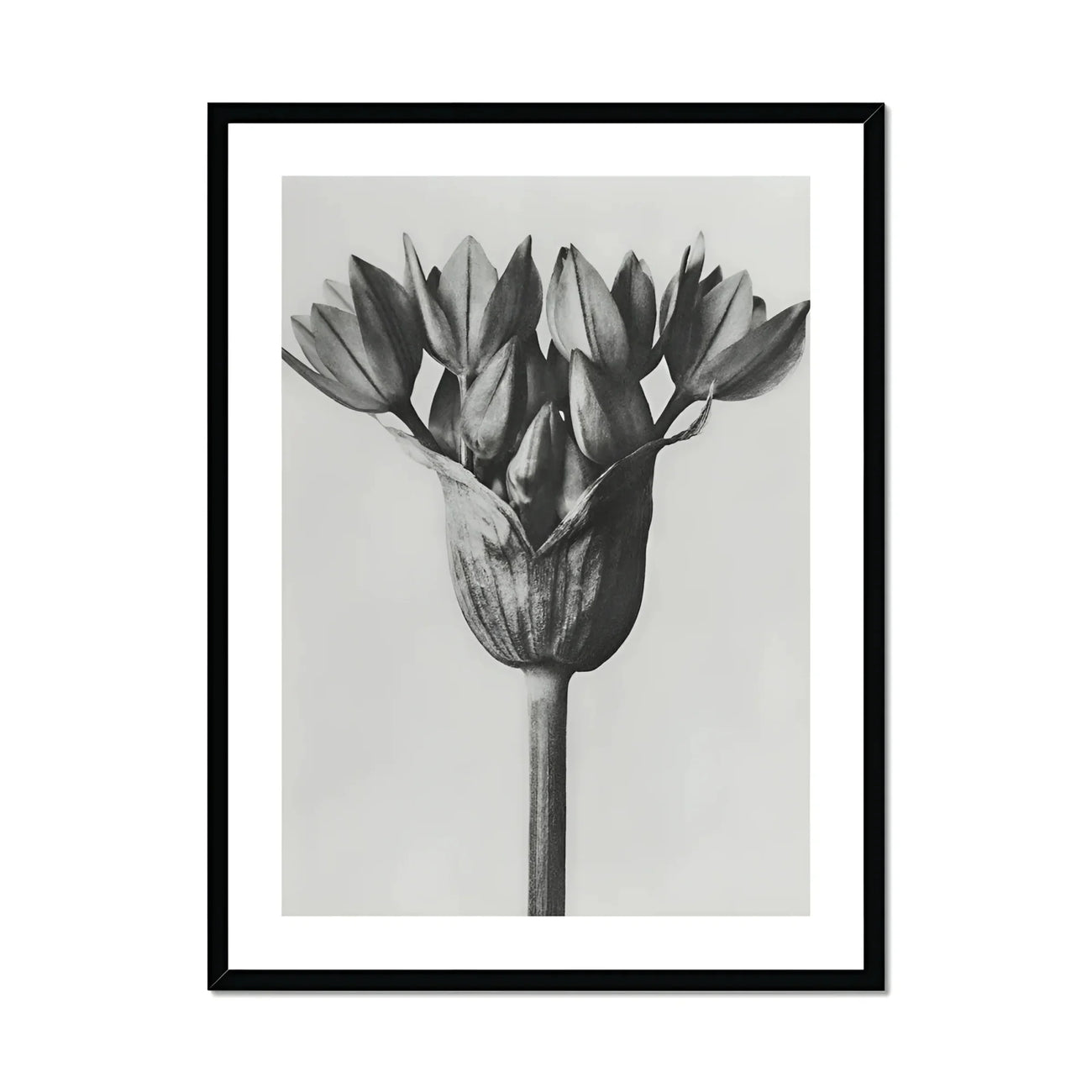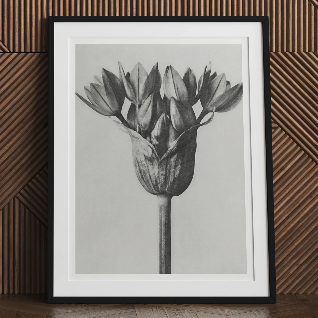 You're gazing at a monochromatic marvel – Karl Blossfeldt's meticulous capture of the Allium Ostroroskianum, or ornamental onion. And this fine art print unveils nature's hidden geometry in stark black and white, transforming the humble bulb into a sculptural wonder.