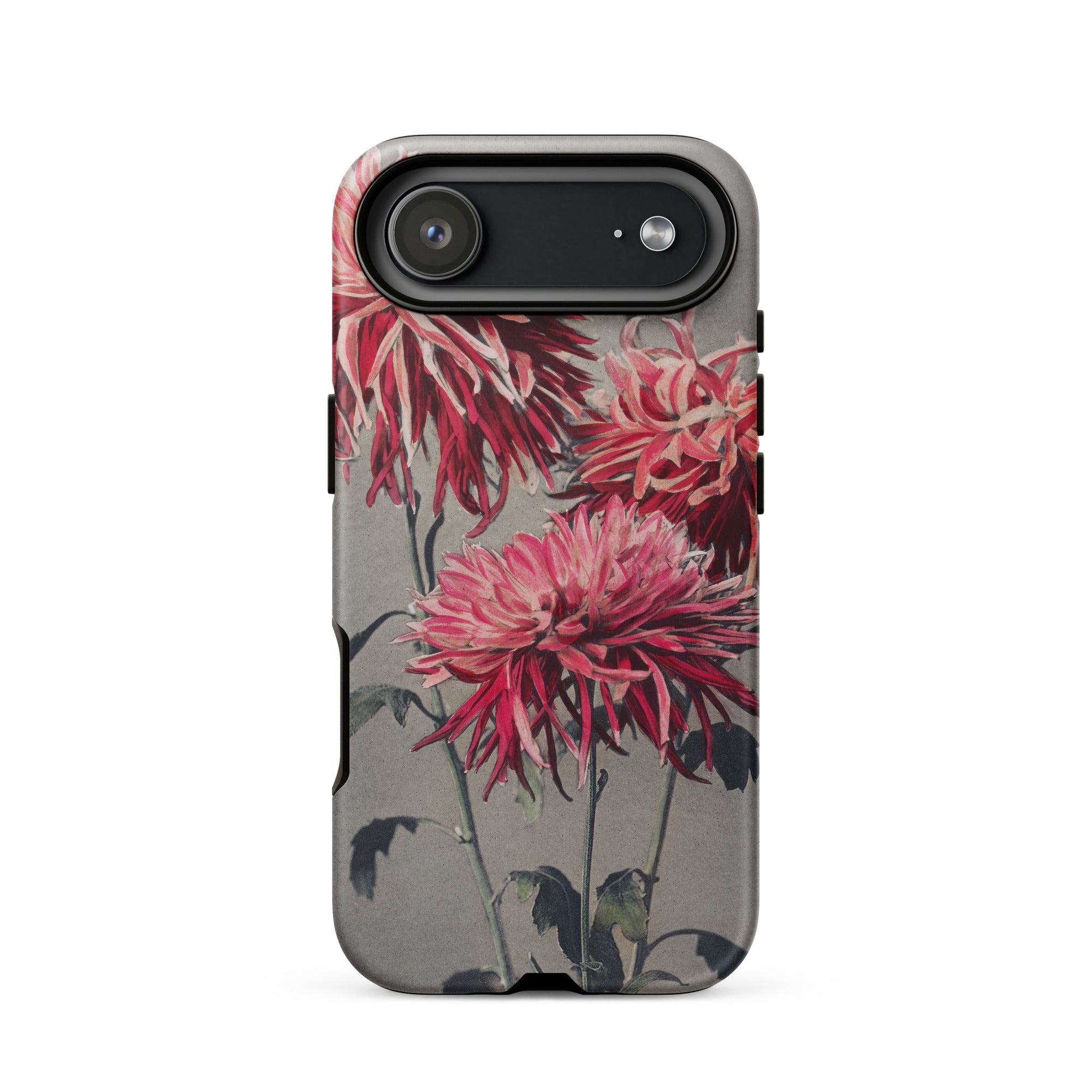 Crimson petals erupt like fireworks against a somber sky in this Meiji-era botanical spectacle, now immortalized on your new iPhone case. Ogawa Kazumasa's lens transforms humble chrysanthemums into blazing emissaries of Japanese tradition, their spiky forms defying the austere backdrop.