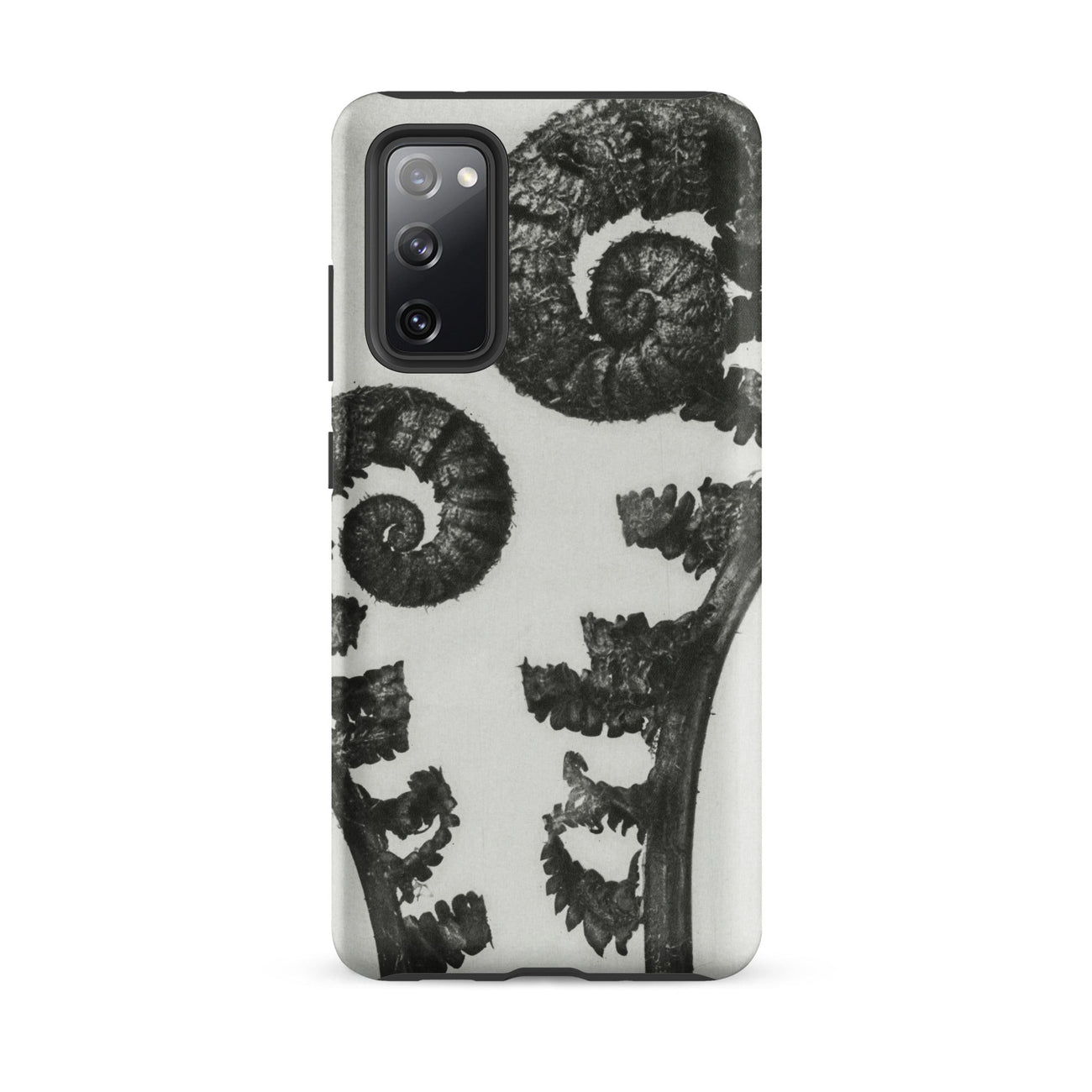 The Samsung case becomes a digital greenhouse—carrying macro-photography, plant morphology, photogravure heritage, and German Neue Sachlichkeit rigor. Its high-resolution fern silhouettes echo Art Nouveau’s organic motifs and Bauhaus structural clarity, spiraling like wrought-iron arabesques.