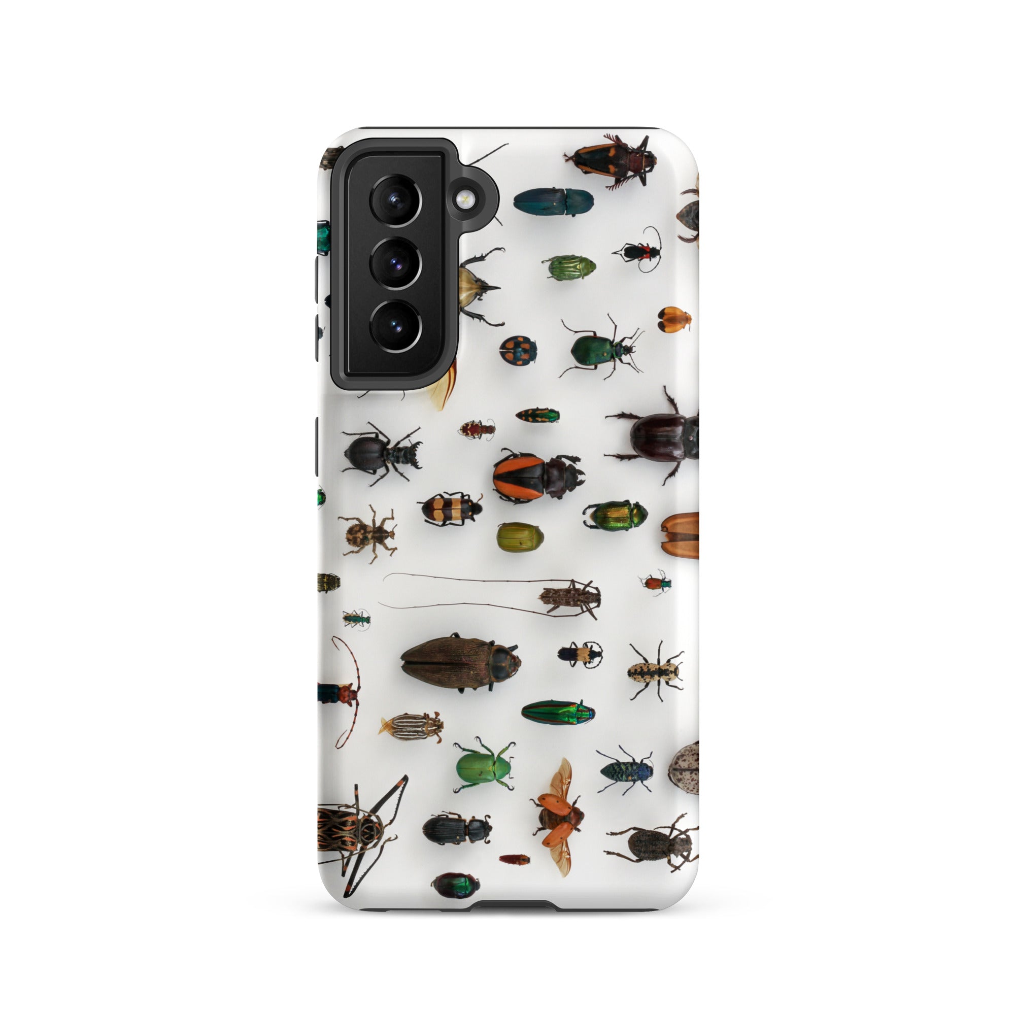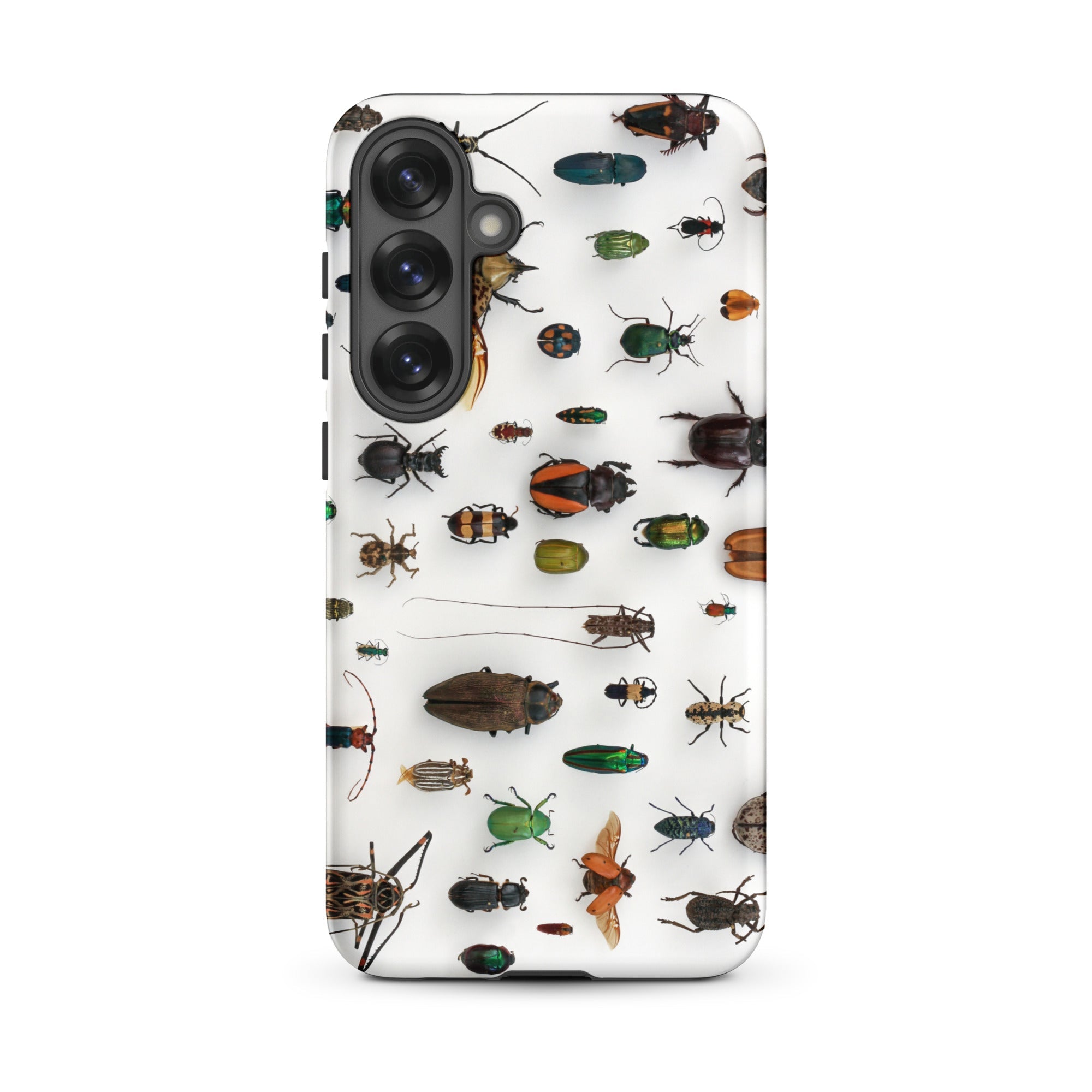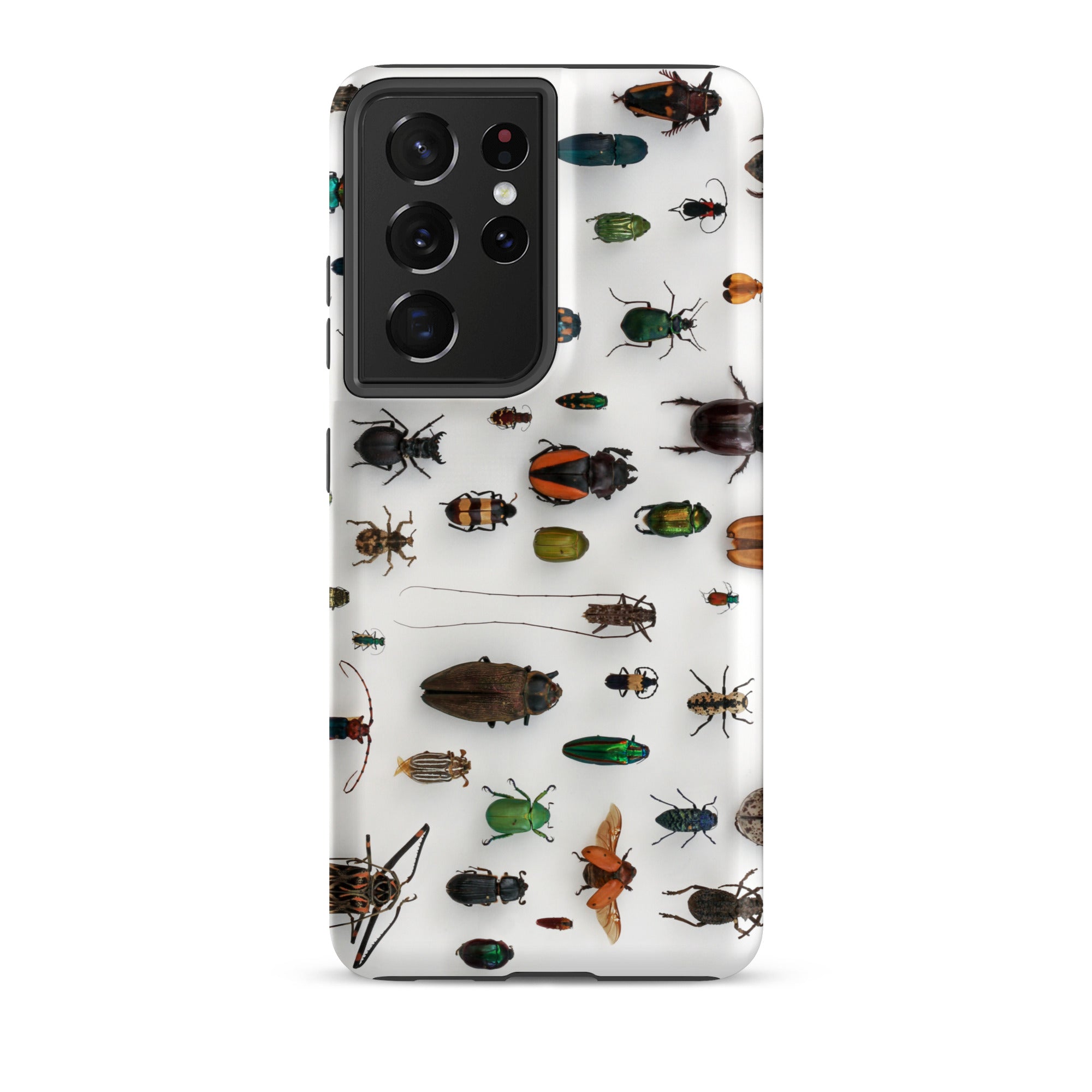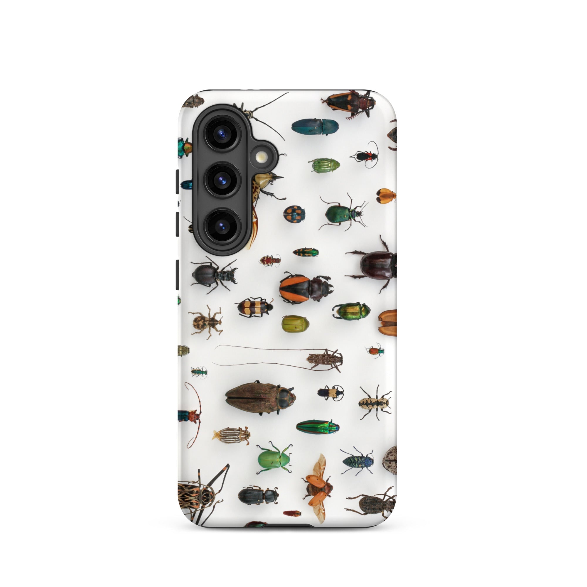 A parade of armored jewels stretches across this Samsung case: scarabs with emerald sheen, rhinoceros beetles with horned crowns, metallic leaf chafers glimmering like coins from lost kingdoms.