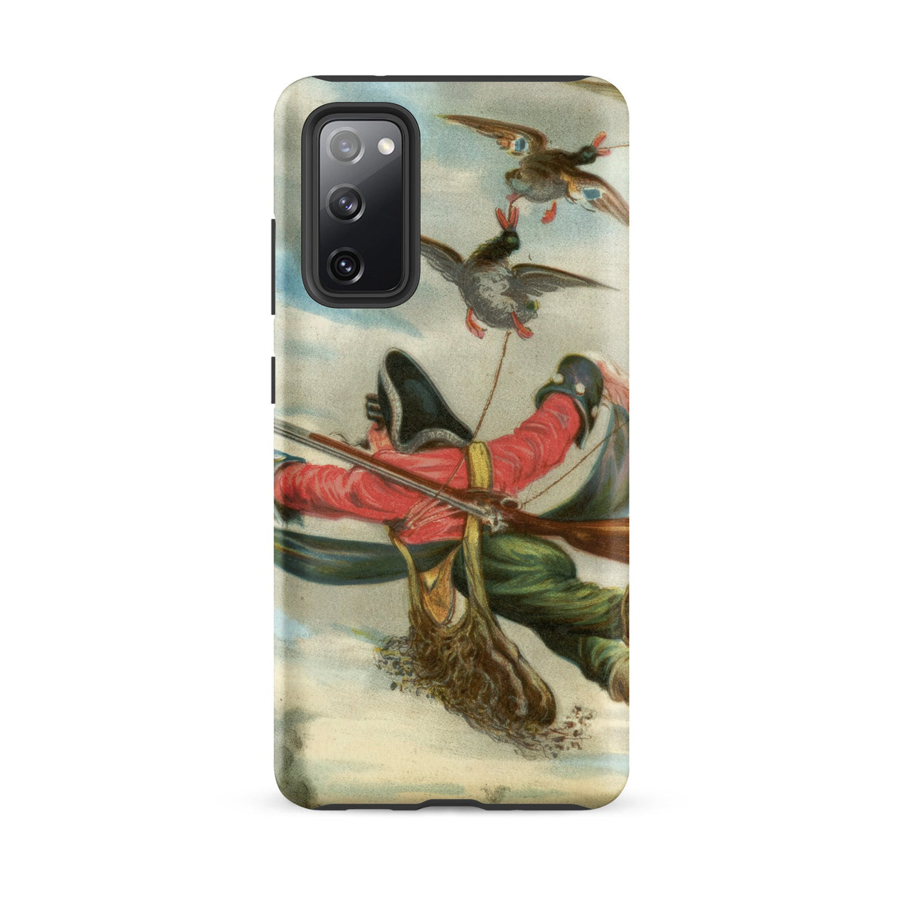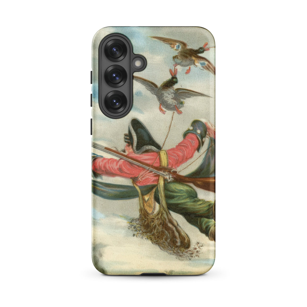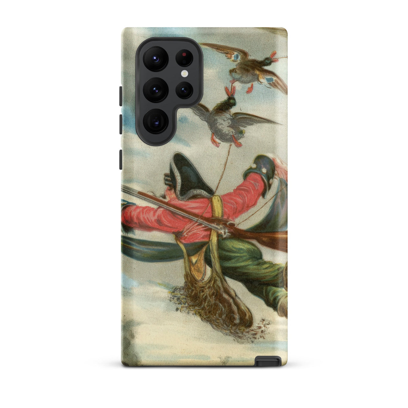 This Samsung case carries Alphonse Adolphe Bichard’s vision of Baron Munchausen suspended between folly and triumph. The baron, arms outstretched, clutches reins attached to frantic geese, their wings outflung against an expanse of cloud. His rifle and satchel swing with comic gravity, echoing the ridiculous momentum of the tale.