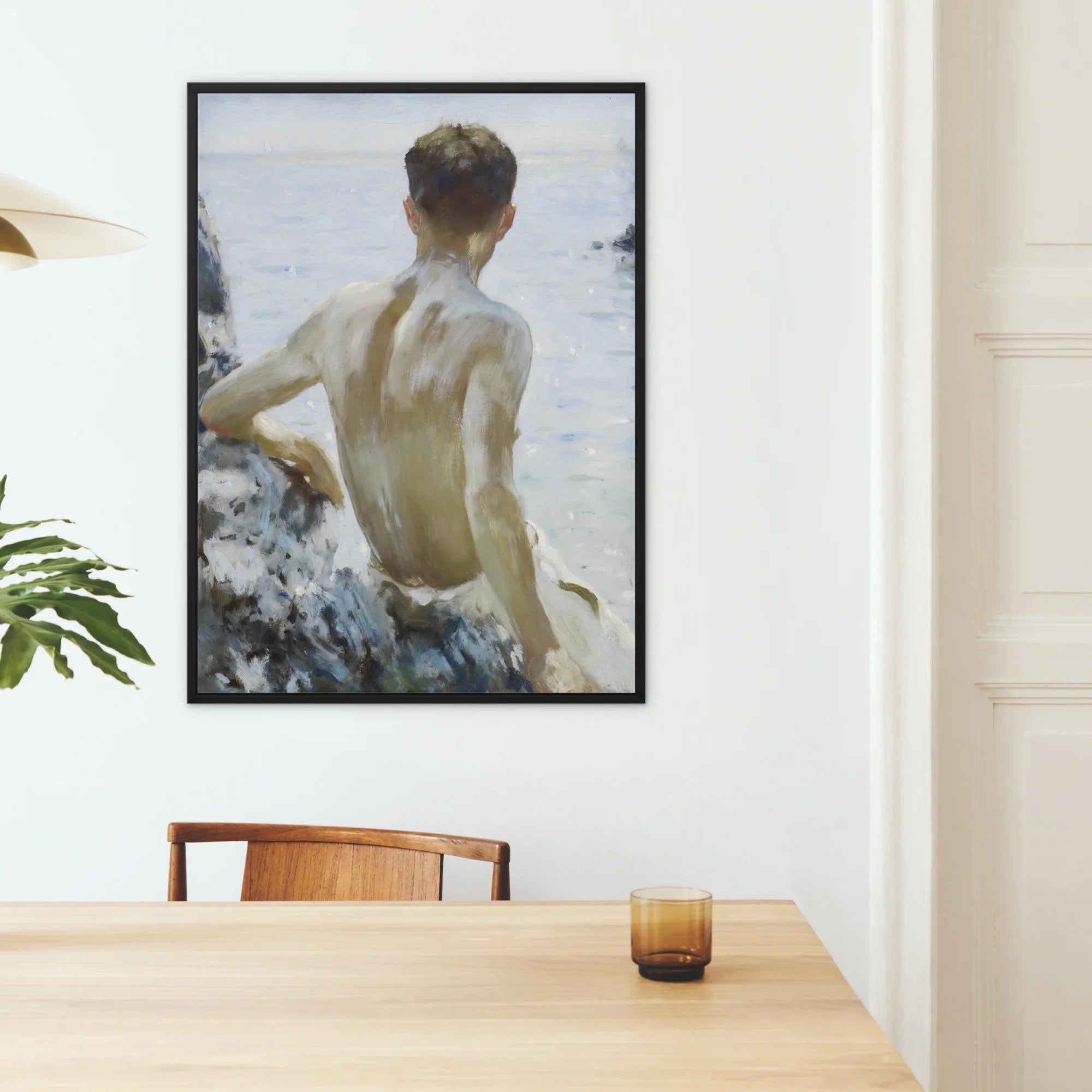 This study, the last in Tuke’s mortal cycle, swallows Edwardian nostalgia into a sun-scorched invocation of body and brine. Each curve of Mitchell’s posture is both classical homage and modern reverie. A relic of queer British art history, bound in tidal luminosity and the eternal hush of the sea’s quiet, sensual summons.
