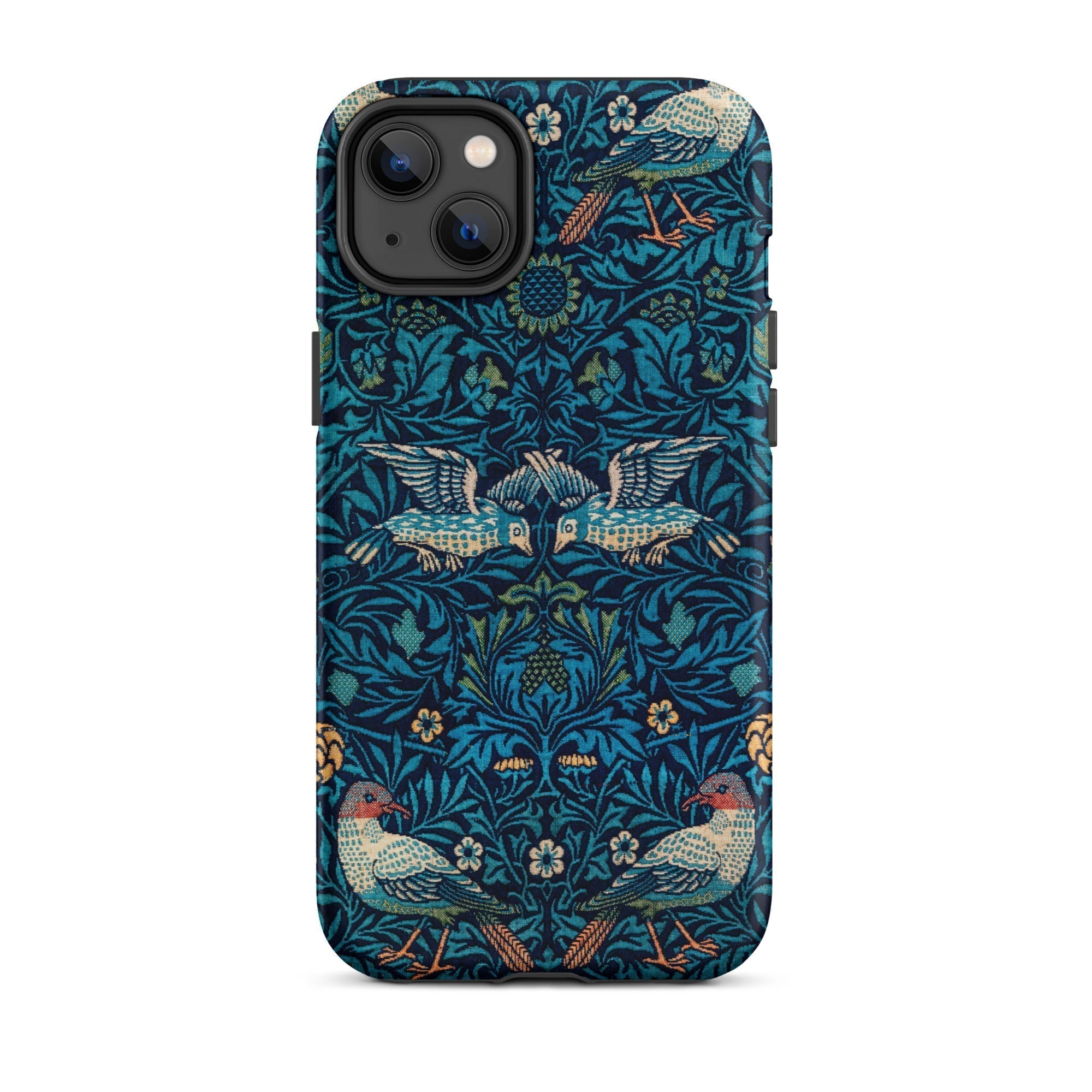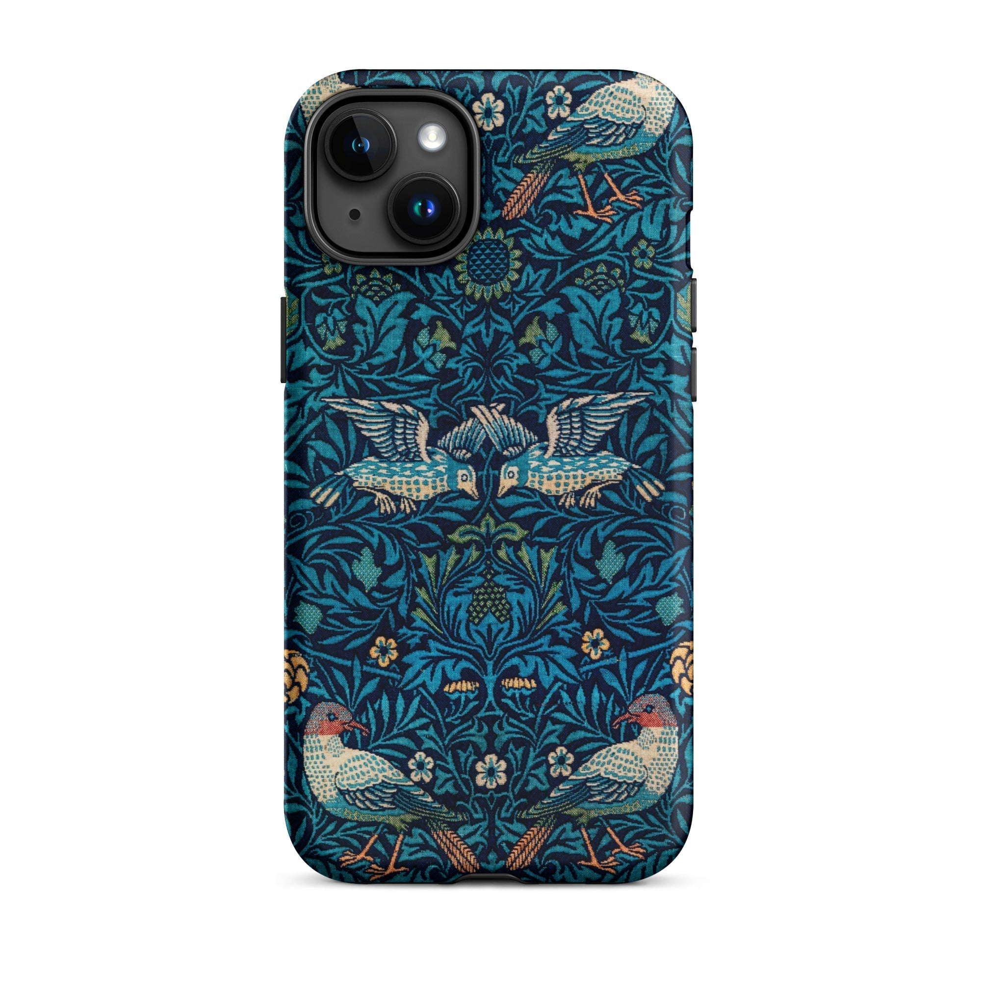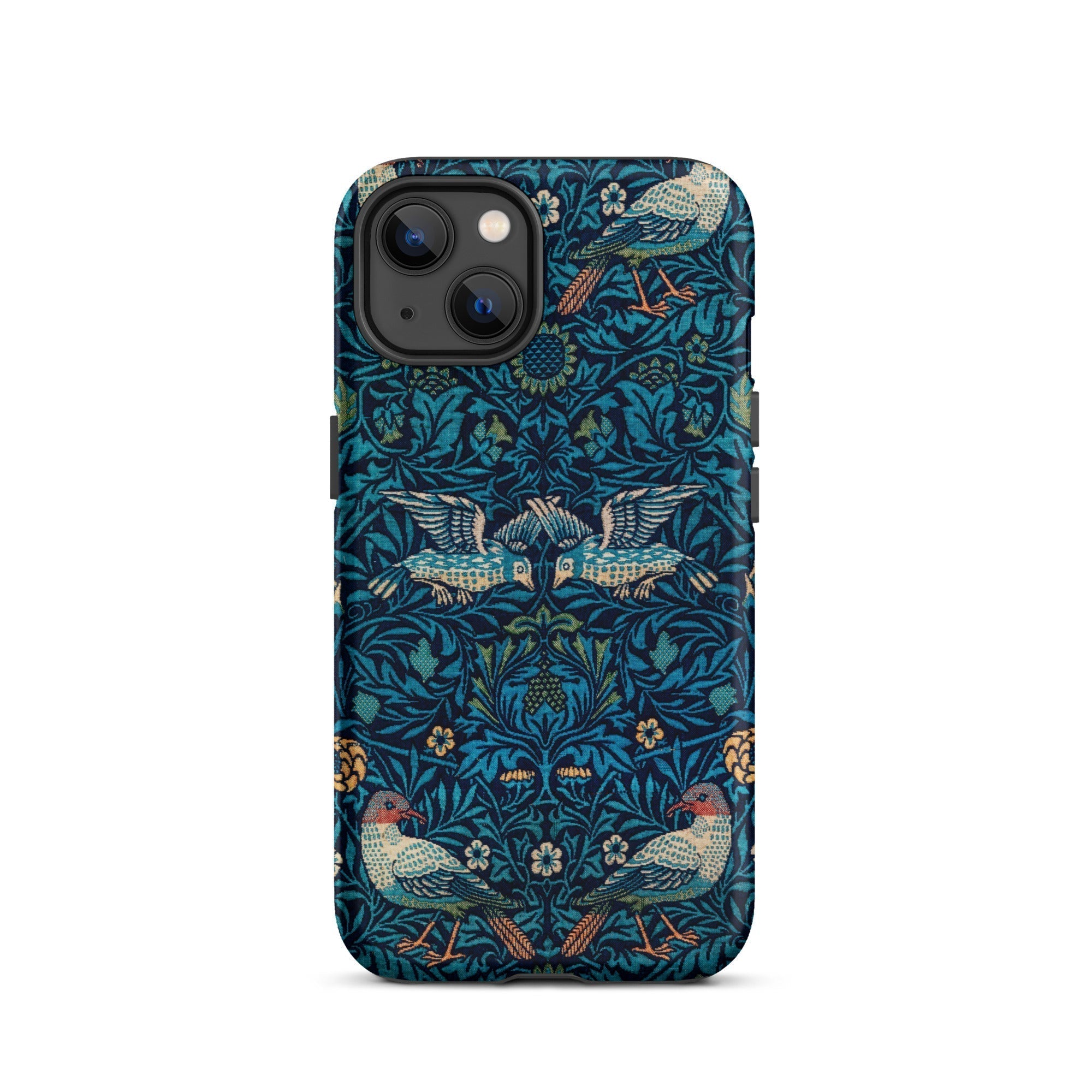 Merge Victorian elegance with modern tech in this William Morris Birds iPhone case. A stunning fusion of 19th-century artistry and 21st-century functionality. The intricate pattern showcases Morris's genius for blending nature and geometry, with stylized birds and foliage intertwining in perfect symmetry. Each element - from the precisely rendered avian forms to the swirling, leaf-laden vines - exemplifies the movement's dedication to craftsmanship and organic beauty.