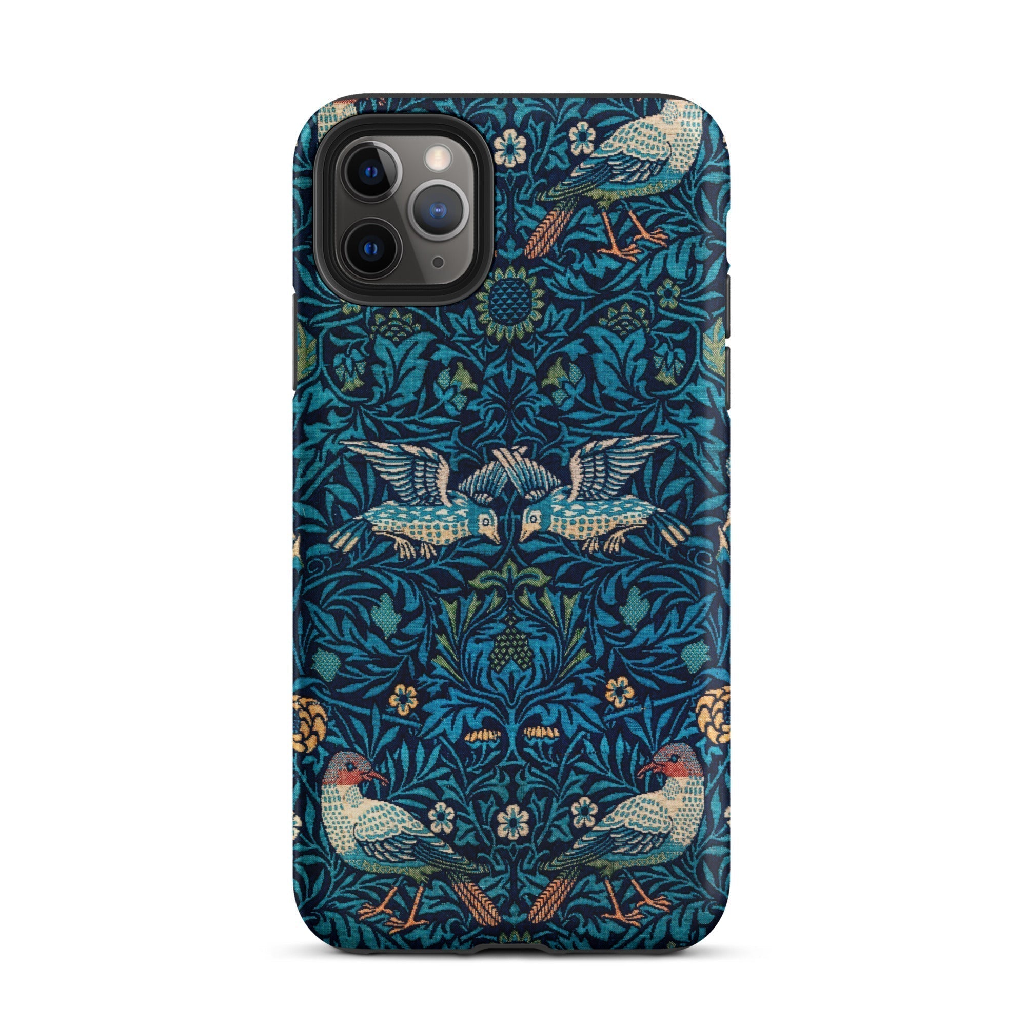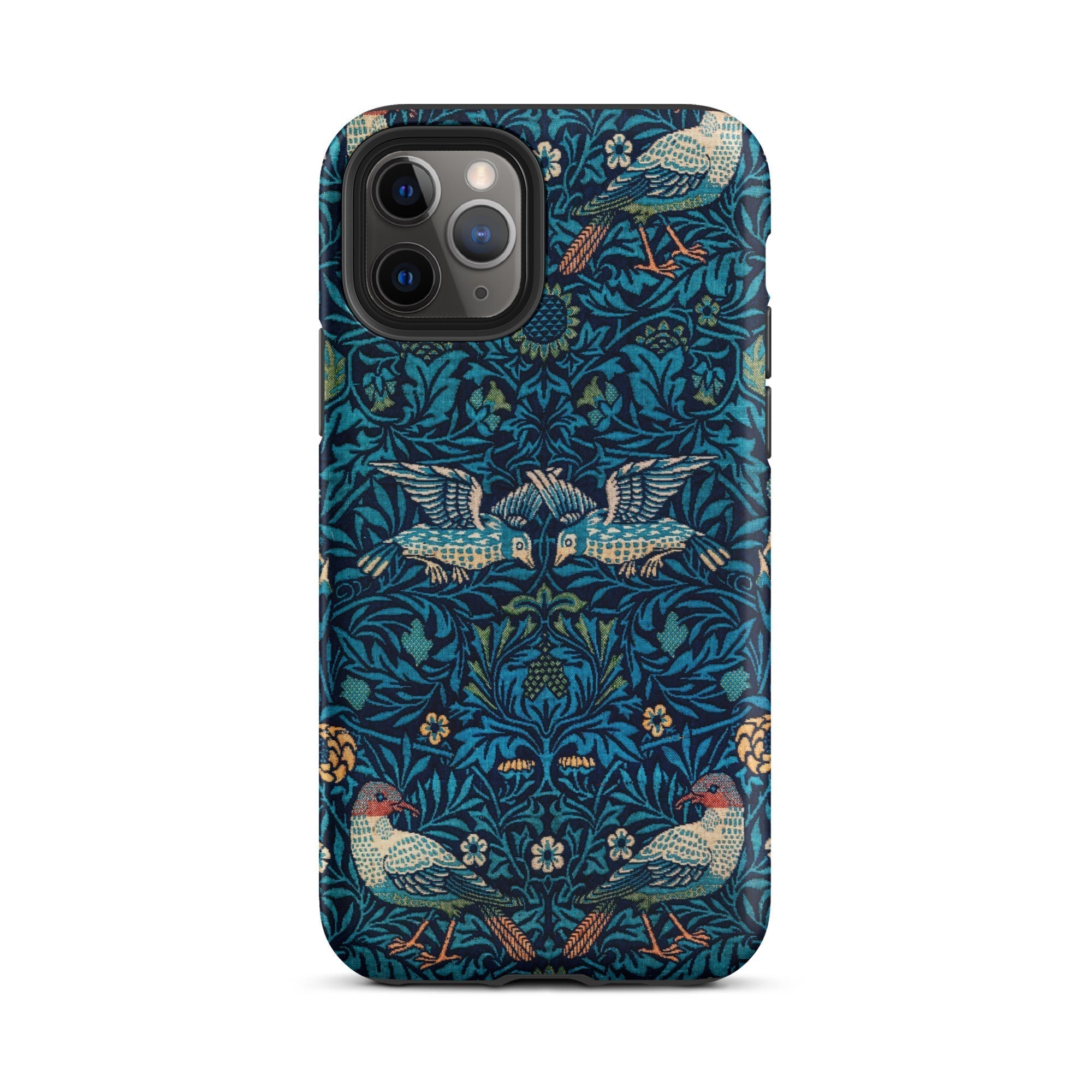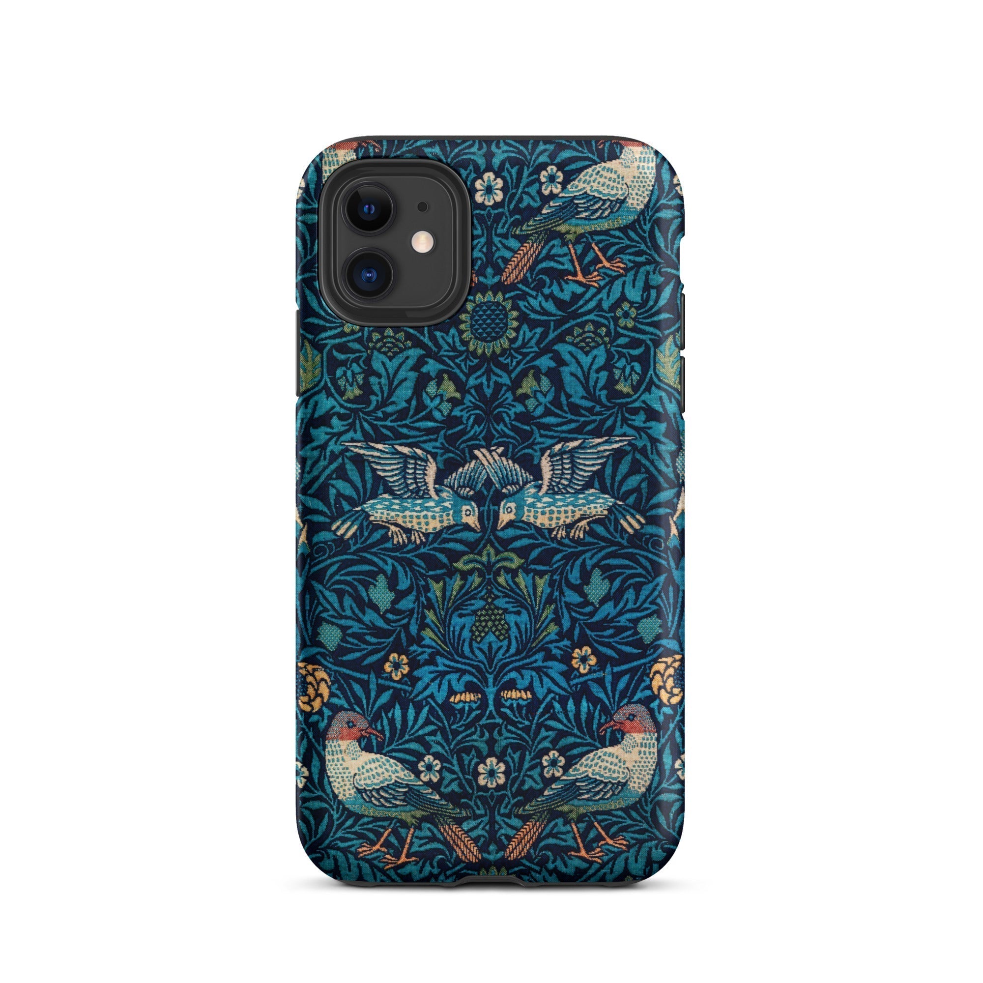Merge Victorian elegance with modern tech in this William Morris Birds iPhone case. A stunning fusion of 19th-century artistry and 21st-century functionality. The intricate pattern showcases Morris's genius for blending nature and geometry, with stylized birds and foliage intertwining in perfect symmetry. Each element - from the precisely rendered avian forms to the swirling, leaf-laden vines - exemplifies the movement's dedication to craftsmanship and organic beauty.