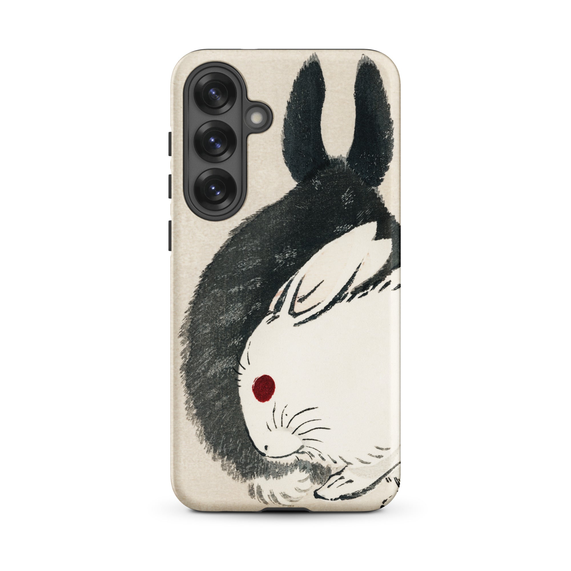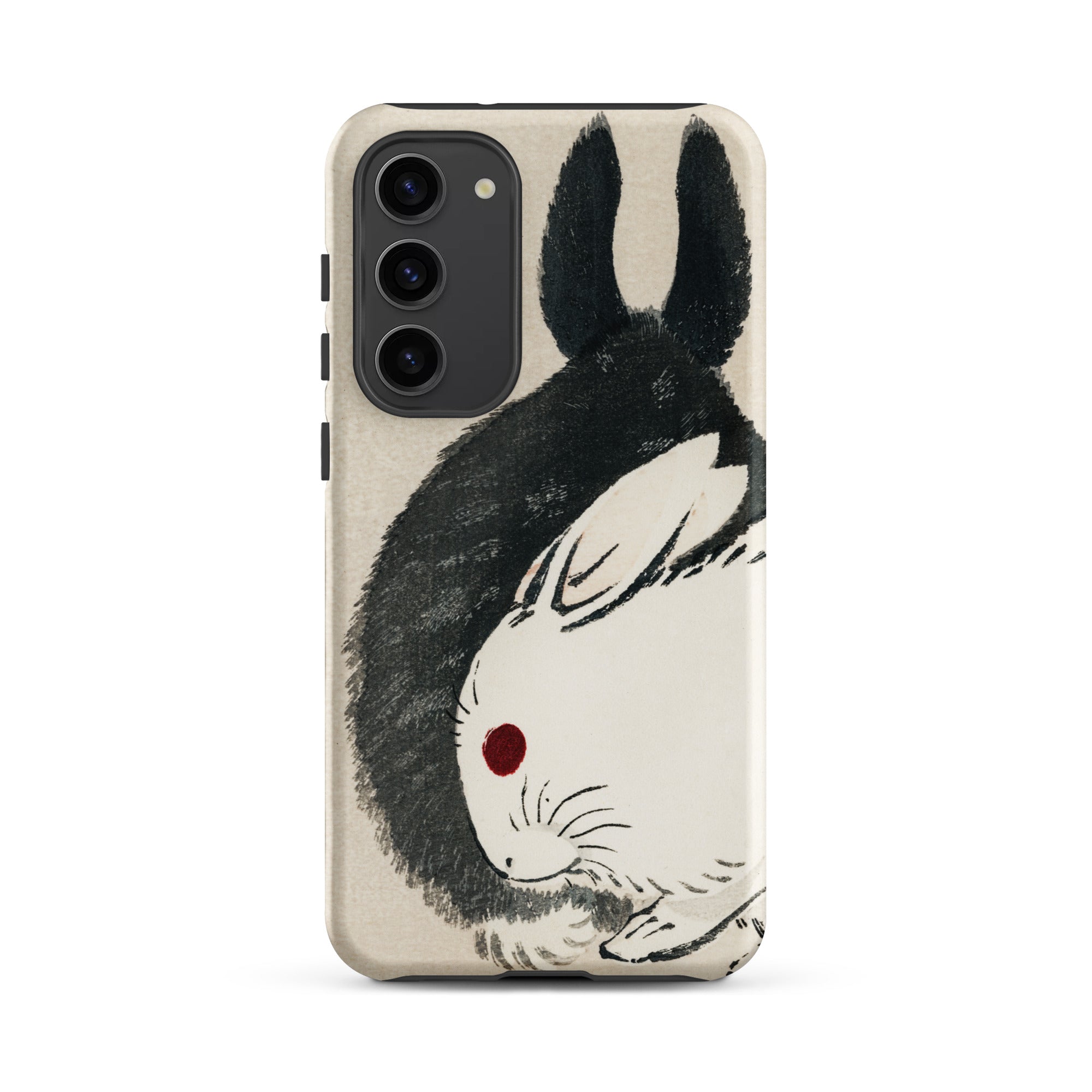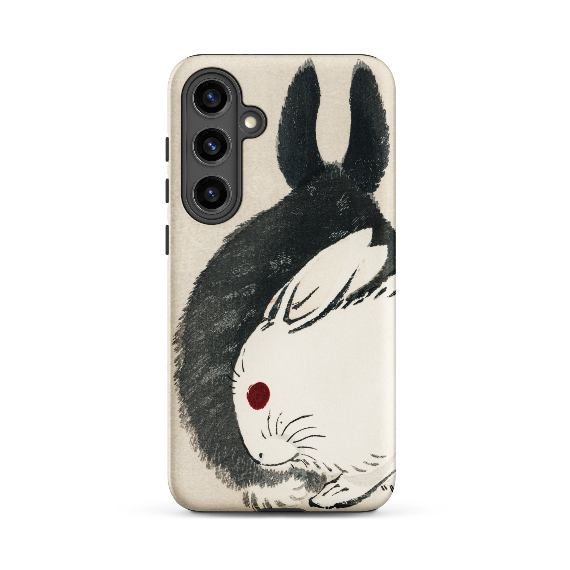 Kono Bairei's Black and White Rabbits phone case transforms a 19th-century masterpiece into a contemporary accessory, bridging Meiji-era aesthetics with modern technology. This sumi-e inspired artwork showcases Bairei's mastery of negative space and brush technique, rendering two lagomorphs in stark monochrome.