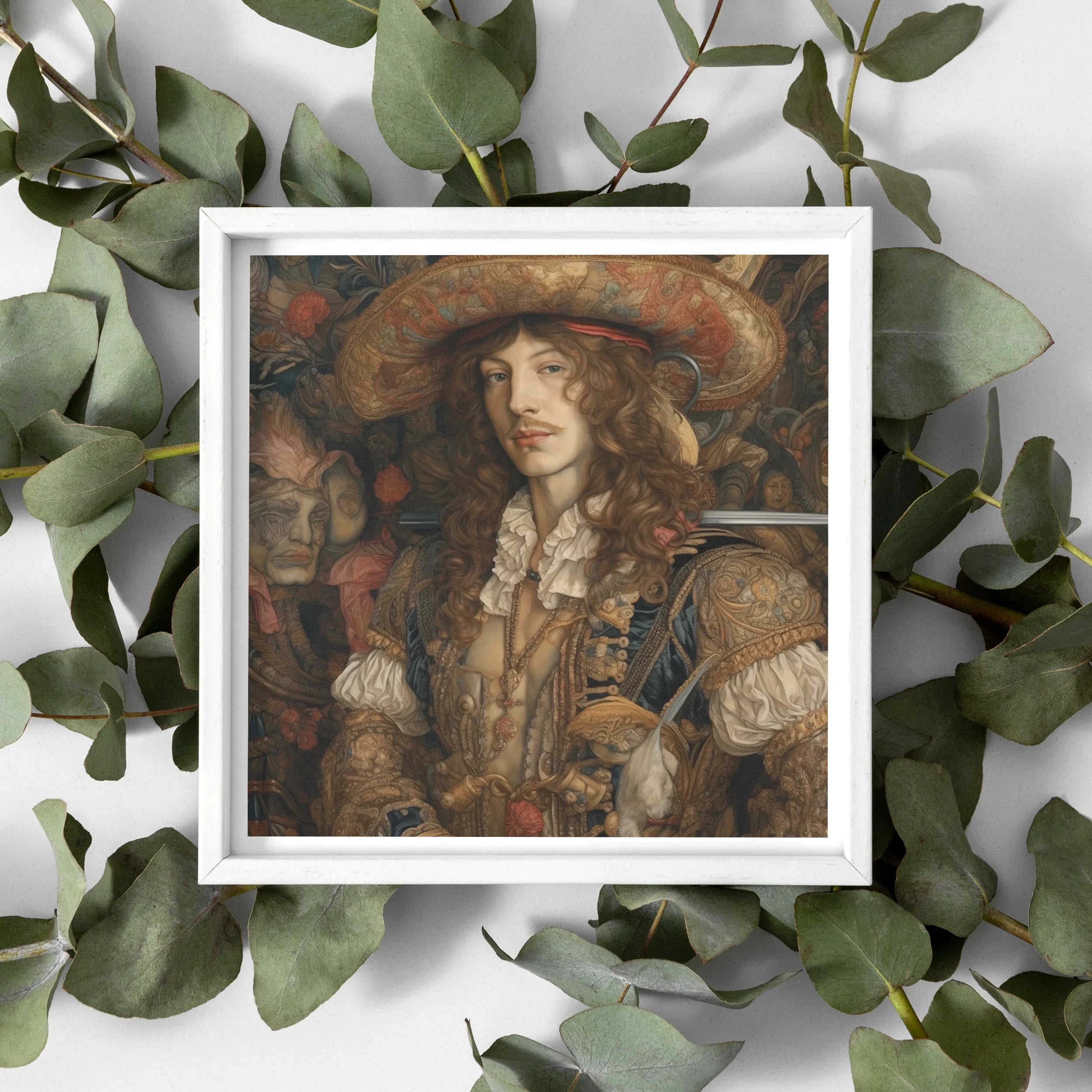 This isn’t just a portrait; he's a poetic fusion of Botticelli’s grace and Western grit. Hang him and bring an untamed elegance into your space, where the Renaissance meets the outlaw spirit. A timeless figure straddling beauty and rebellion, daring you to see beauty in the untamed.
