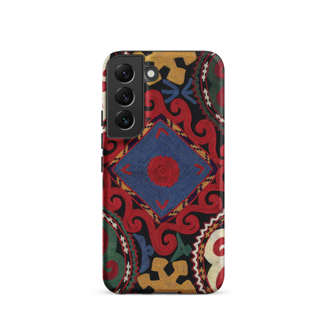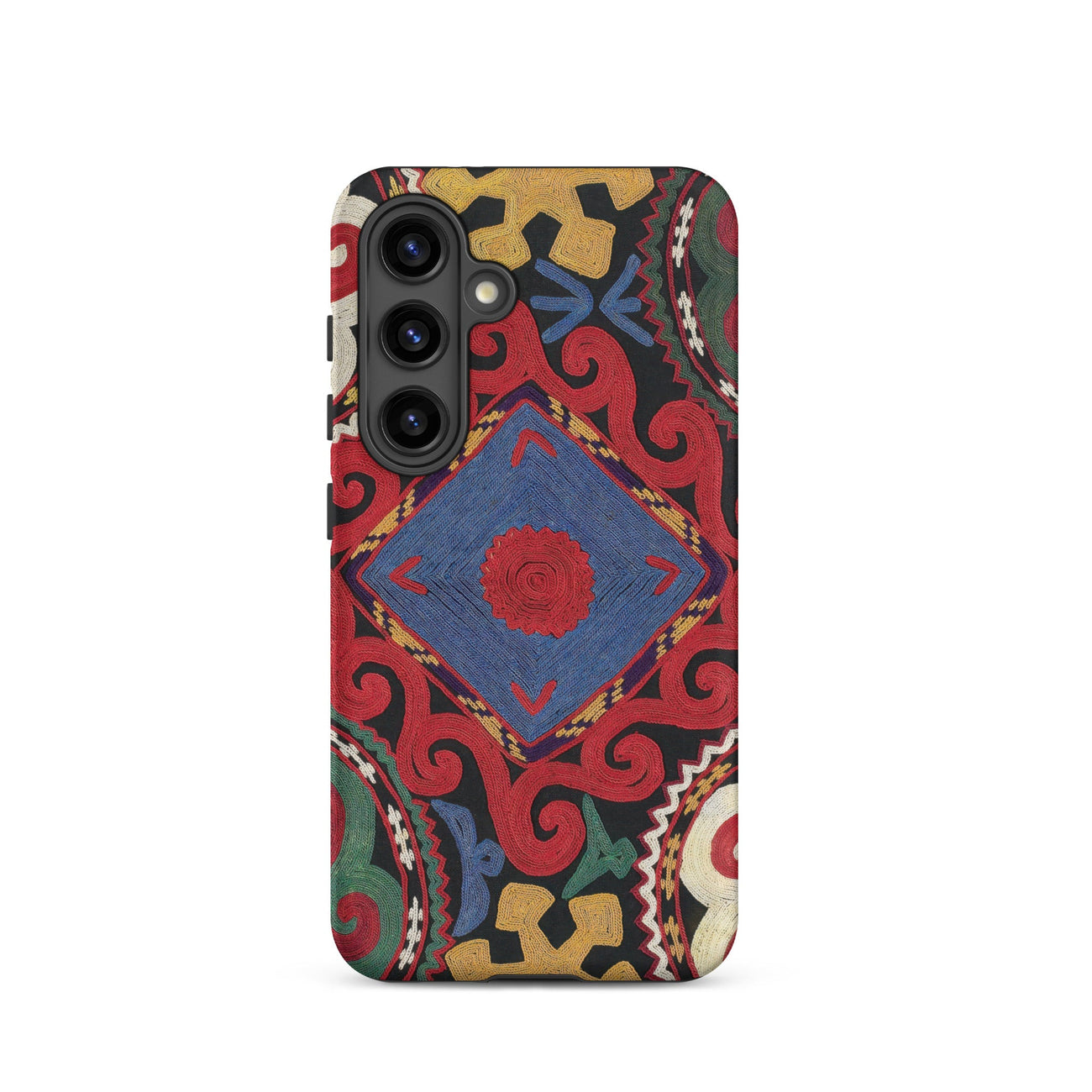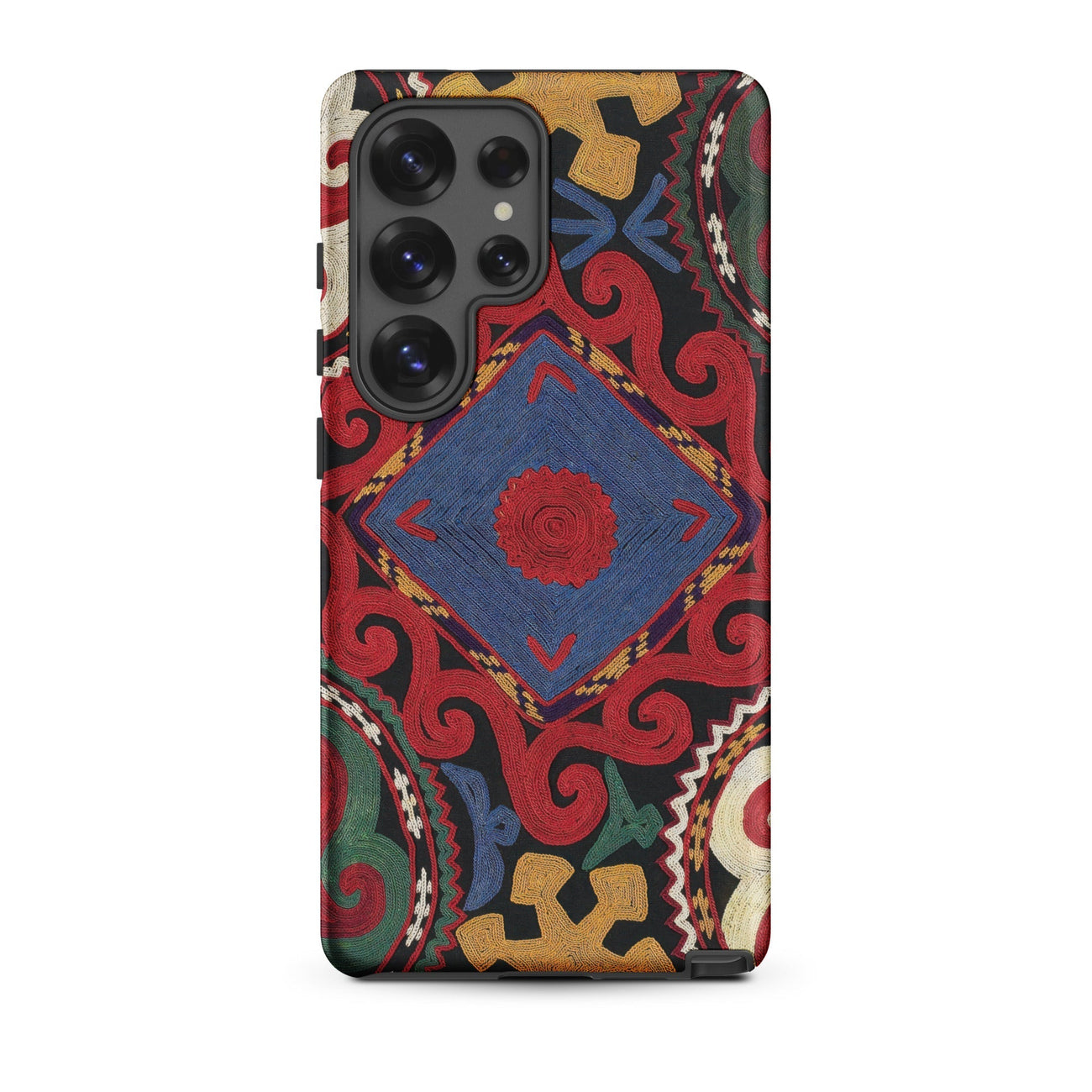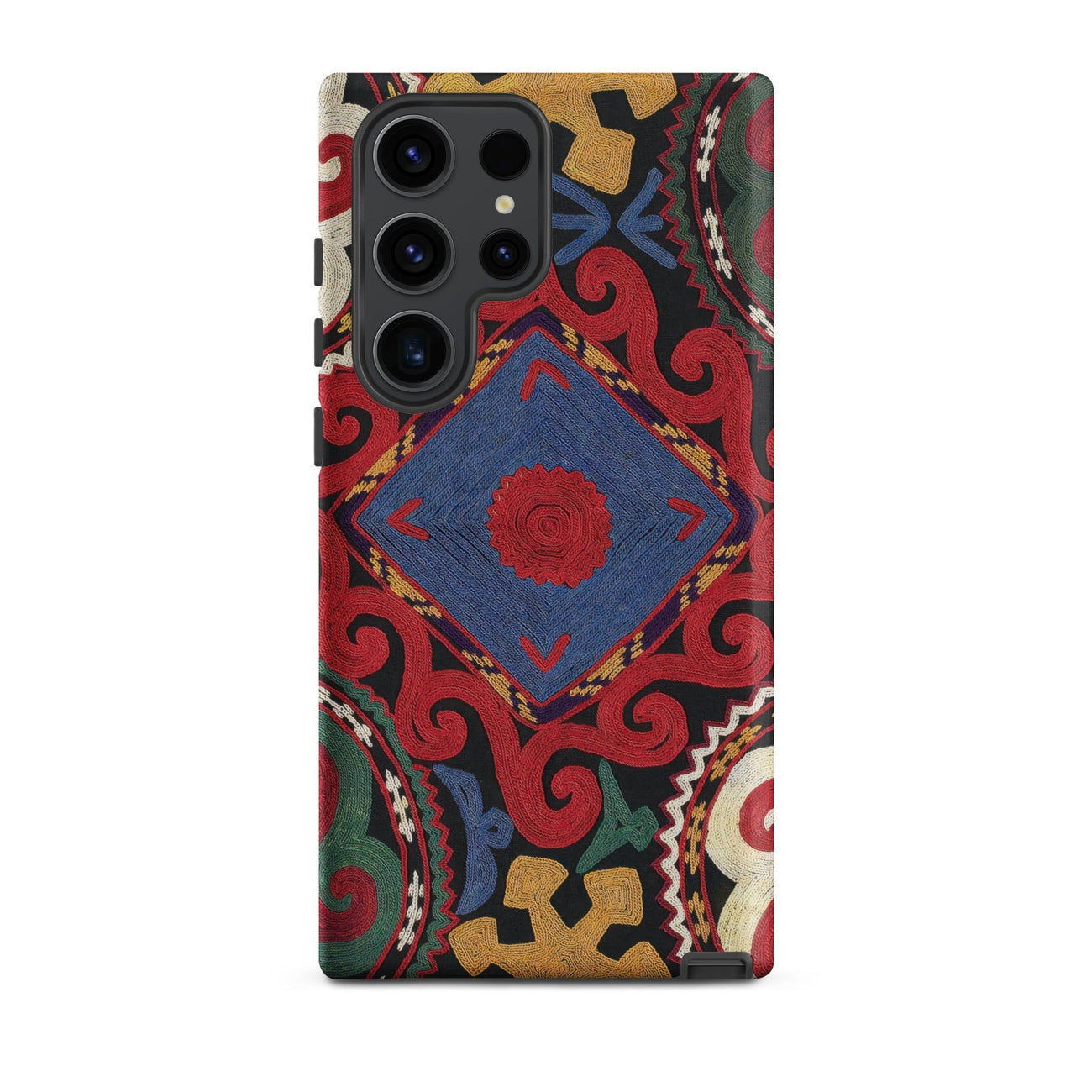 This Samsung case wears its heritage like armor. Holding not just your device but centuries of artisan skill, market-square storytelling, and the swirling chromatic energy of Central Asia’s enduring visual language.