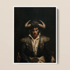 Cloaked in midnight fabric, gold-threaded and battle-worn, he emerges—a horny gay matador haunted and unbroken. Horns curving from his wild curls, a relic of something ancient, something untamed. The homoerotic baroque aesthetic breathing through every meticulous detail of this digital oil painting. The sculpted chest, the regal stance, the dark queer masculinity that refuses to be anything less than sublime.