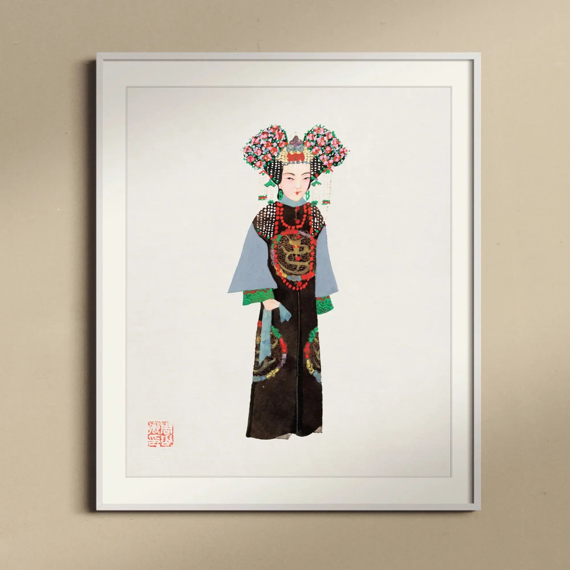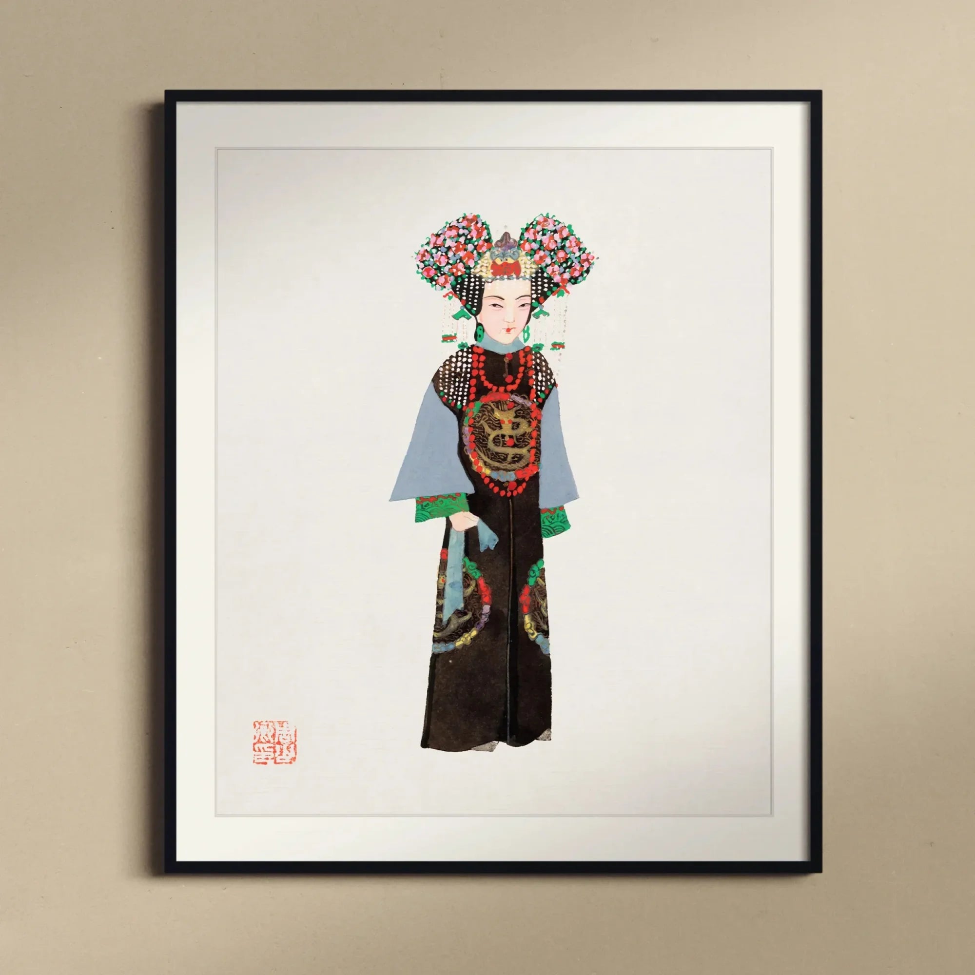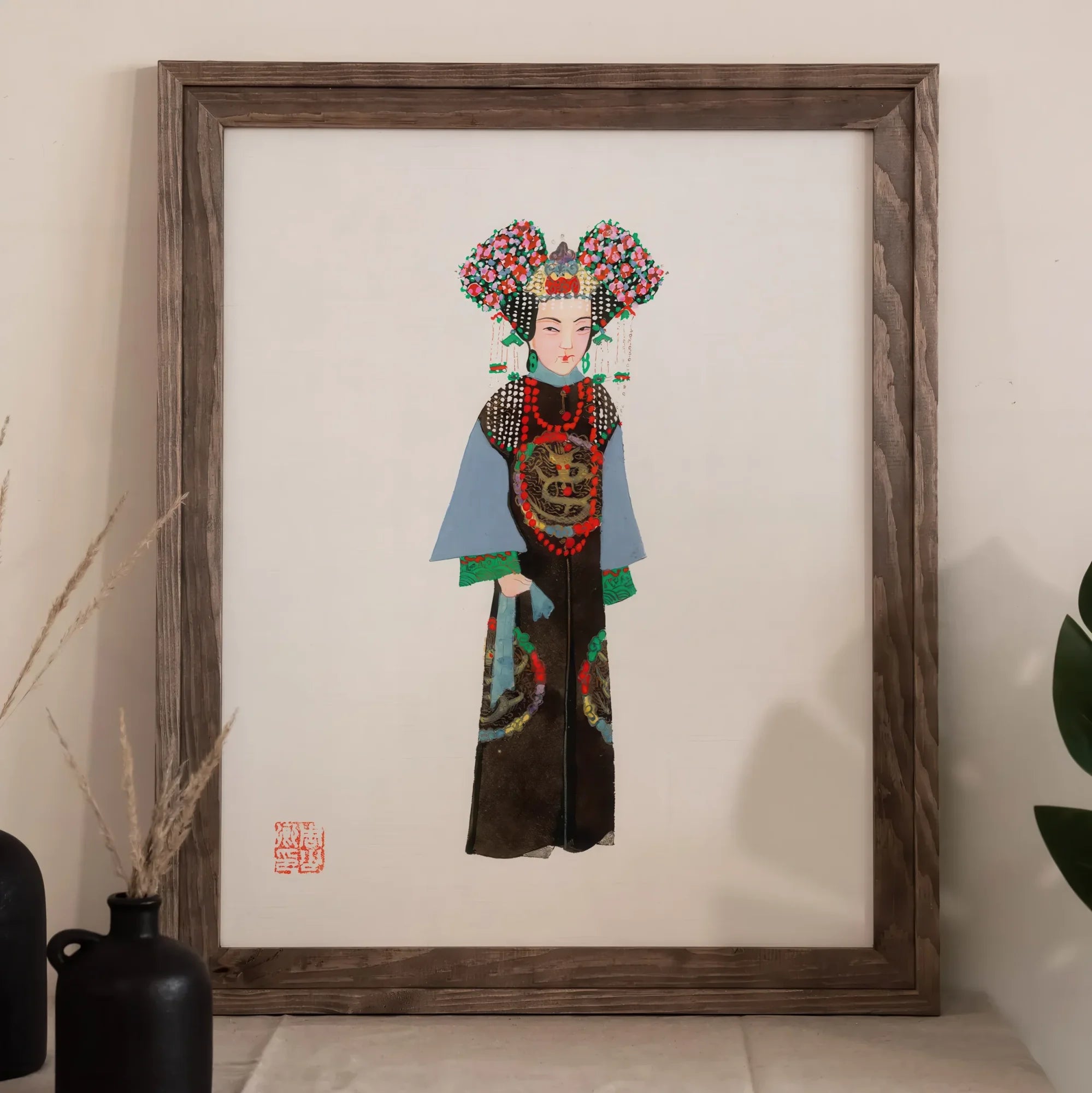 Prepare to be transported into the realm of Qing dynasty pageantry. This watercolor vignette unveils an empress, a living embodiment of imperial might.