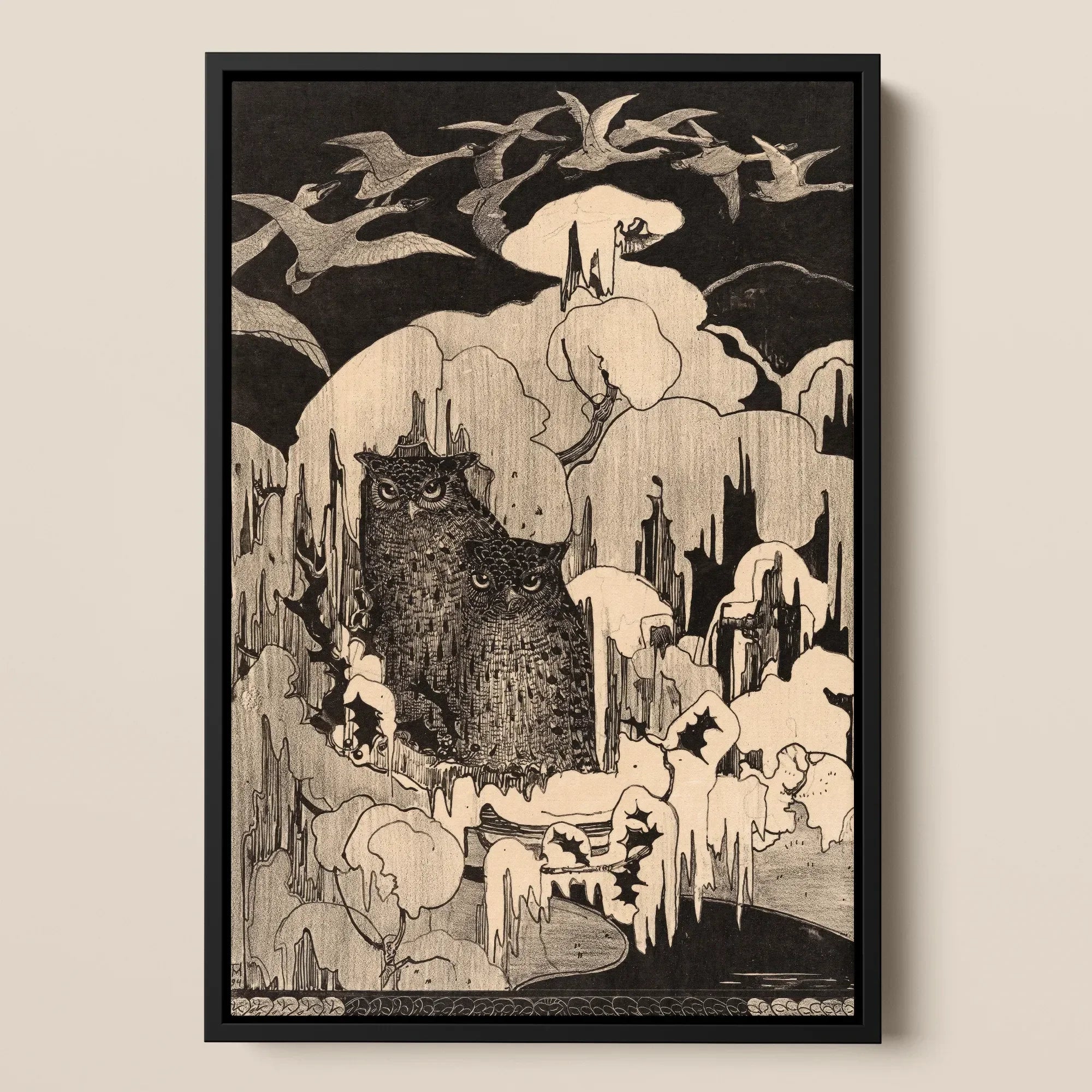 Art Nouveau’s reverence for nature as design, and Symbolism’s faith in darkness as renewal. A hymn in ink and silence, this print renders stillness sacred, the hour before warmth reclaims the sky.