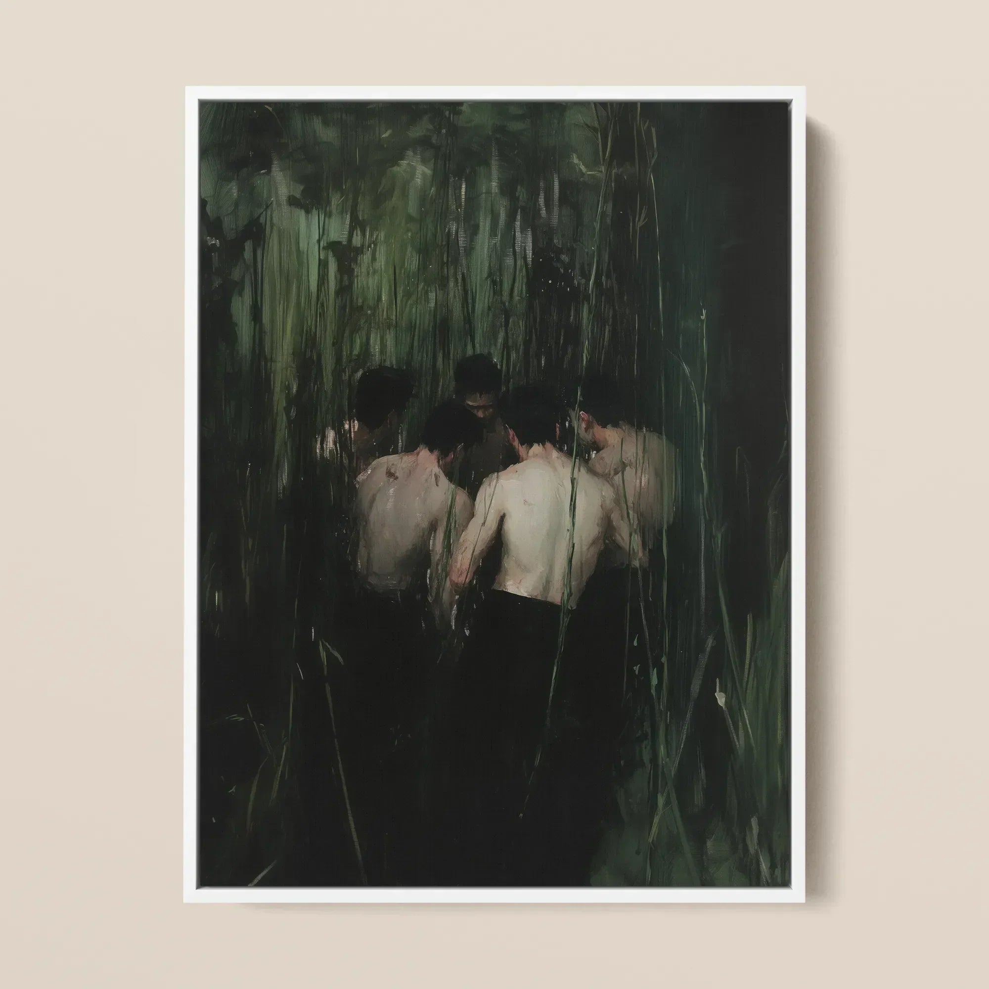 The brush drags its body through shadow and chlorophyll. Foliage slashed open, muscles melted into post-impressionist blur, every stroke a soft moan of submission. The thicket closes. Nature perverted into voyeur. What remains is communion's climax. Their bodies are the host. Their moans the ritual.