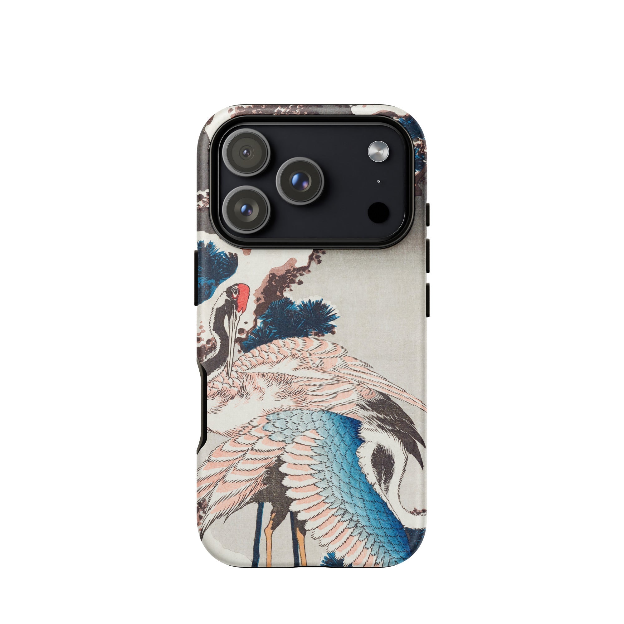 Cranes on a Snowy Tree - Hokusai iPhone Case