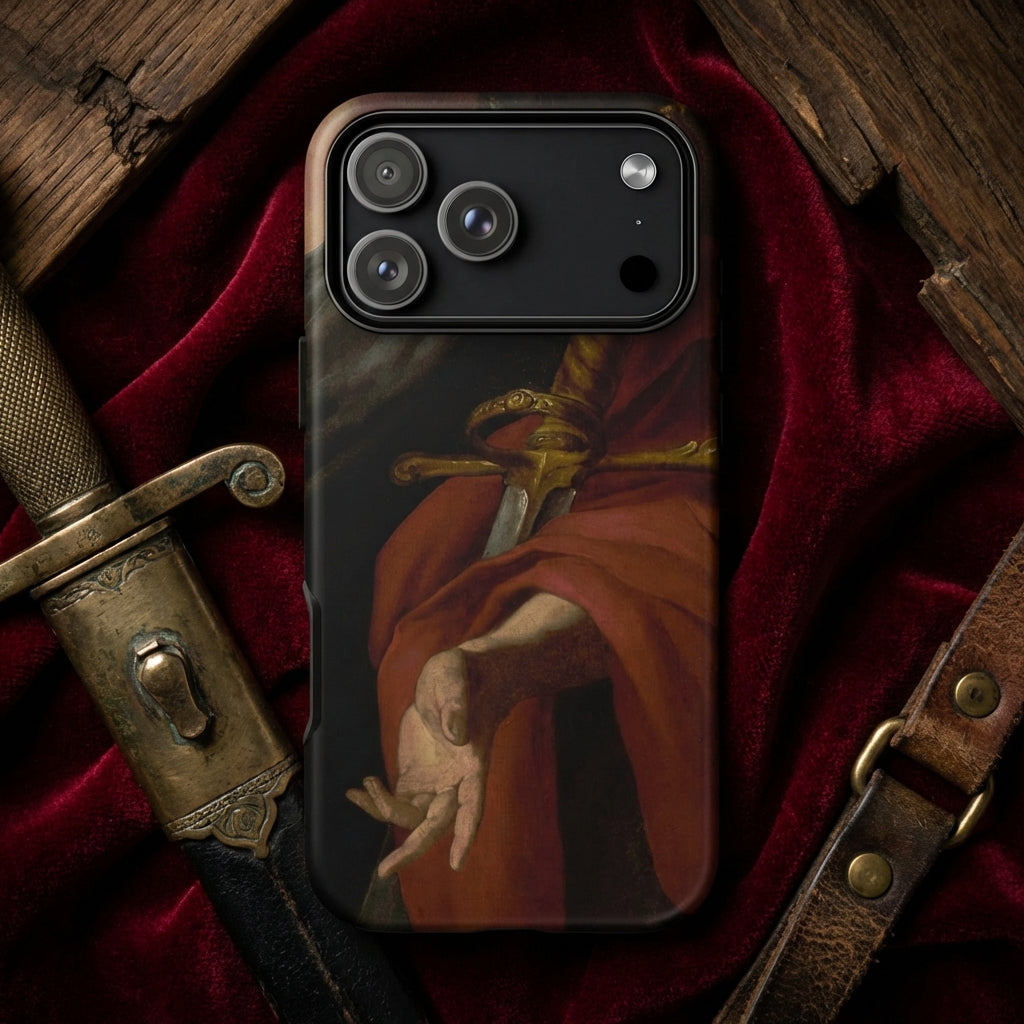 What remains is aftermath, or anticipation. The story held just beyond the frame. For those attuned to the Catholic drama of gesture, to 17th-century chiaroscuro that speaks in silences, this is a theology of suspense. Not a portrait. Not an icon. Just a hand, a sword, and the soft gravity of divine responsibility.